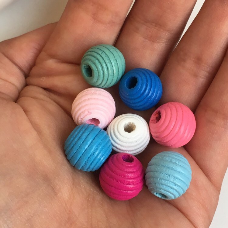 Enhance your craft projects with this set of 25 spiral round wooden beads. Featuring a charming mix of pastel colors, these 14mm beads add a touch of whimsy to your creations. With their bee hive spiral shape, they are perfect for various craft projects. Unleash your creativity today!