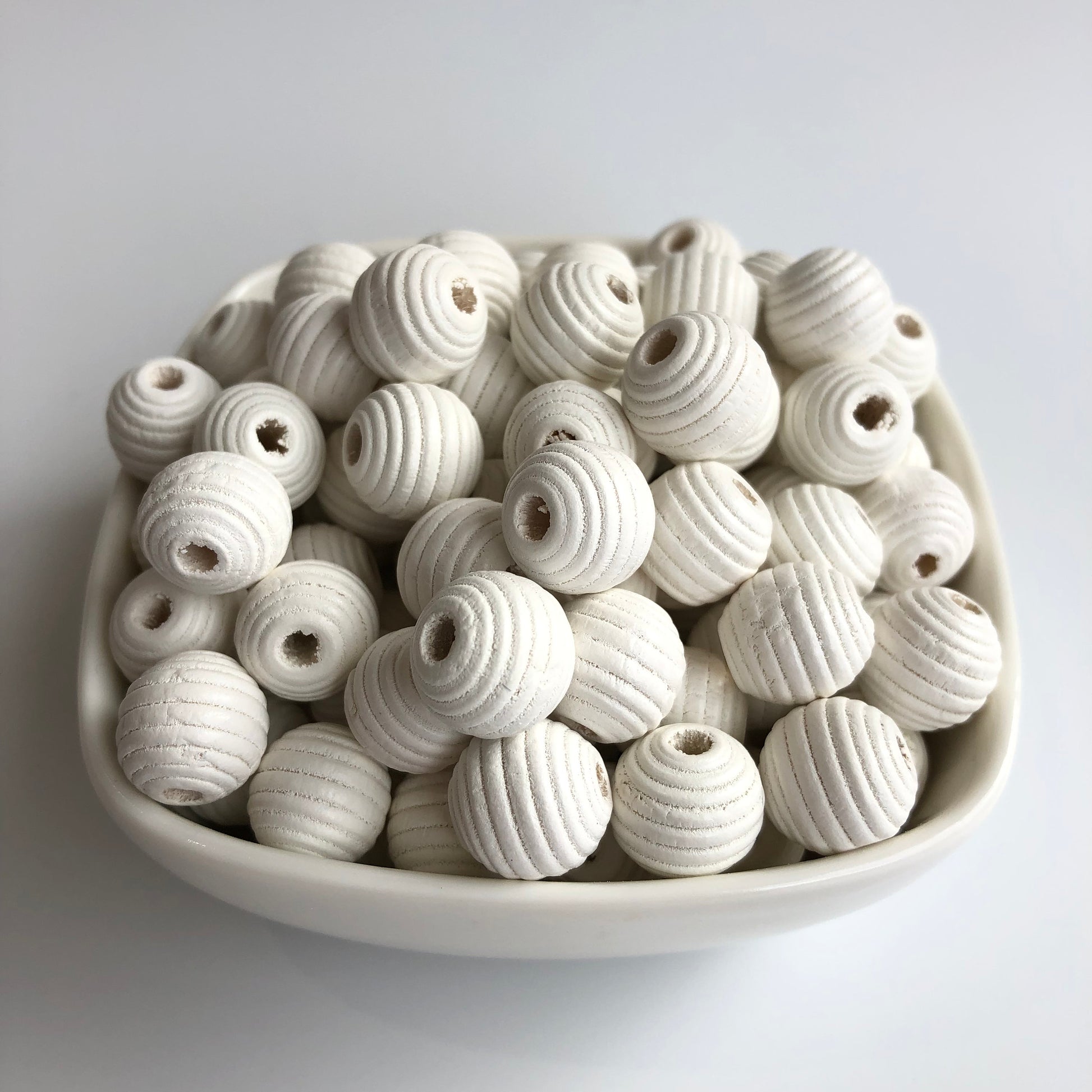 White Beehive Spiral Wood Beads - Set Of 25 , 14mm Wooden Bead for Crafts