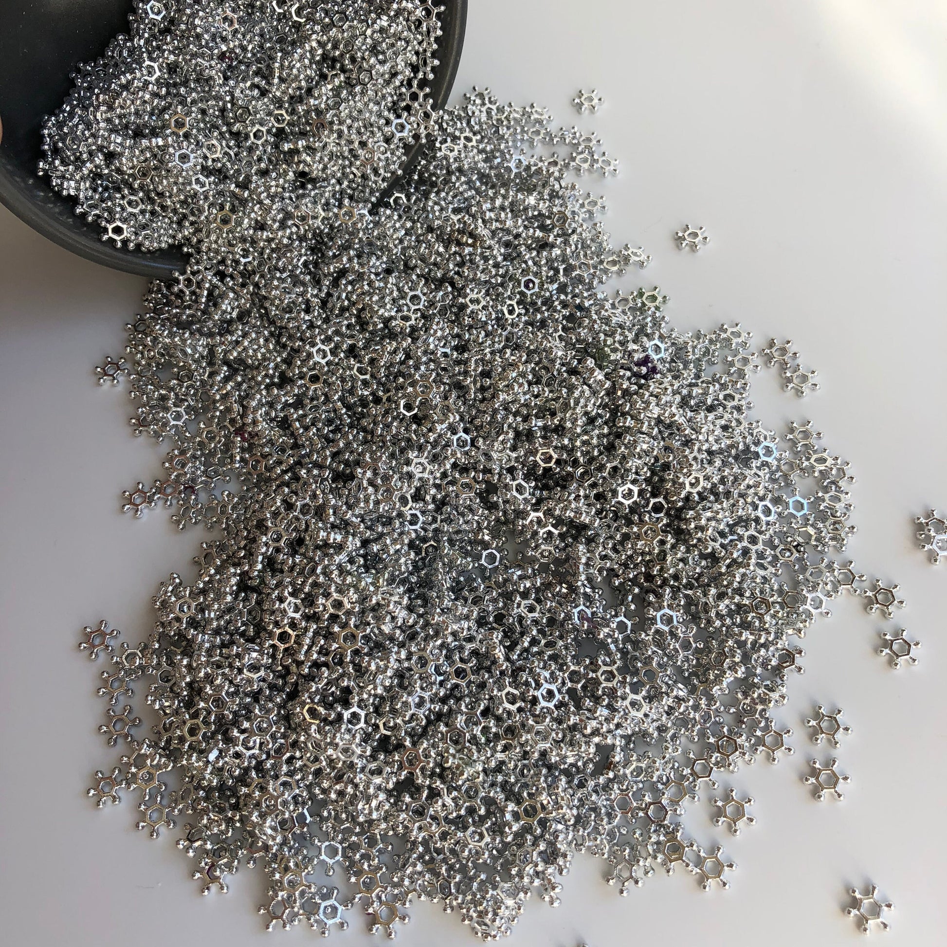 250X Snow Flake Spacer Beads 8mm Silver Acrylic Plastic Craft Bead