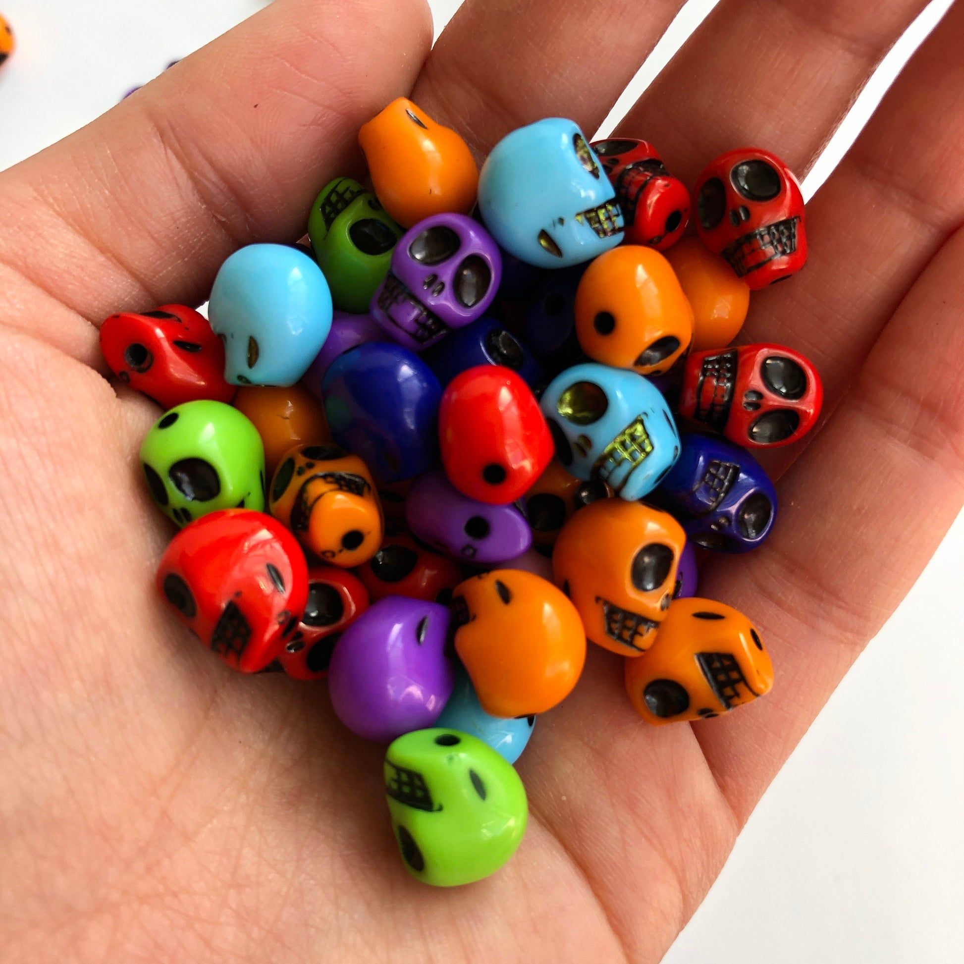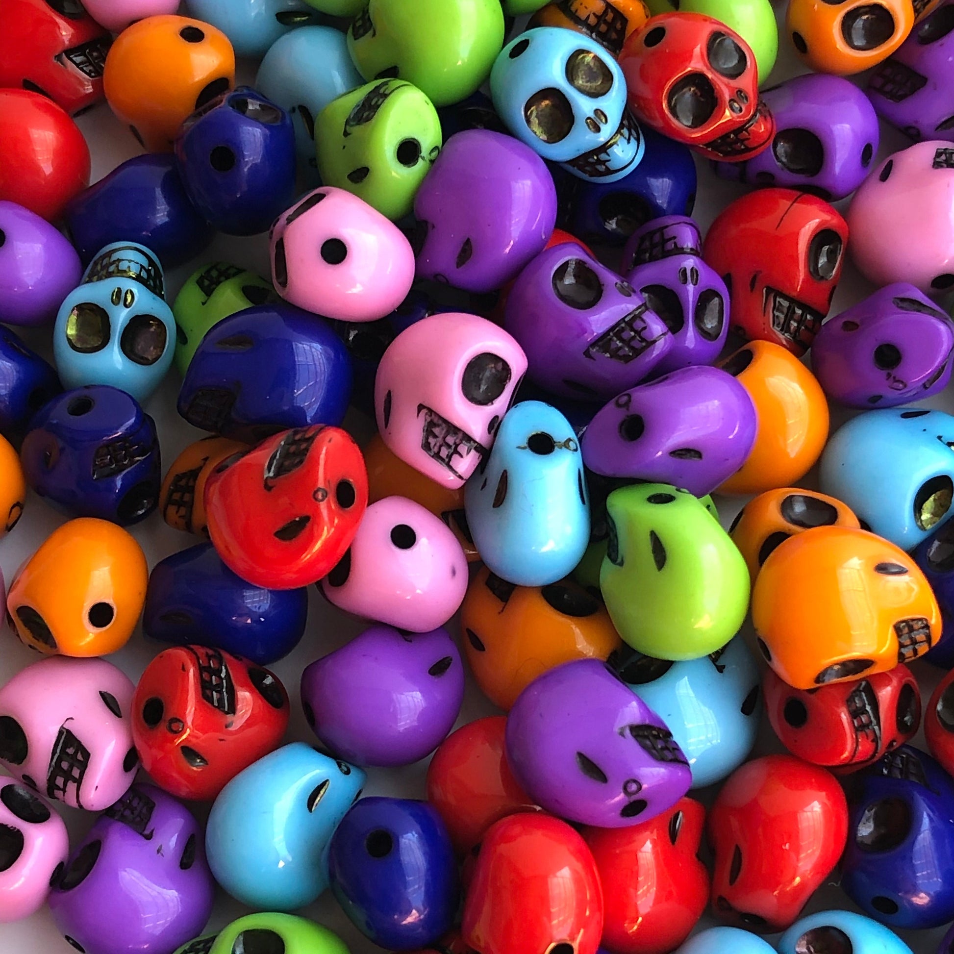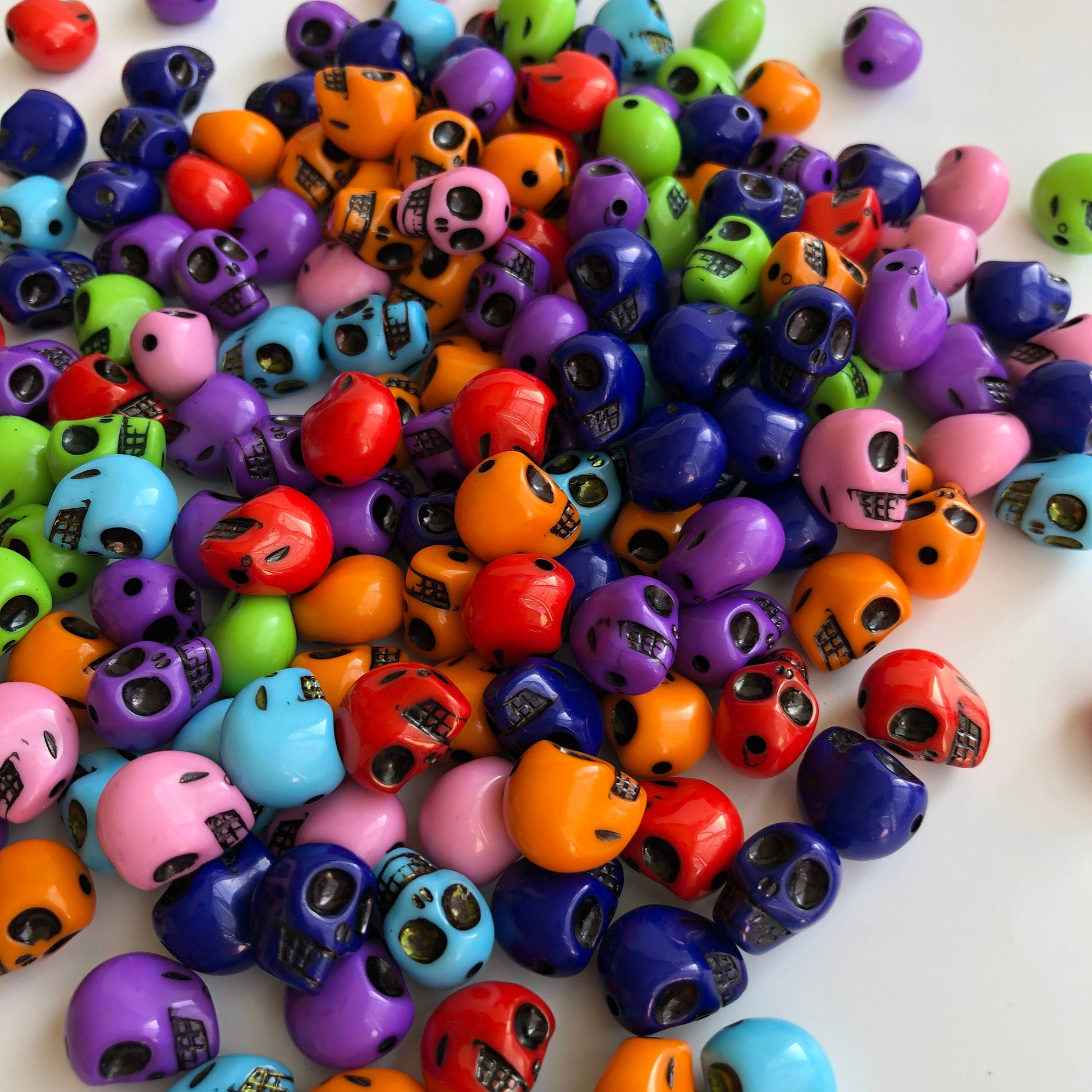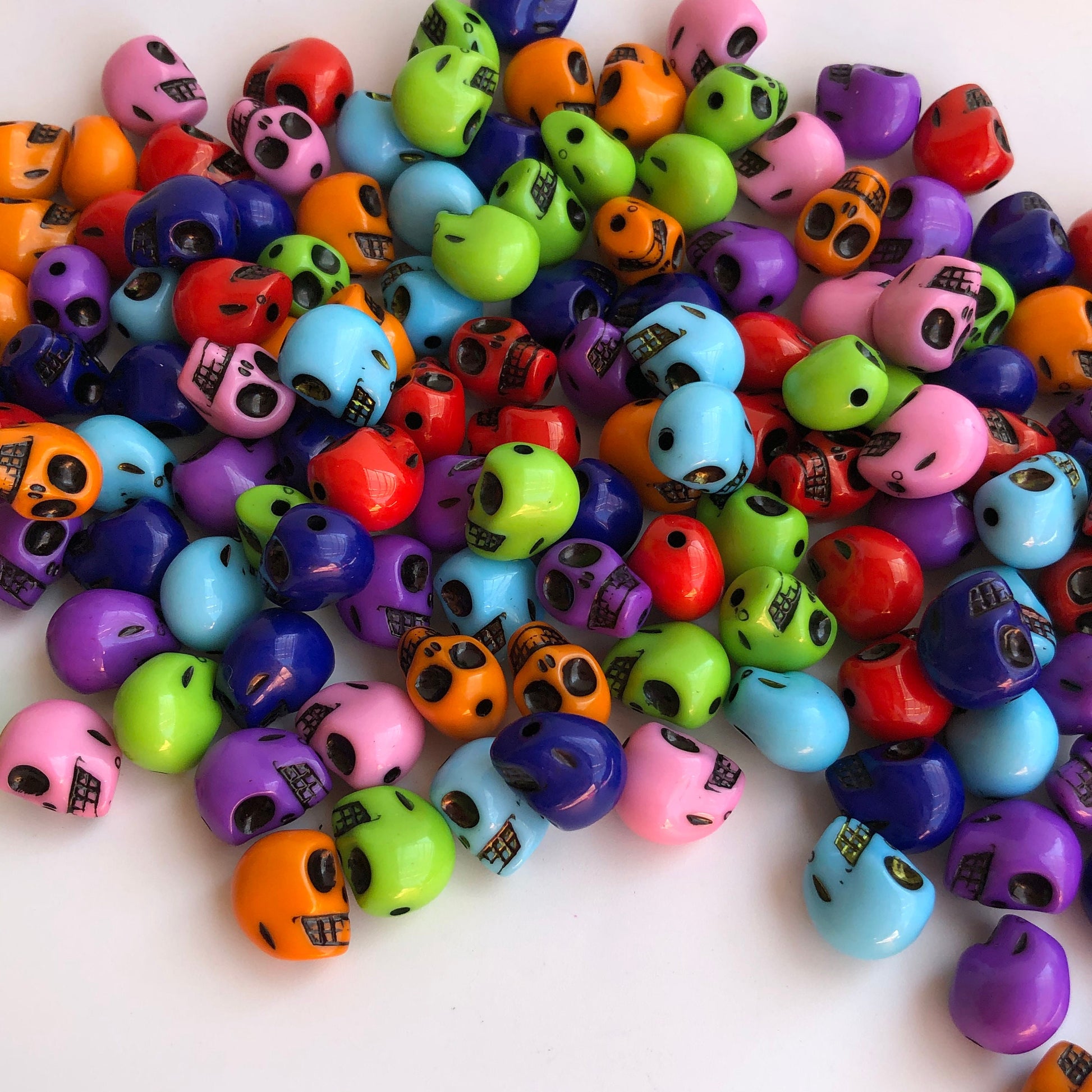 Halloween Skull Beads perfect for crafts and jewellery making, made from dense plastic resin with a glossy smooth finish