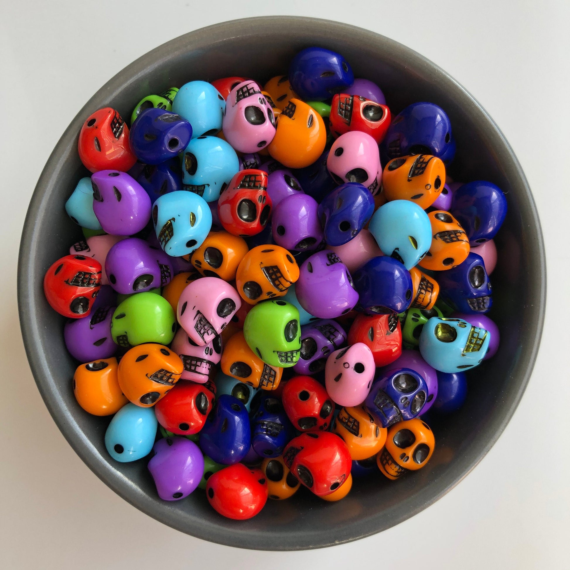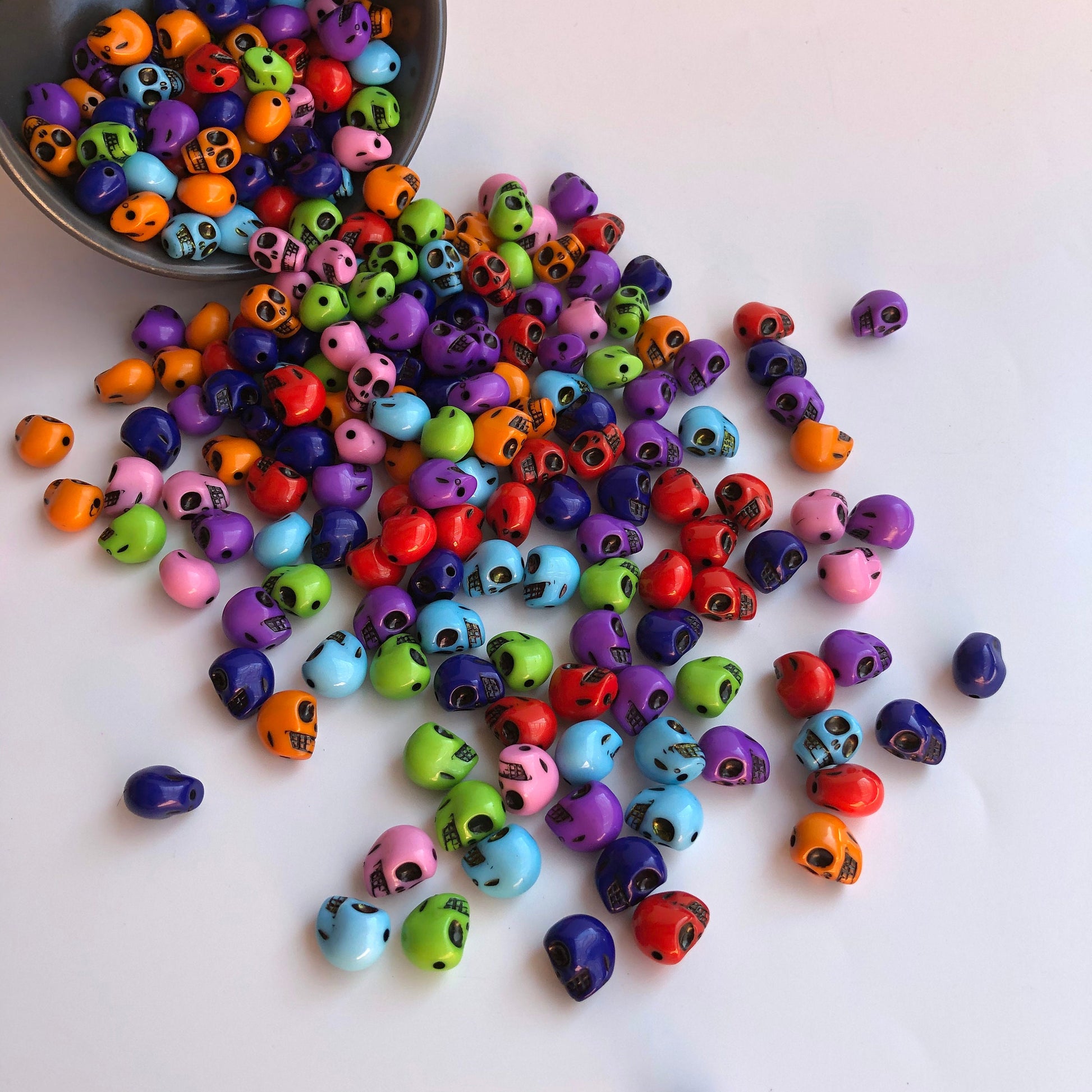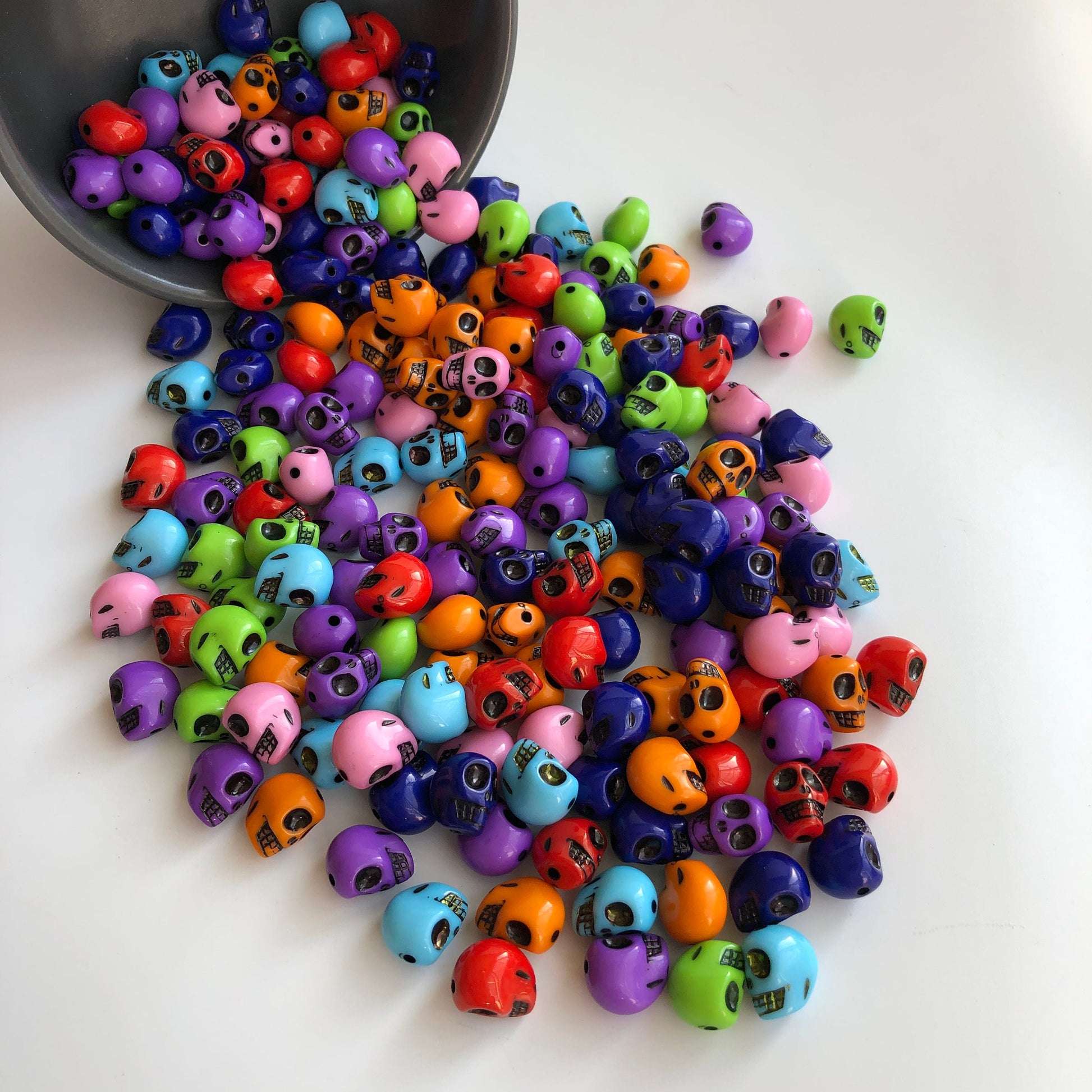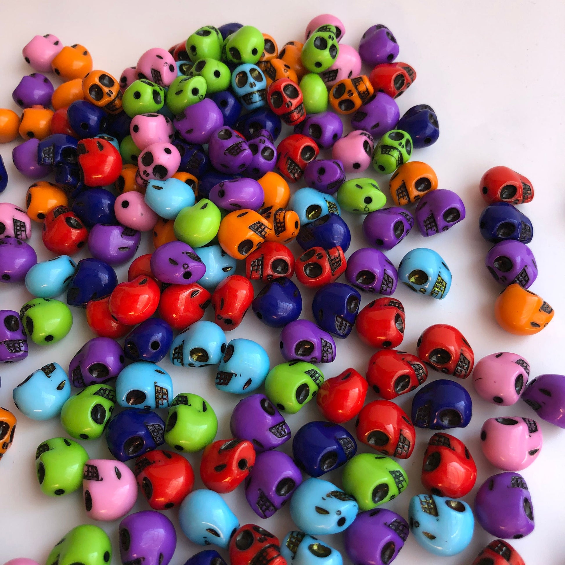 Halloween Skull Beads perfect for crafts and jewellery making, made from dense plastic resin with a glossy smooth finish