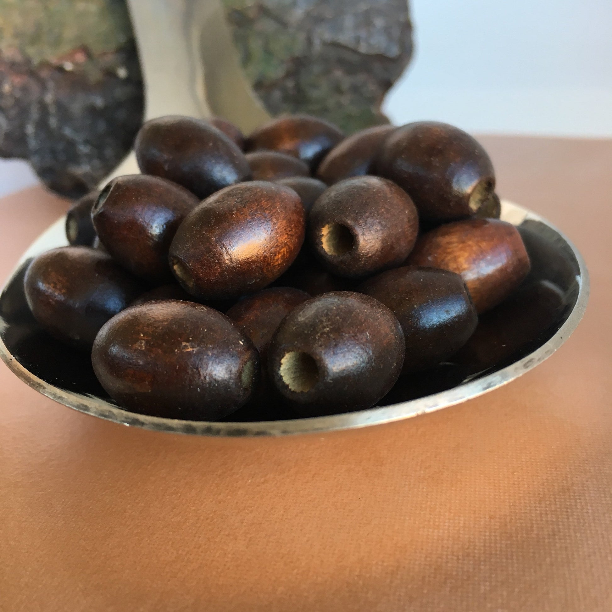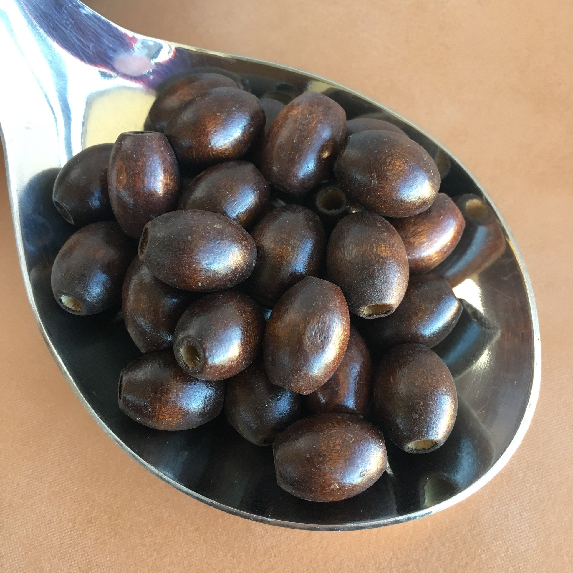 25pcs Natural Wood Bead, Oval Barrel Shape Wooden Beads, Dyed Dark Coffee Brown 17mm Bead