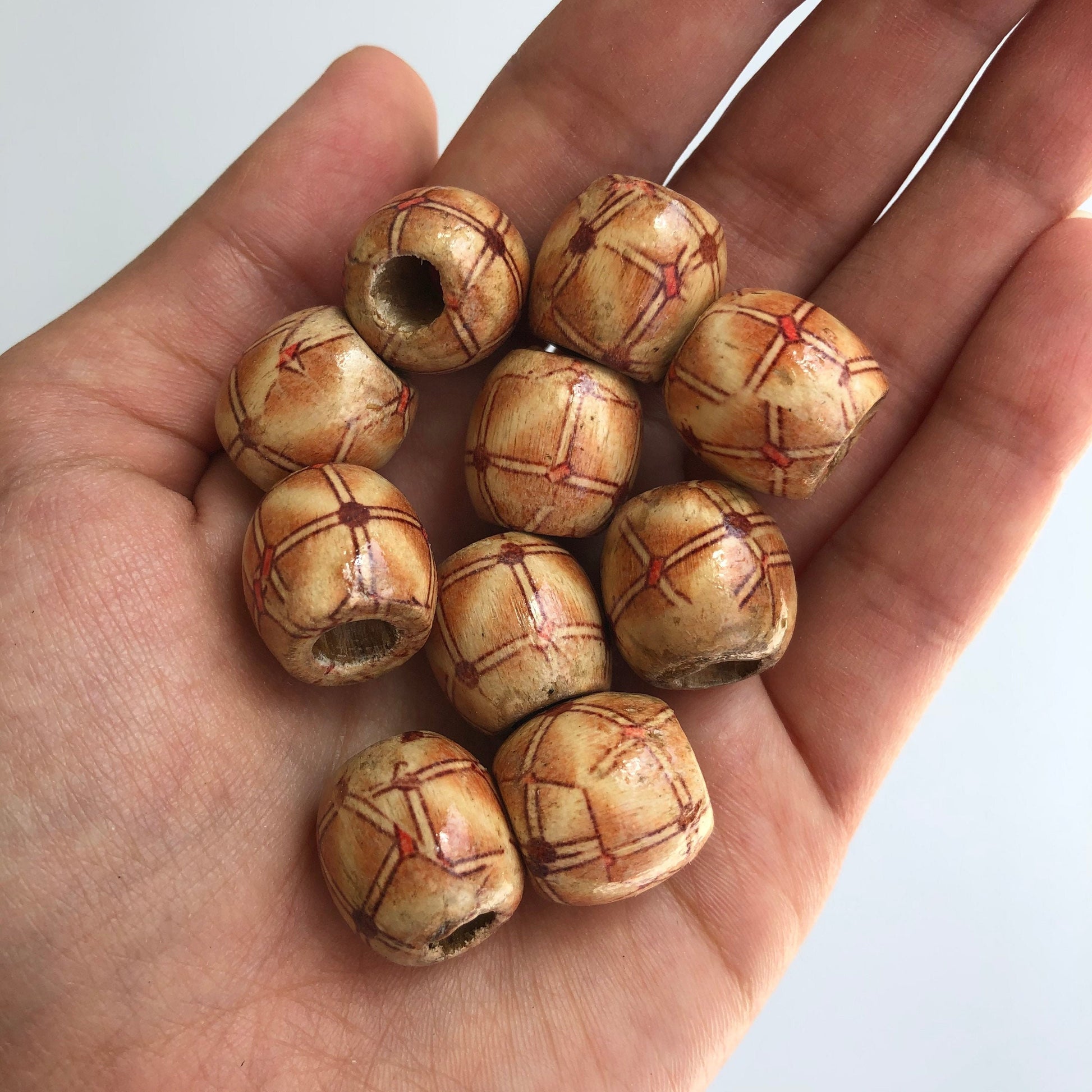 Tribal Pattern Macrame Wood Beads 18mm Barrel Drum Wooden Dreadlock Bead 25 Pieces