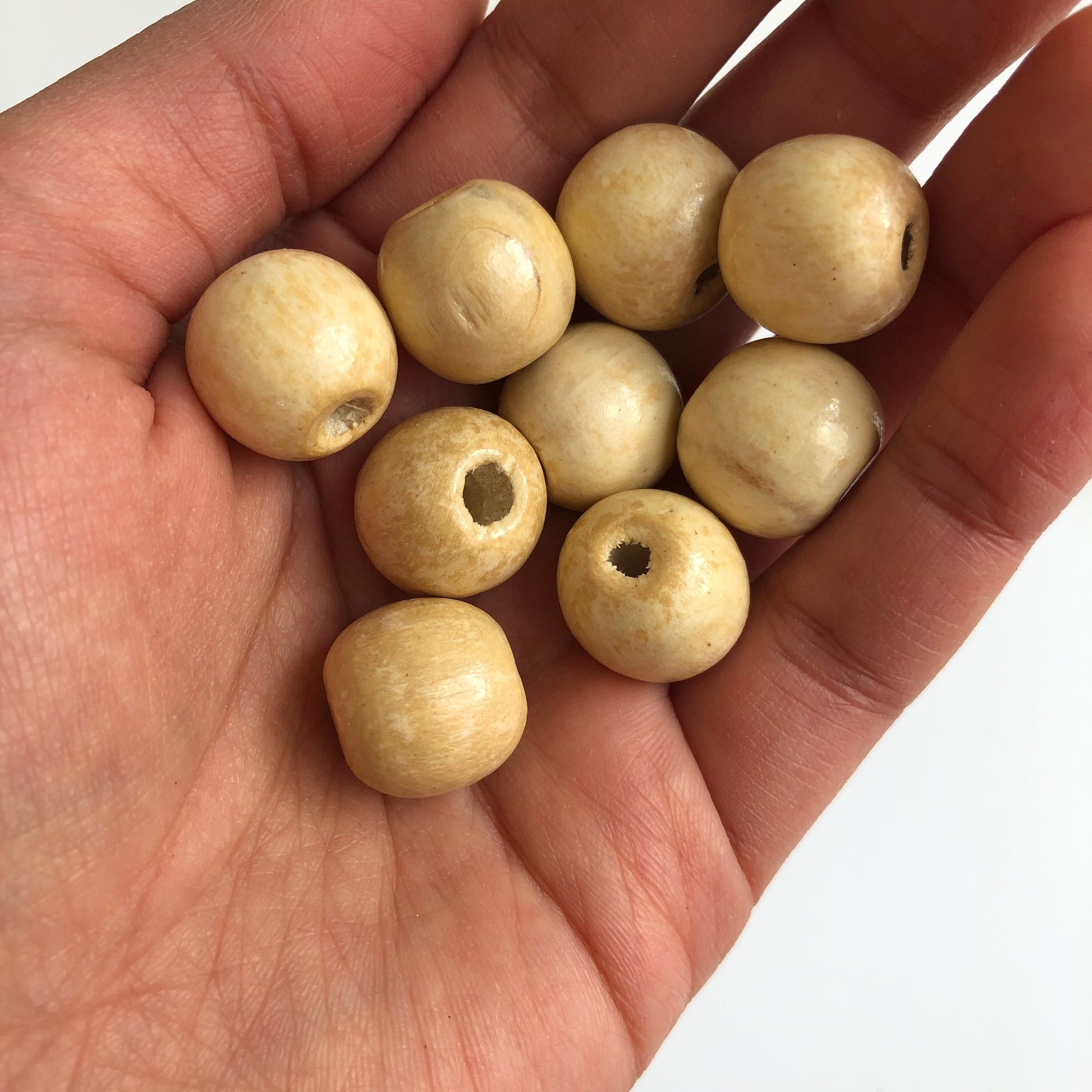 Antique Beige Wood Beads 16mm Round Wooden Chunky Craft Beads 25 Pieces