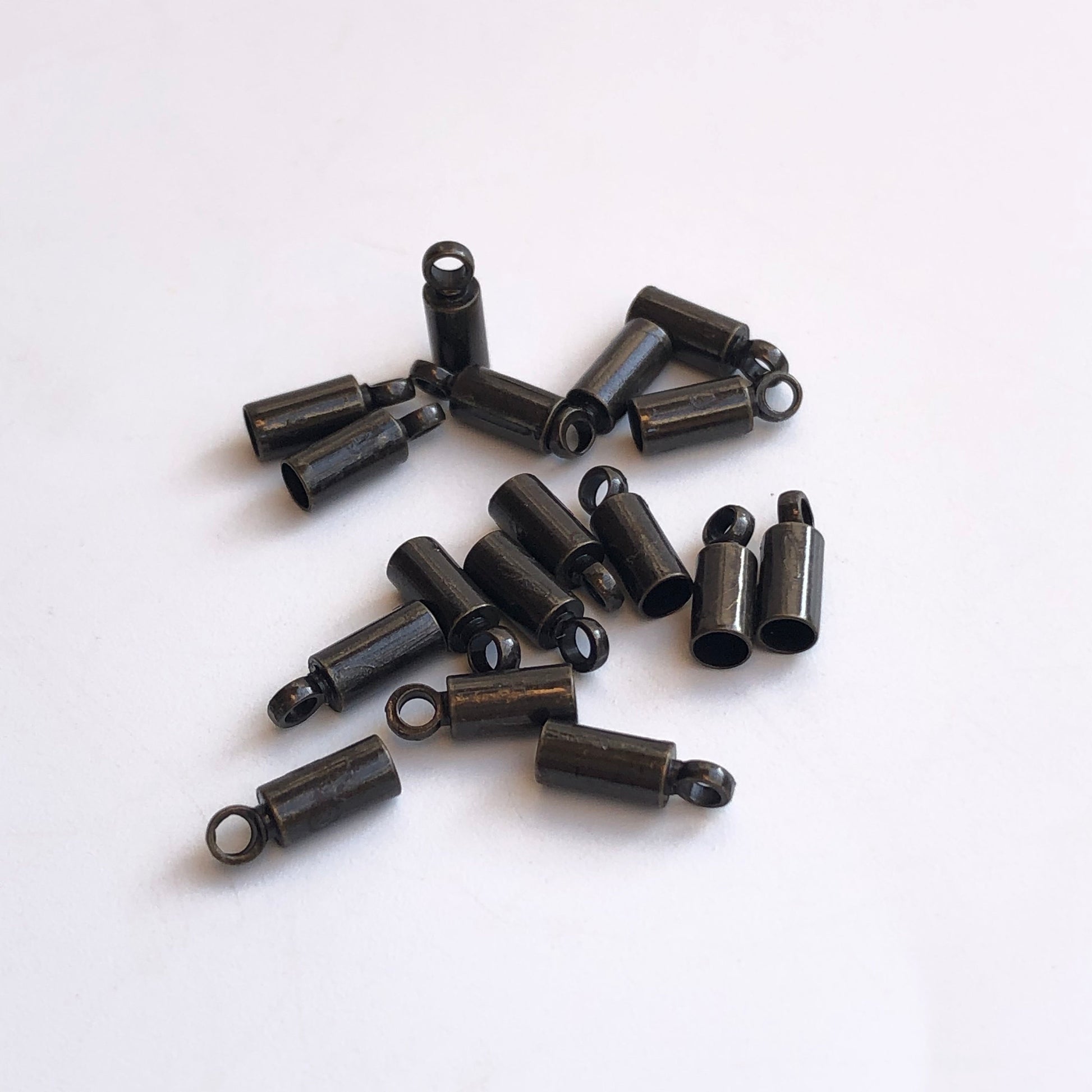 25X Gunmetal Cord End, Brass Metal End Caps, Cord Ends for 2mm Strings, Glue In Caps