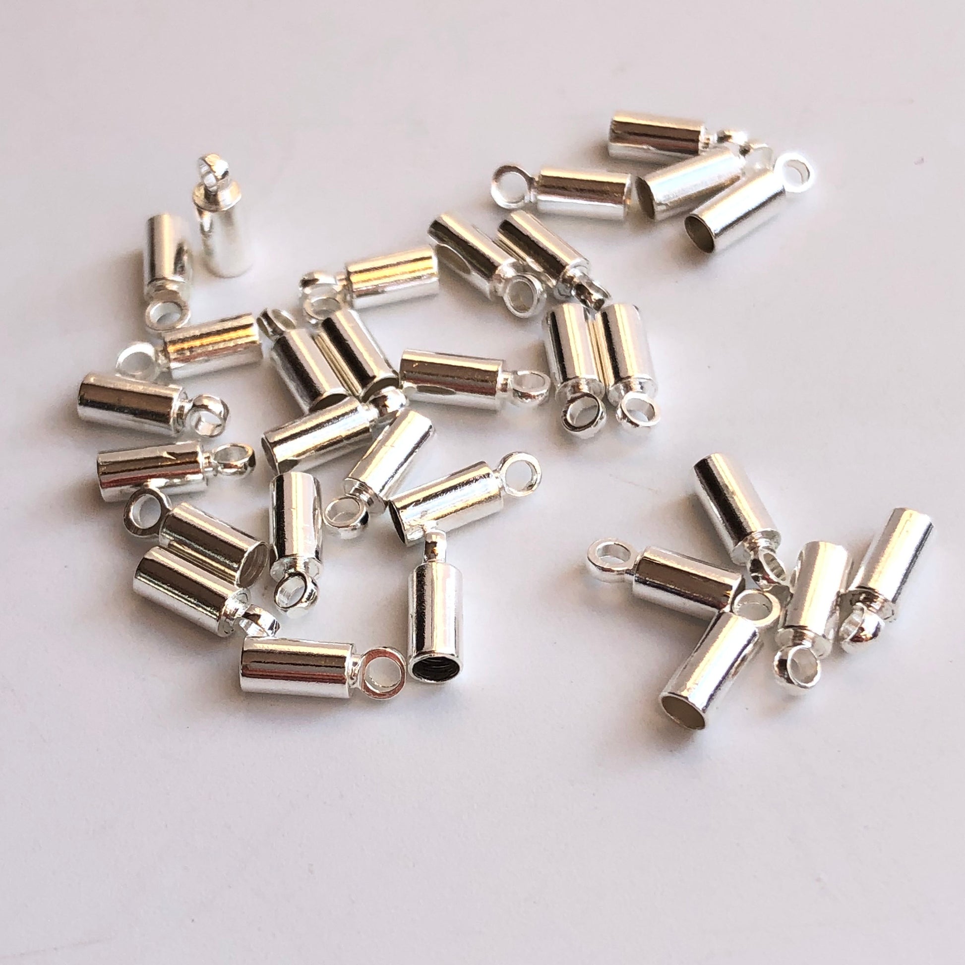 25X Silver Plated Cord End, Brass Metal End Caps, Cord Ends for 2mm Strings, Glue In Caps