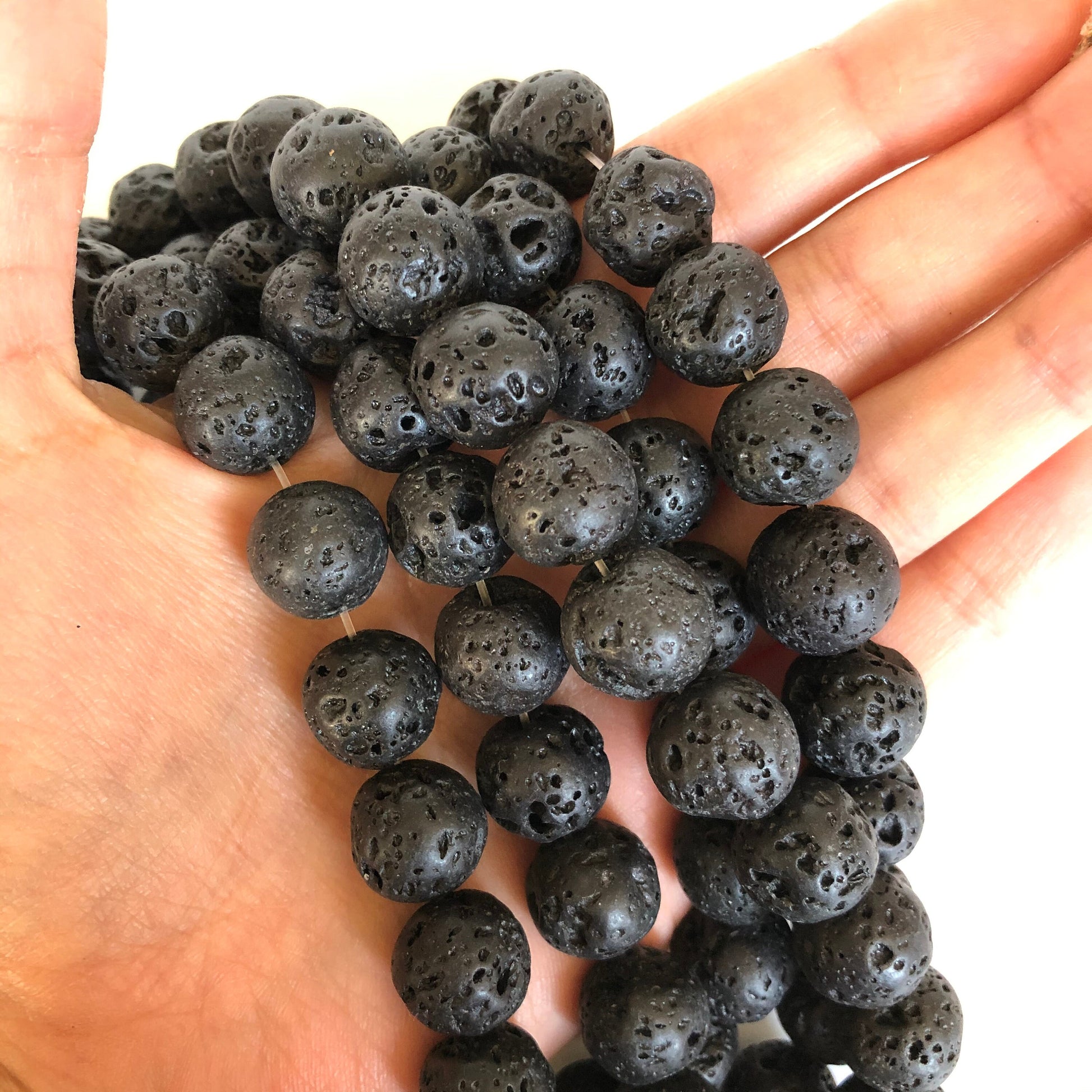 Natural carved volcanic lava Mineral rock bead with a matter finish and craters t absorb oils.