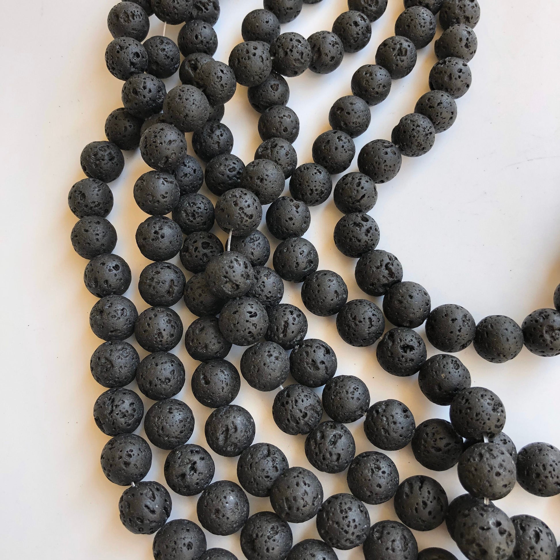 Black Lava Rock Beads 12mm Round Natural Mineral Bead 31 Piece Strand