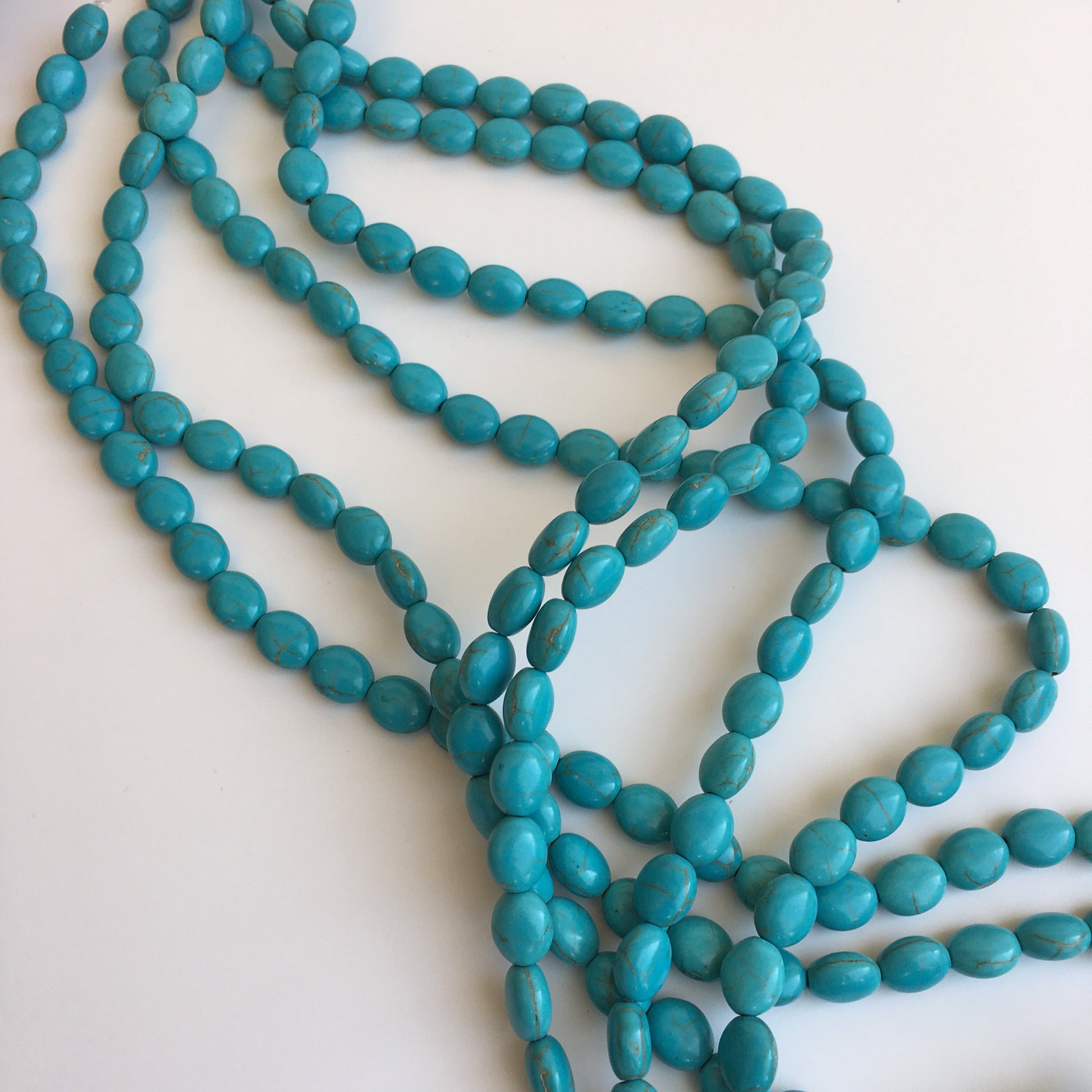 38pcs Turquoise Blue Gemstone Beads 10x8mm Oval Pillow Howlite 38cm Strand Bead