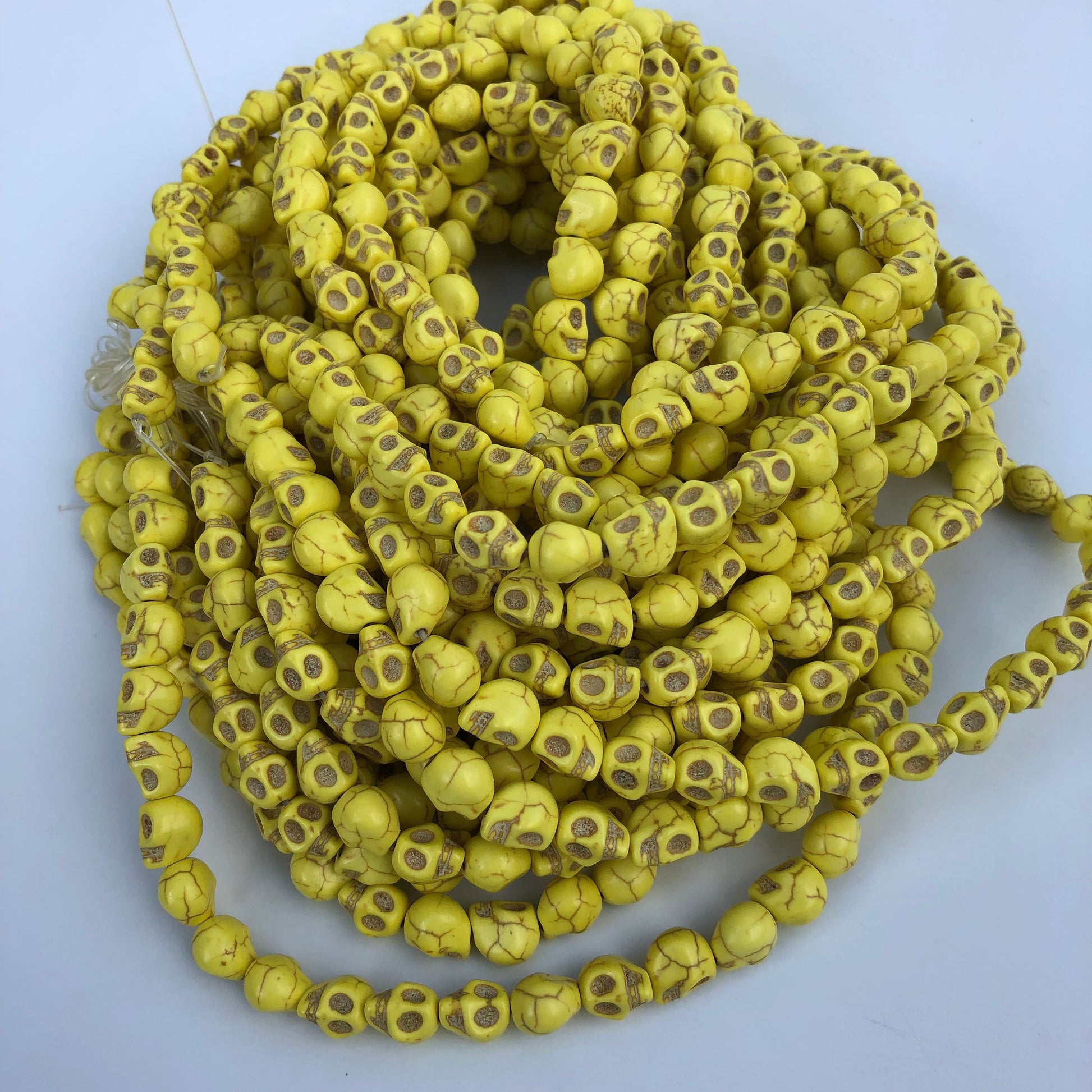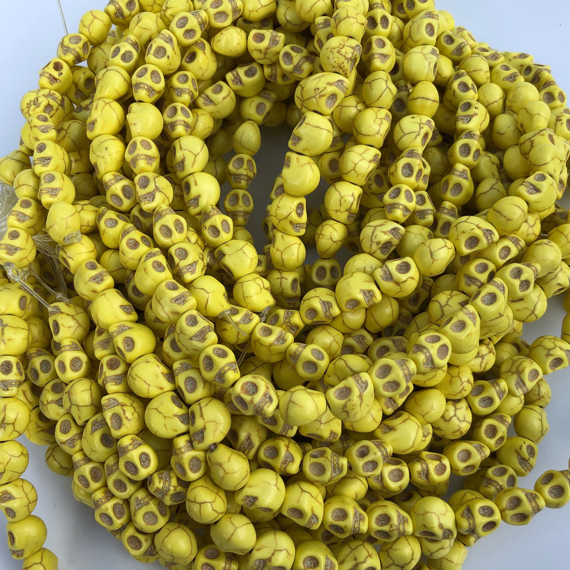 38X Yellow Stone Skull Beads - 9.5x8mm Halloween Gemstone Punk Bead 38cm Strand