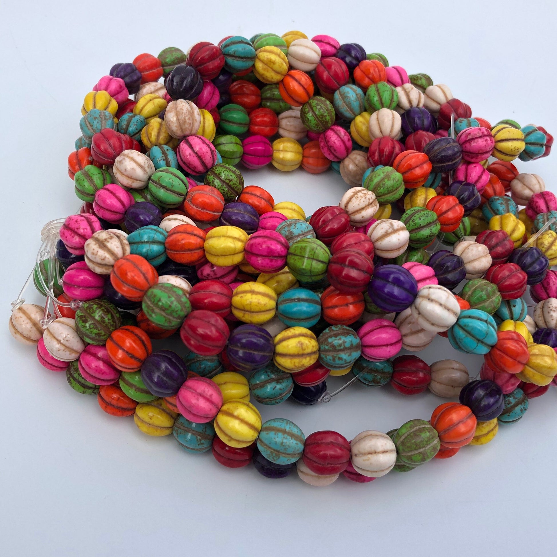 40 pieces Mixed Multi Colour Corrugated Gemstone Beads 10mm Round Pumpkin Shape Bead 40cm Strand