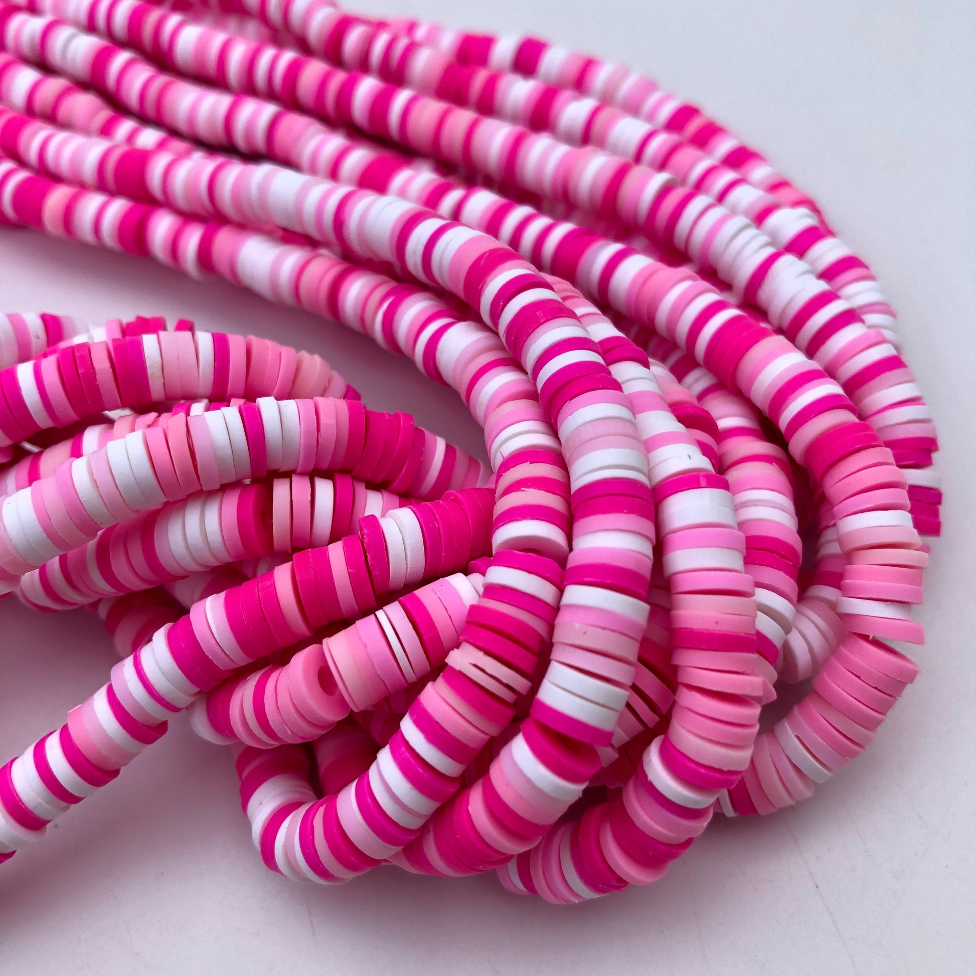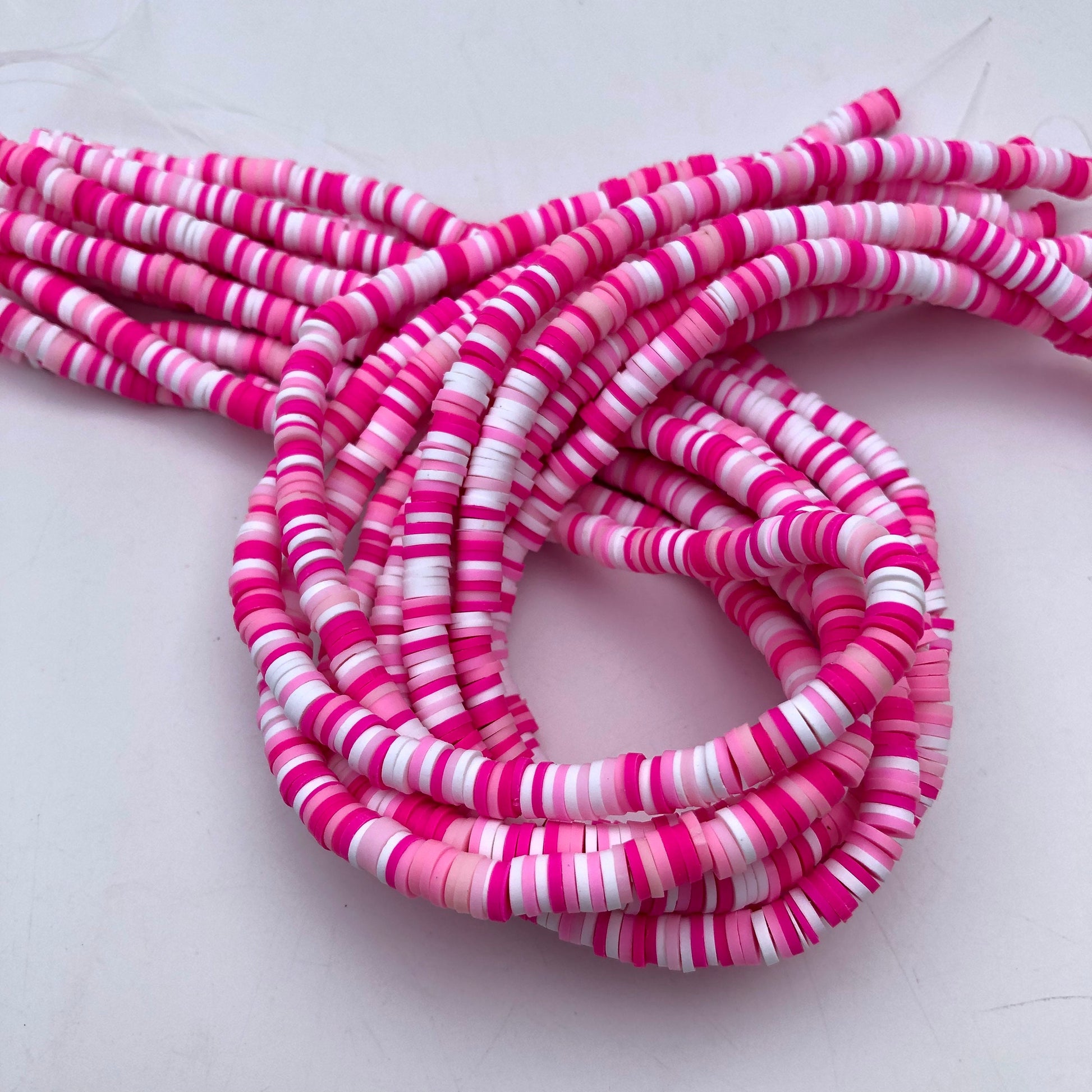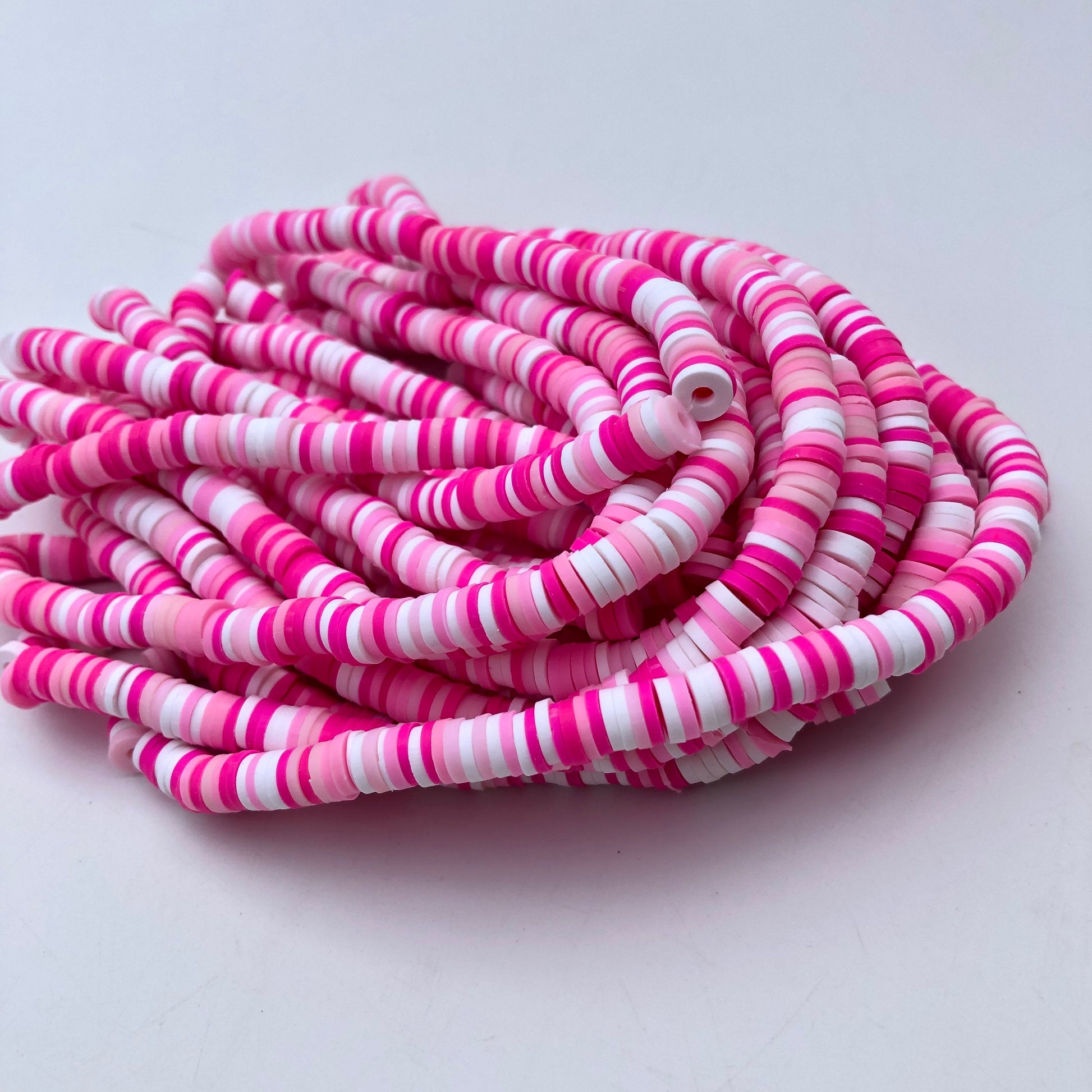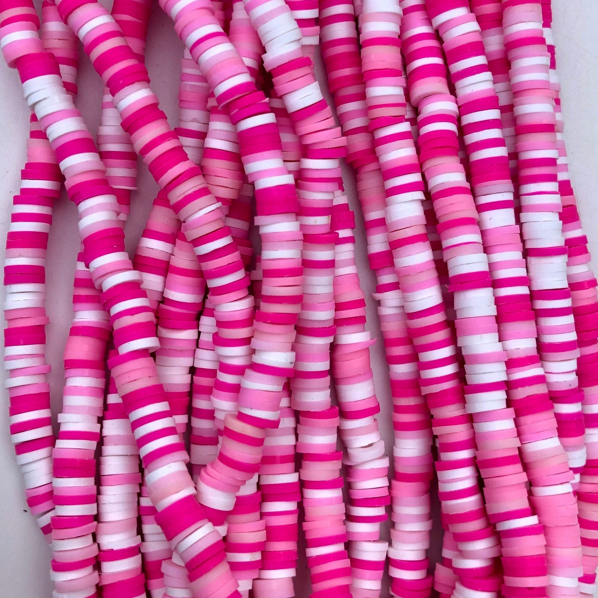 Mixed pink clay polymer disc shaped Katsuki beads, a great bead to use in your jewellery making projects.