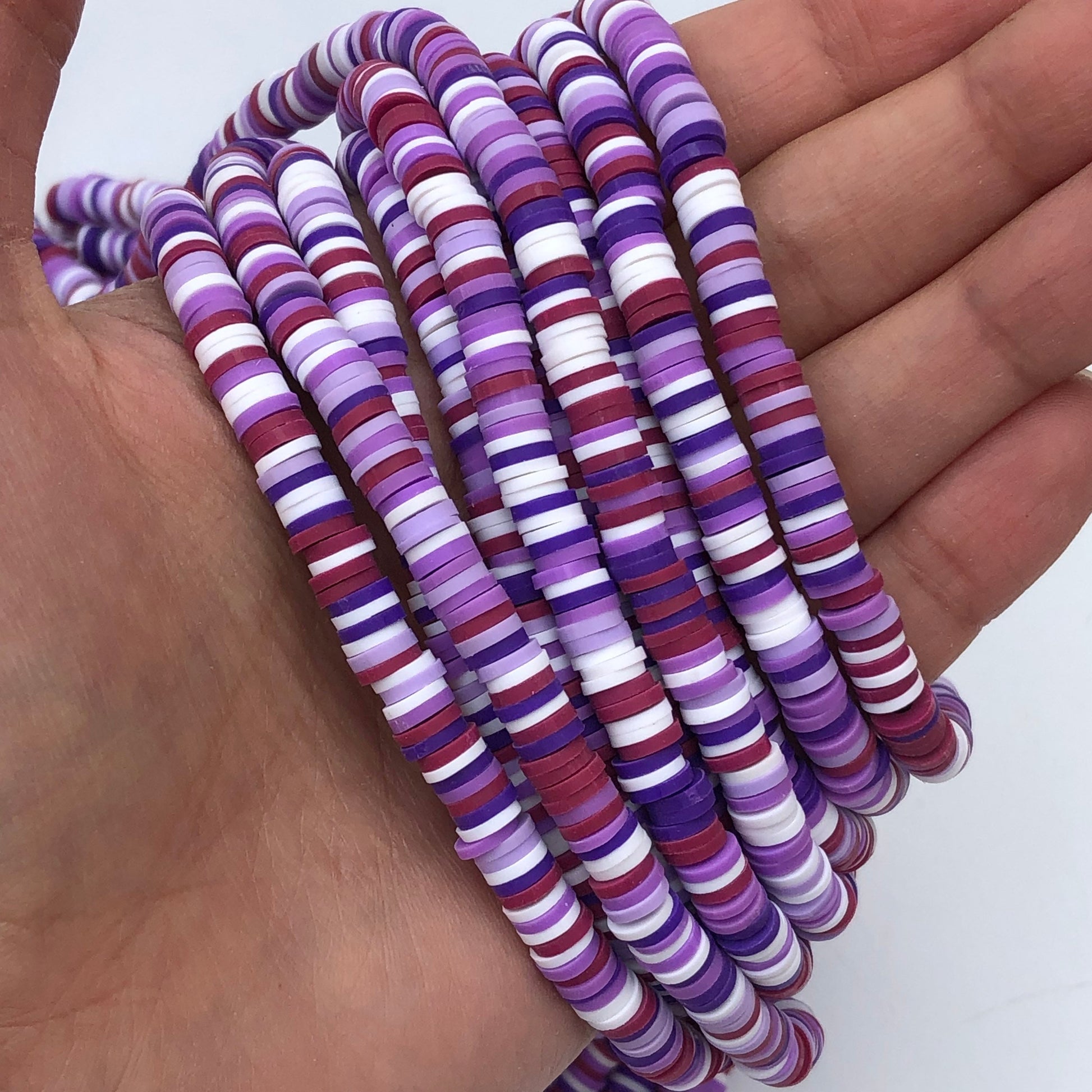 Mixed Purple Colour Polymer Clay Beads 6mm Round Disc Katsuki Jelly Bead 40cm Strand