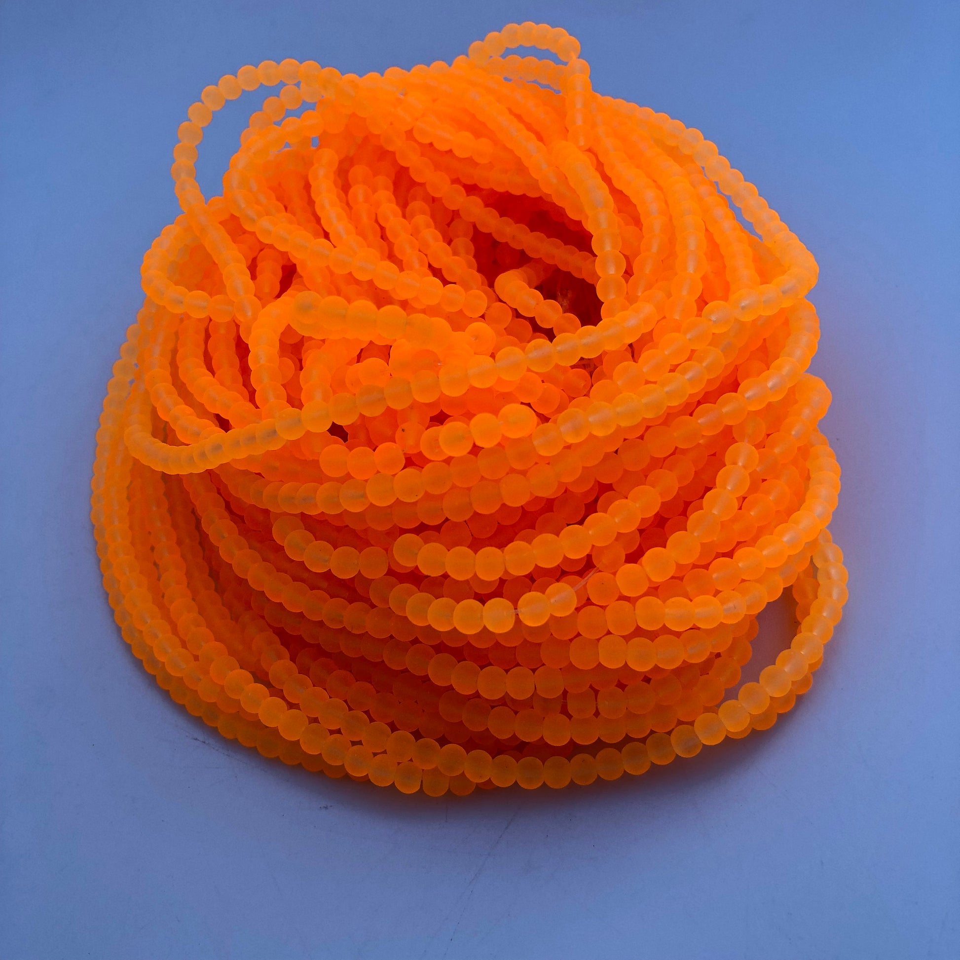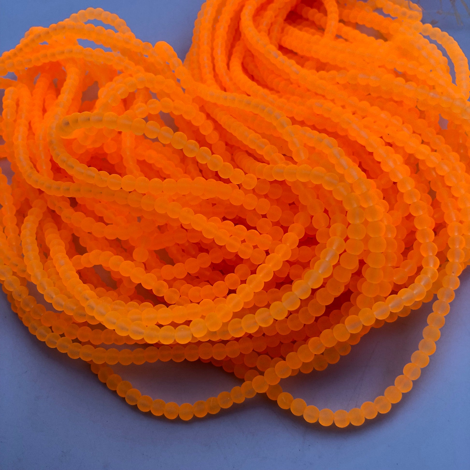 4mm Orange Fluro frosted glass beads, 190 pieces per strand, Loose jewellery making bead, Round transparent beads 75cm strand