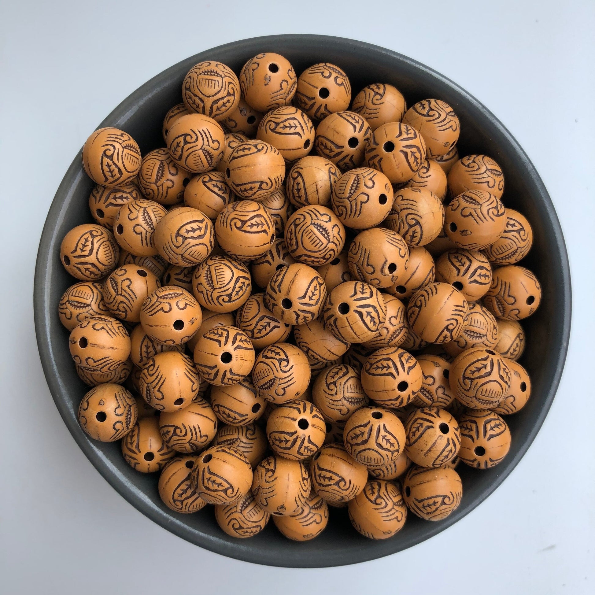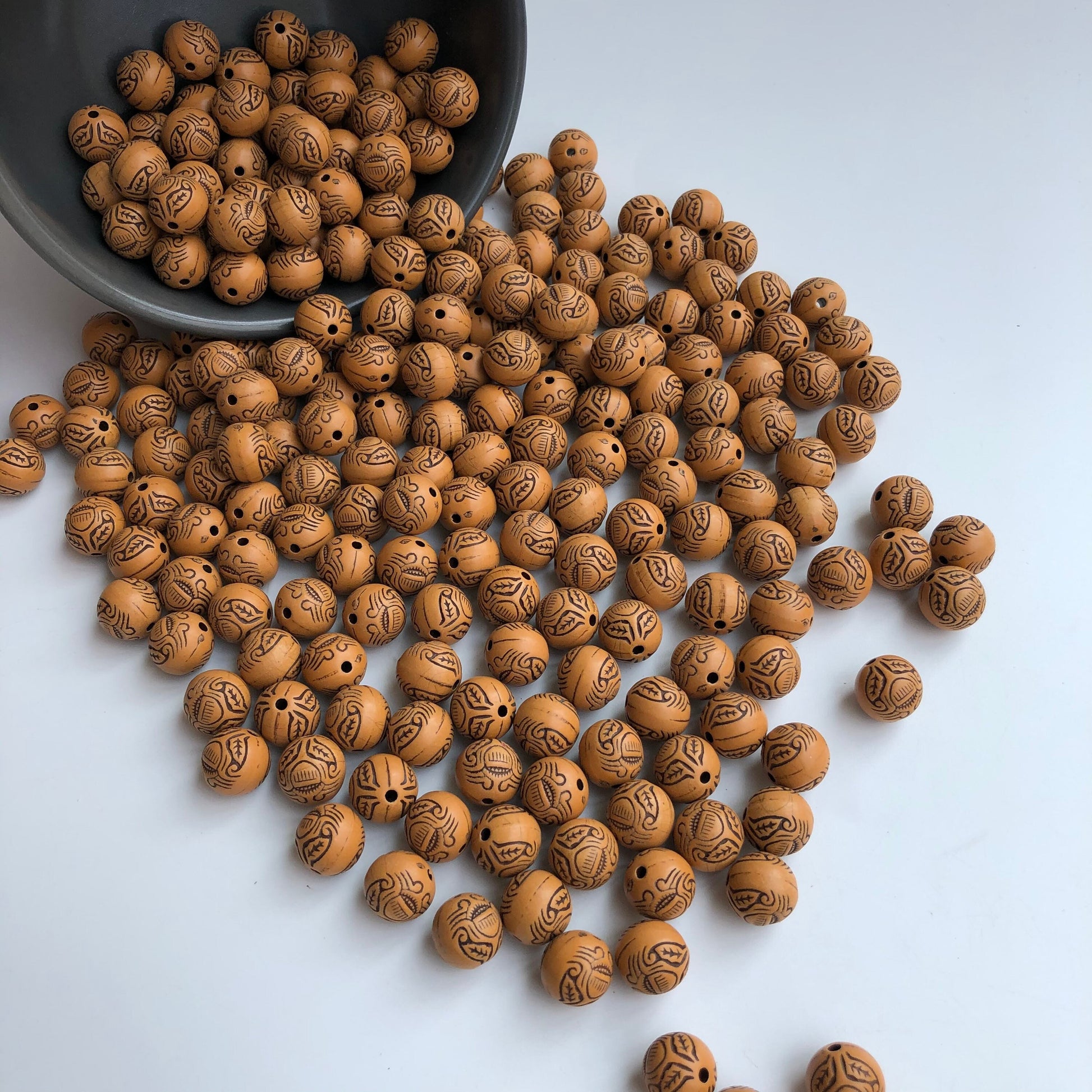 50pcs Tan Brown Round Beads 11mm European Pattern Acrylic Plastic Craft Bead