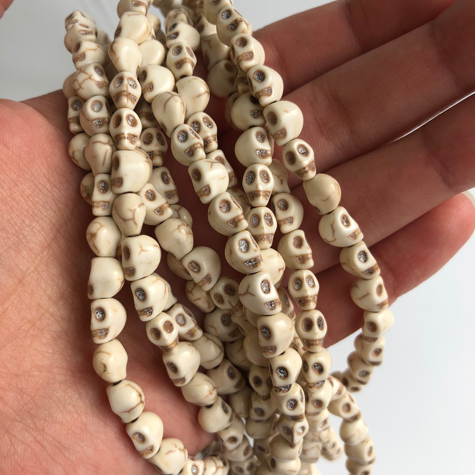 50X Antique White Howlite Skull Beads 8x7mm Halloween Glossy Gemstone Punk Bead 39cm Strand