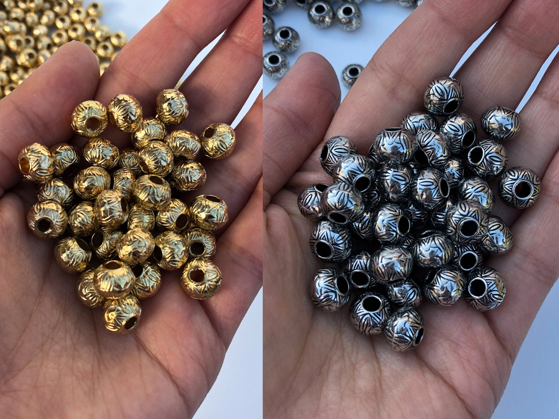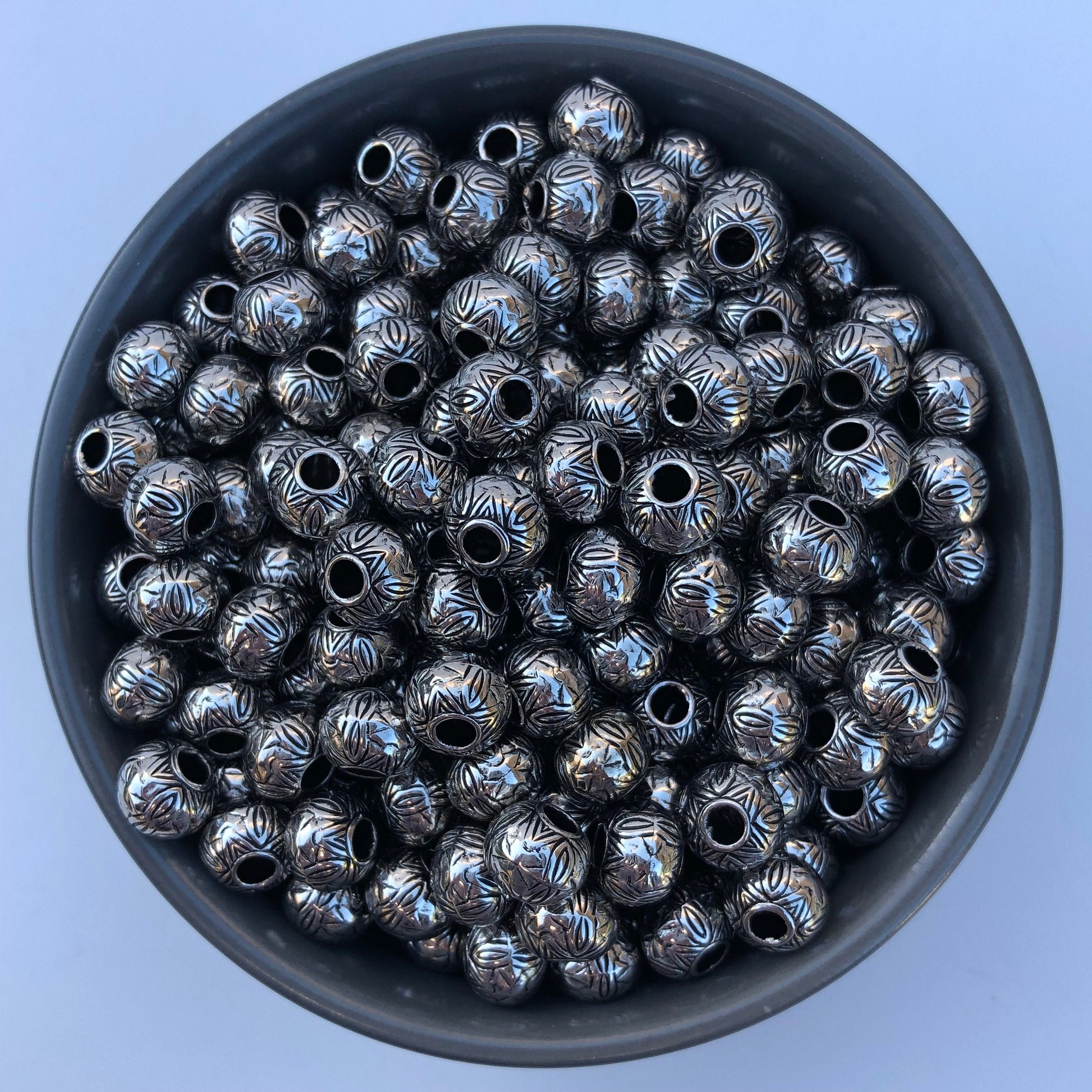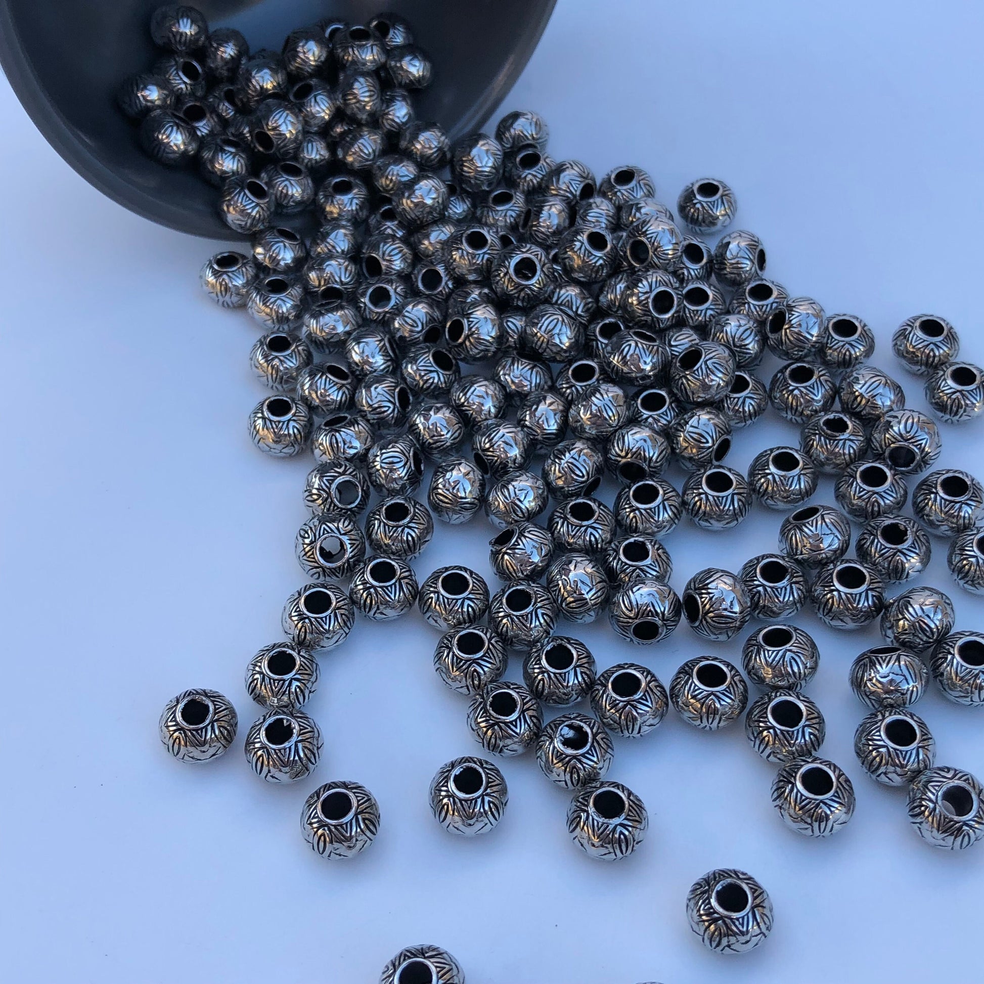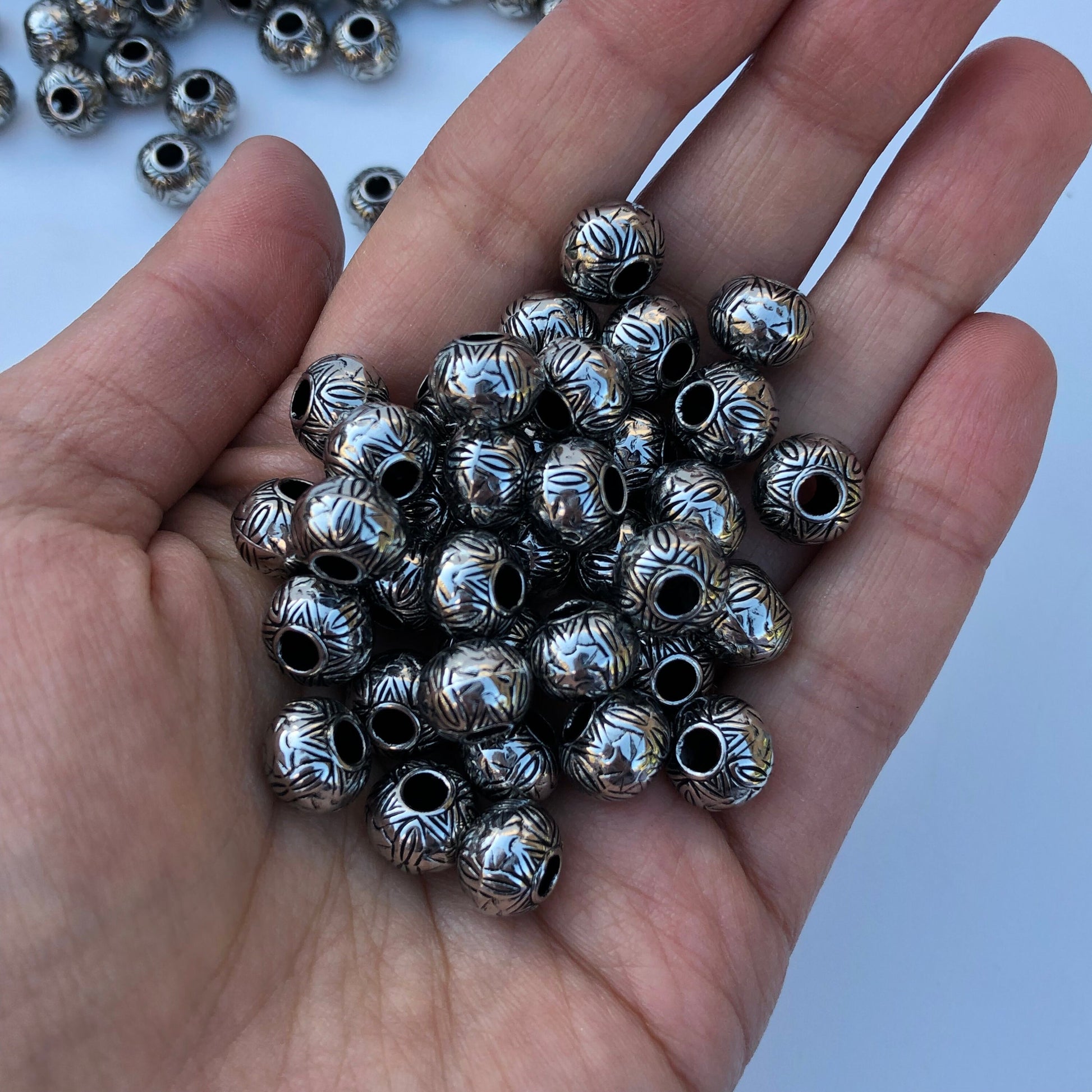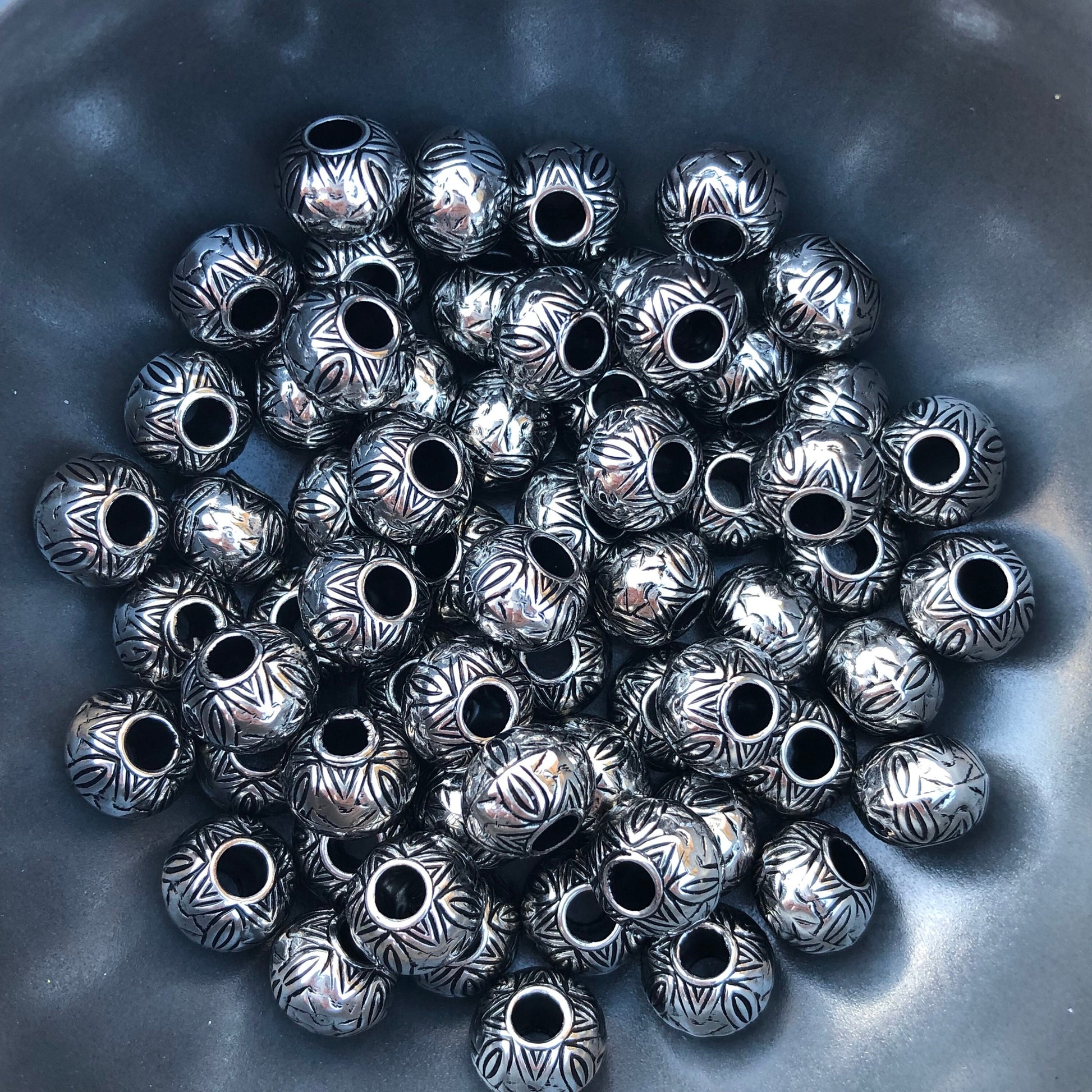 50X Silver Macrame Beads, 10x8mm Hair Pony Bead, Geometric Pattern Acrylic Craft Jewellery Making Bead