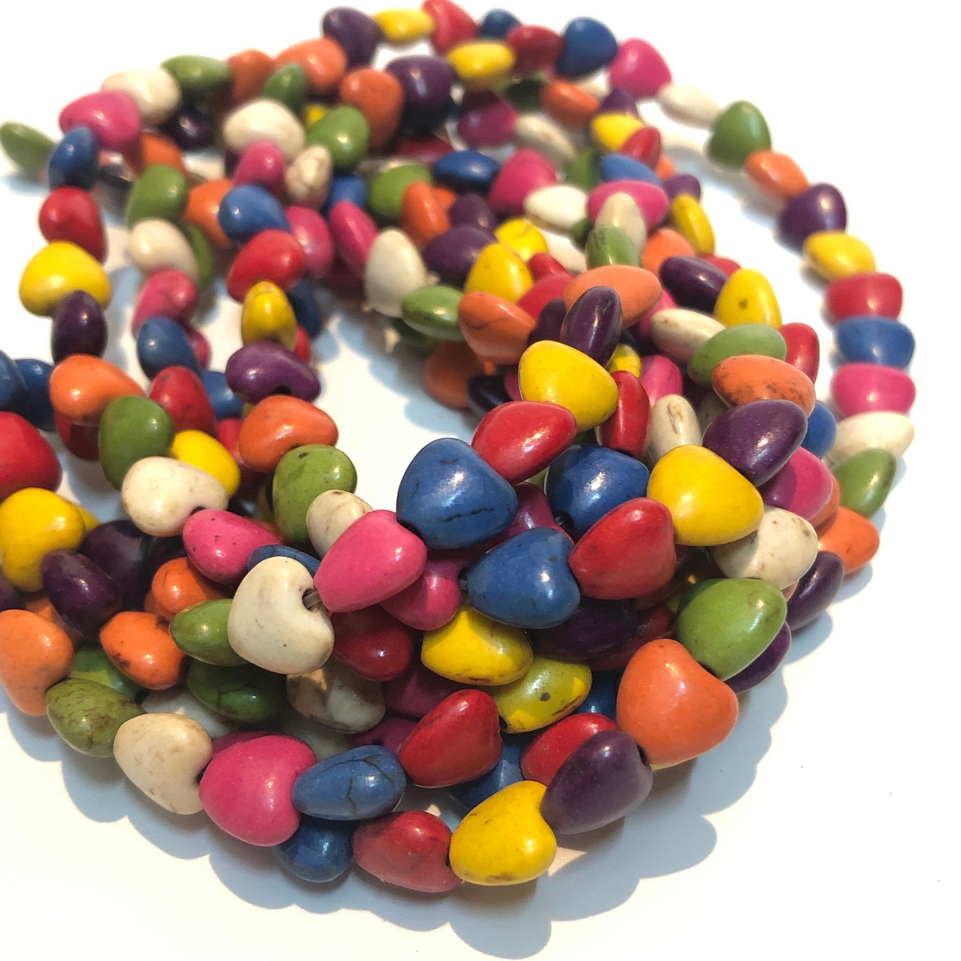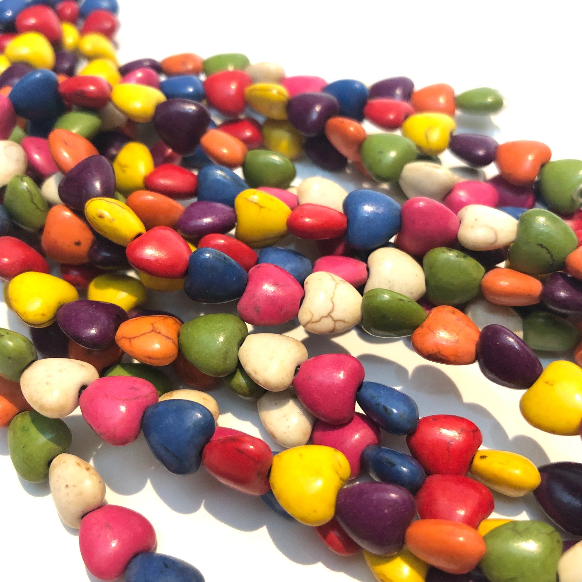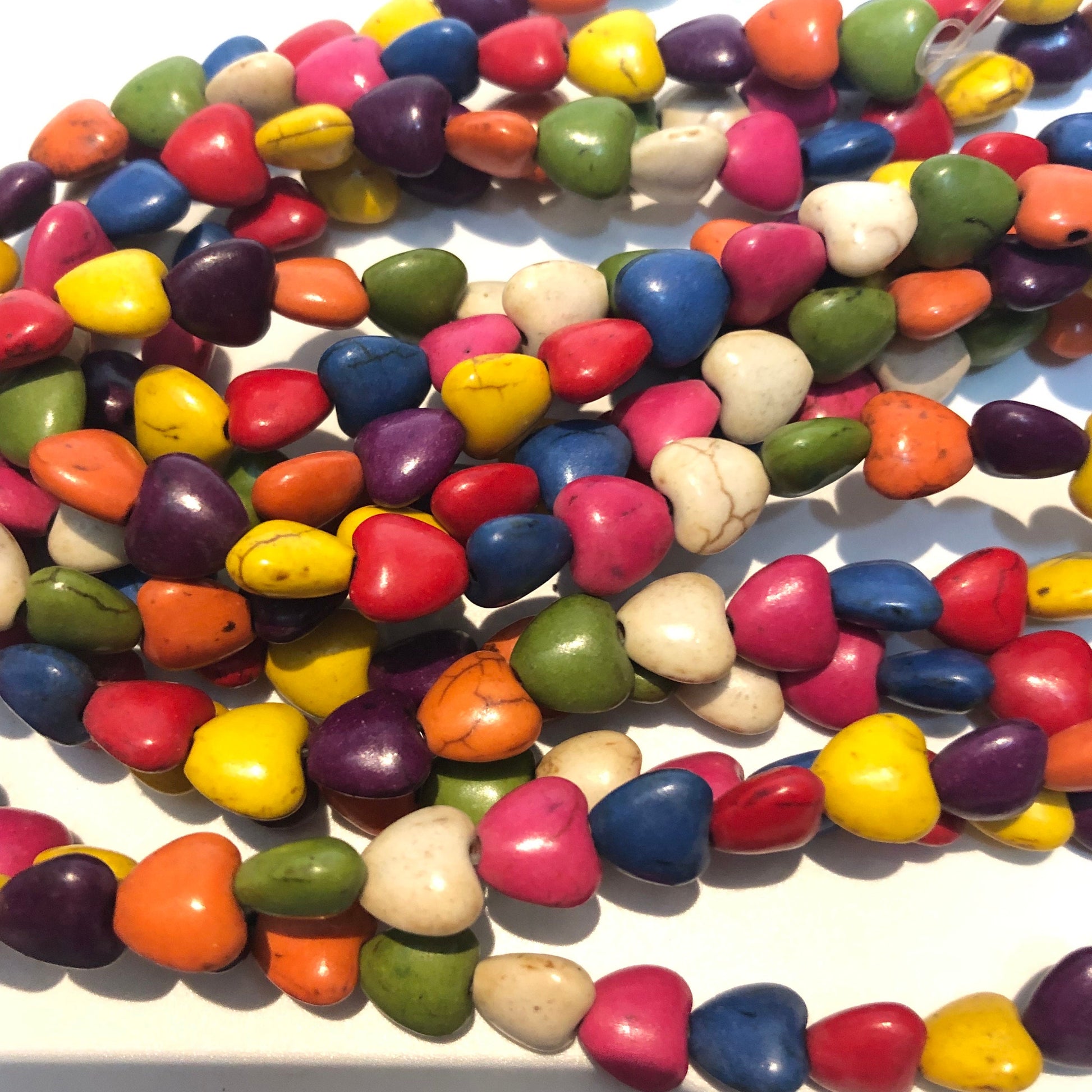 52pcs Love Heart Mixed Gemstone Beads, 8mm Antique Colour Strand Bead