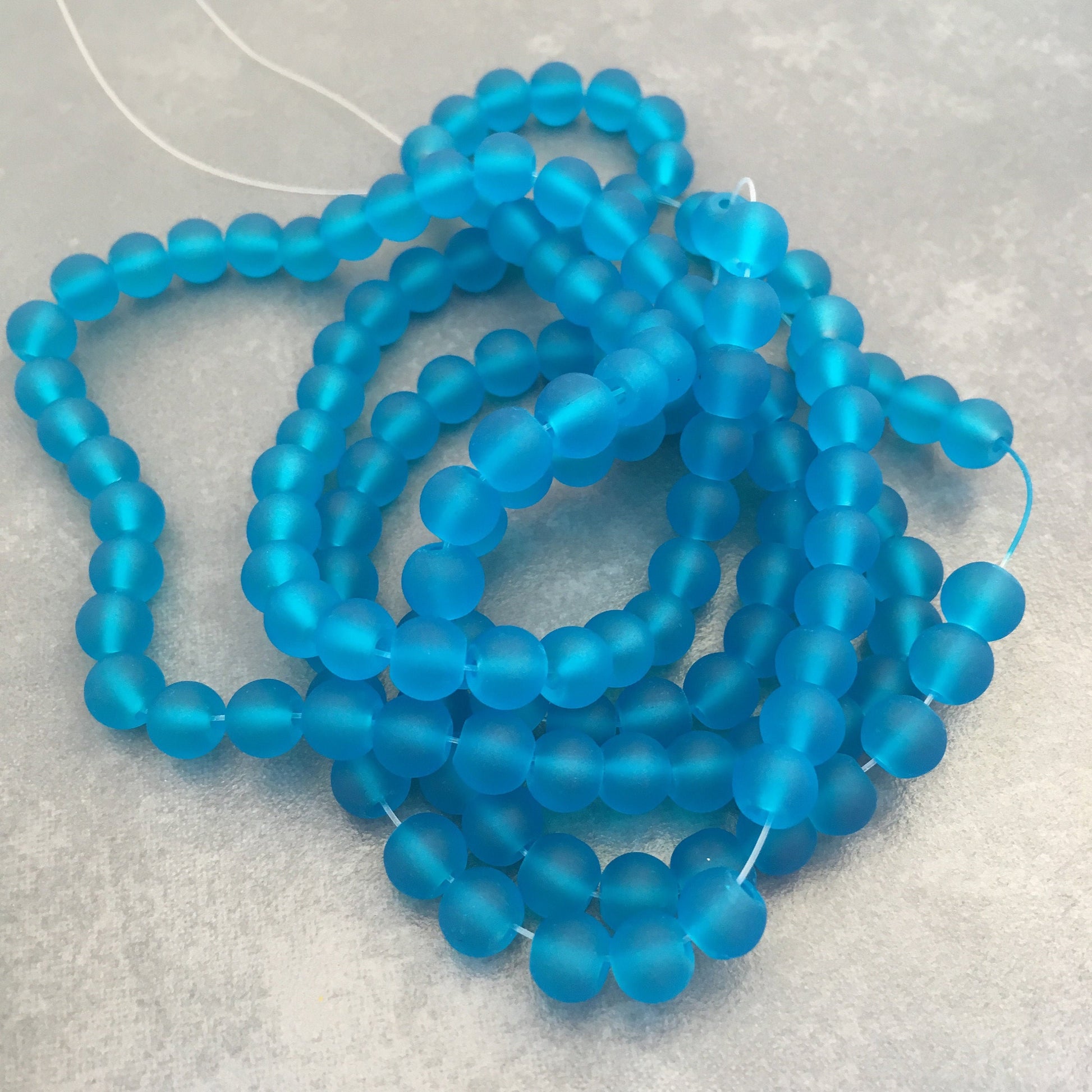 Blue Frosted Glass Beads 6mm Round DIY Bracelet Necklace Bead 135 Piece Strand
