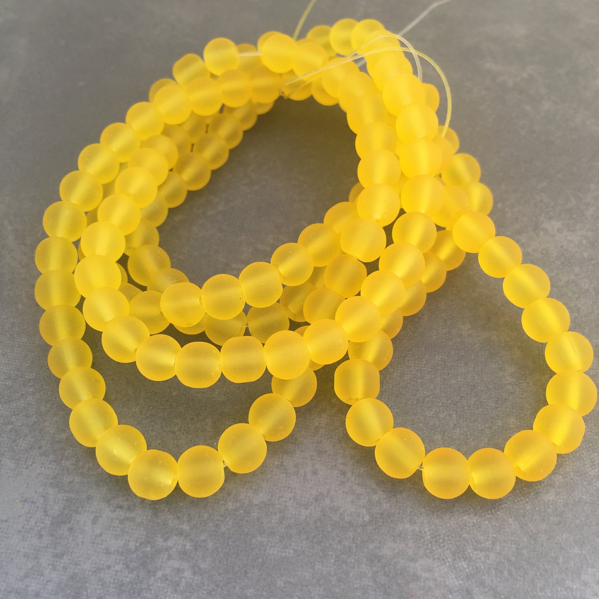 Yellow Frosted Glass Beads 6mm Round DIY Bracelet Necklace Bead 135 Piece Strand