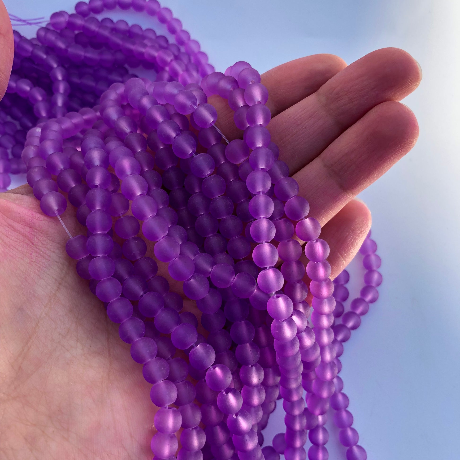 6mm Lavender Purple Frosted Glass Beads - 135 pieces per strand