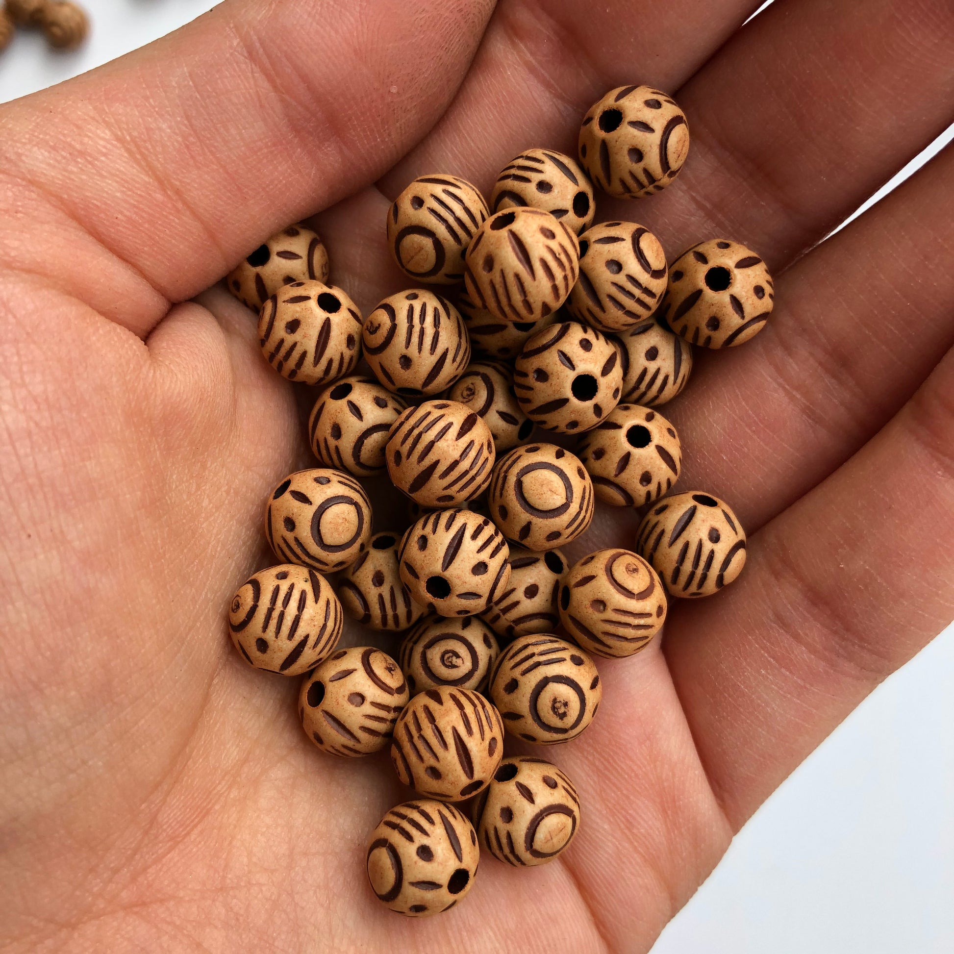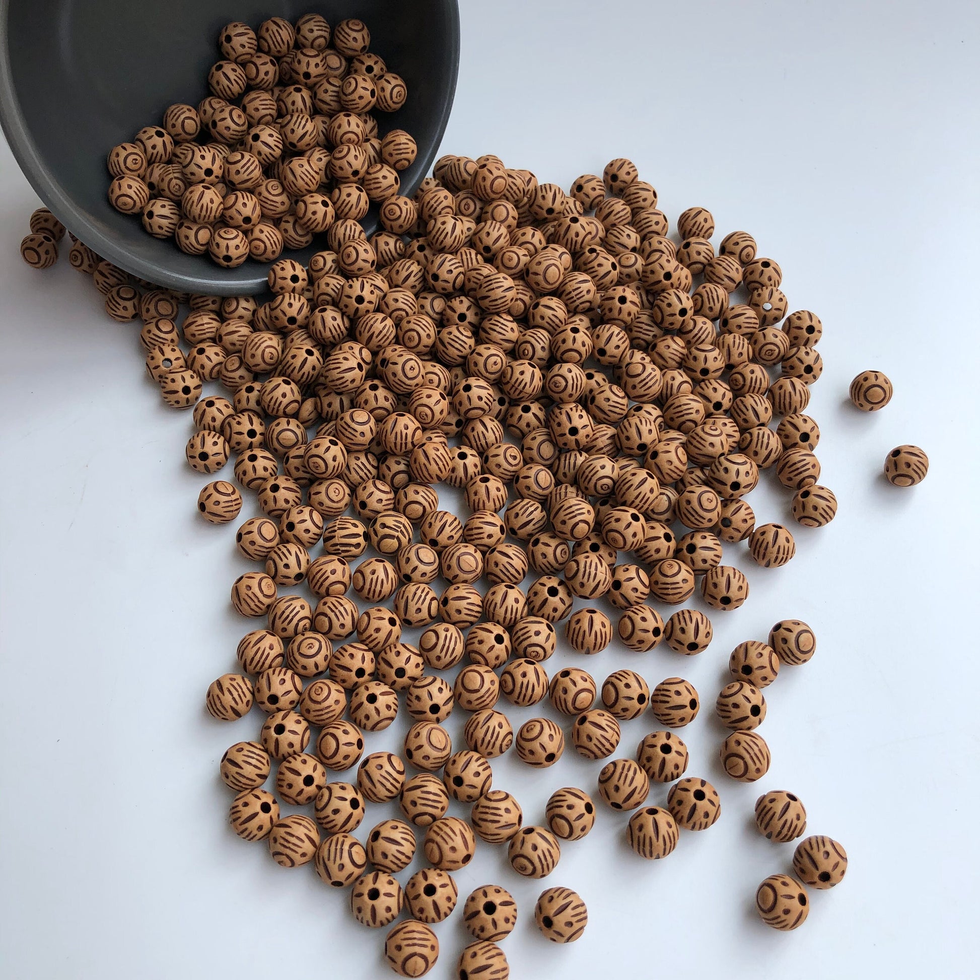 75pcs light tan brown round beads 9mm acrylic resin craft bead tribal design