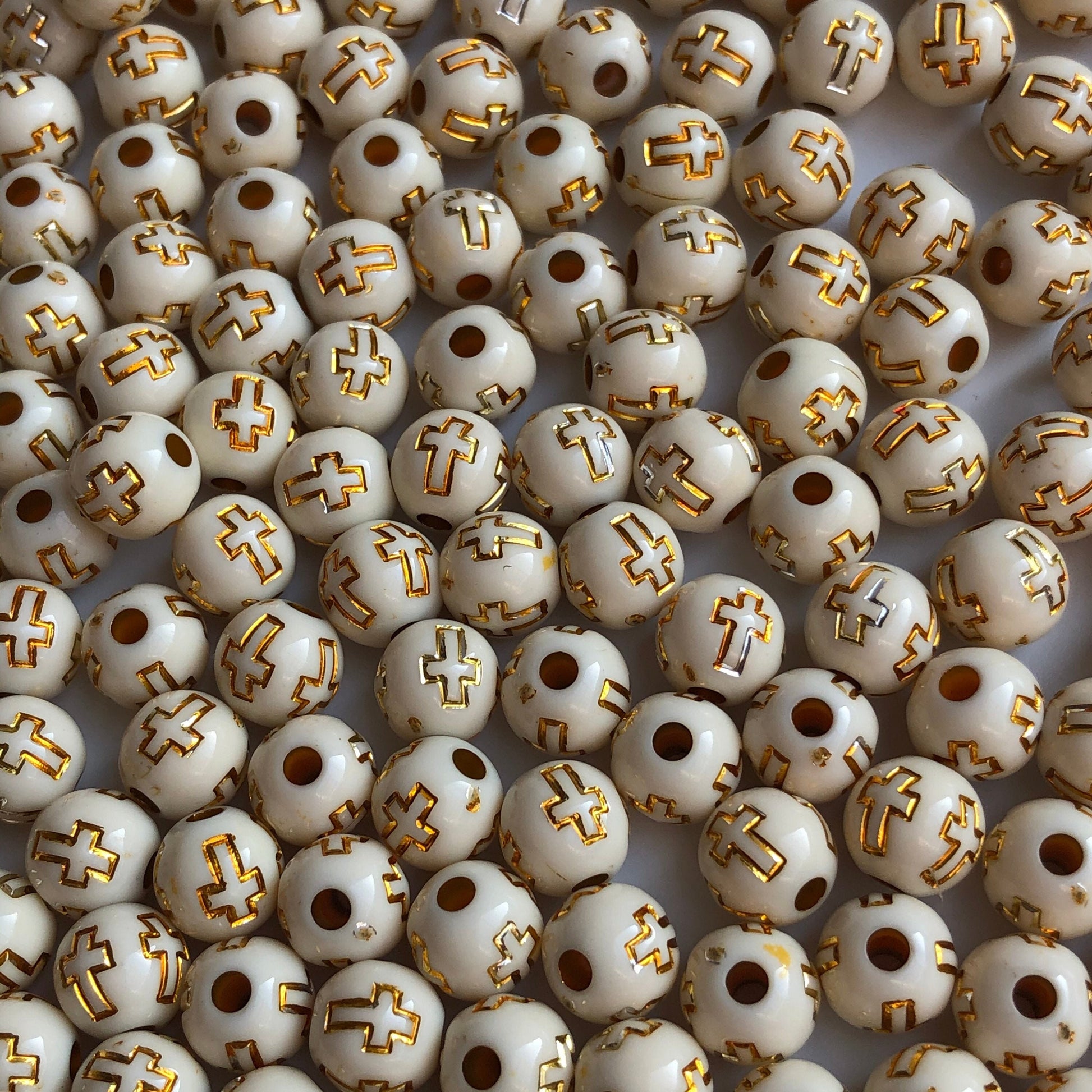 Round bead with an etched gold cross great for rosary bracelets and necklace making