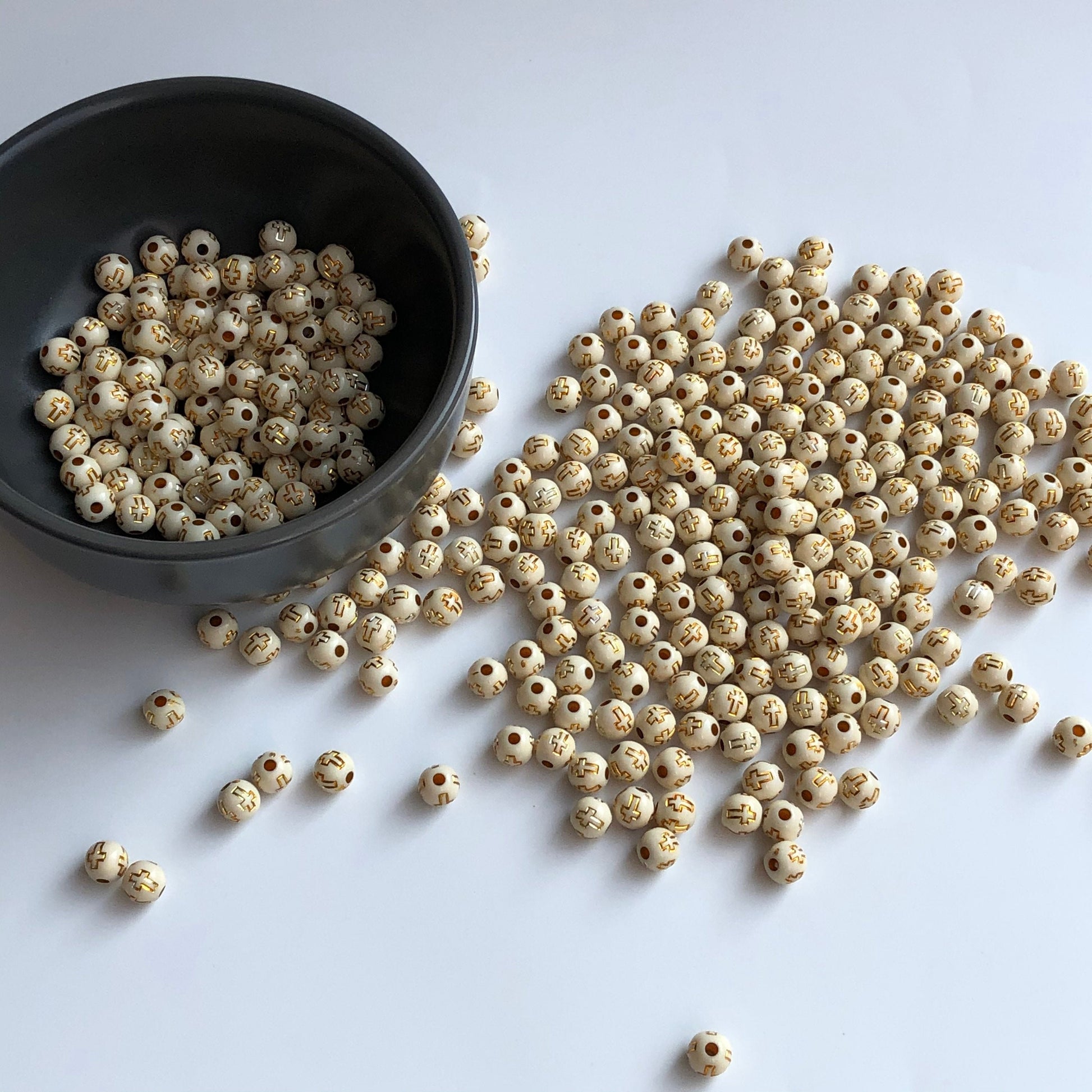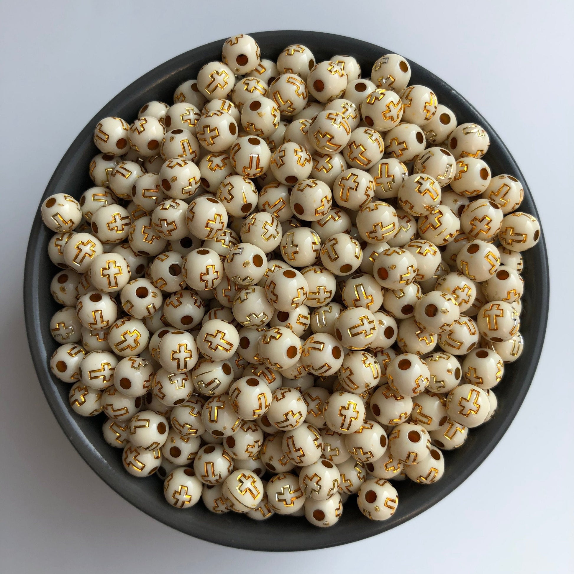 8mm Beige and Gold Cross Bead 75pcs Round Jewellery Making Acrylic Plastic Beads