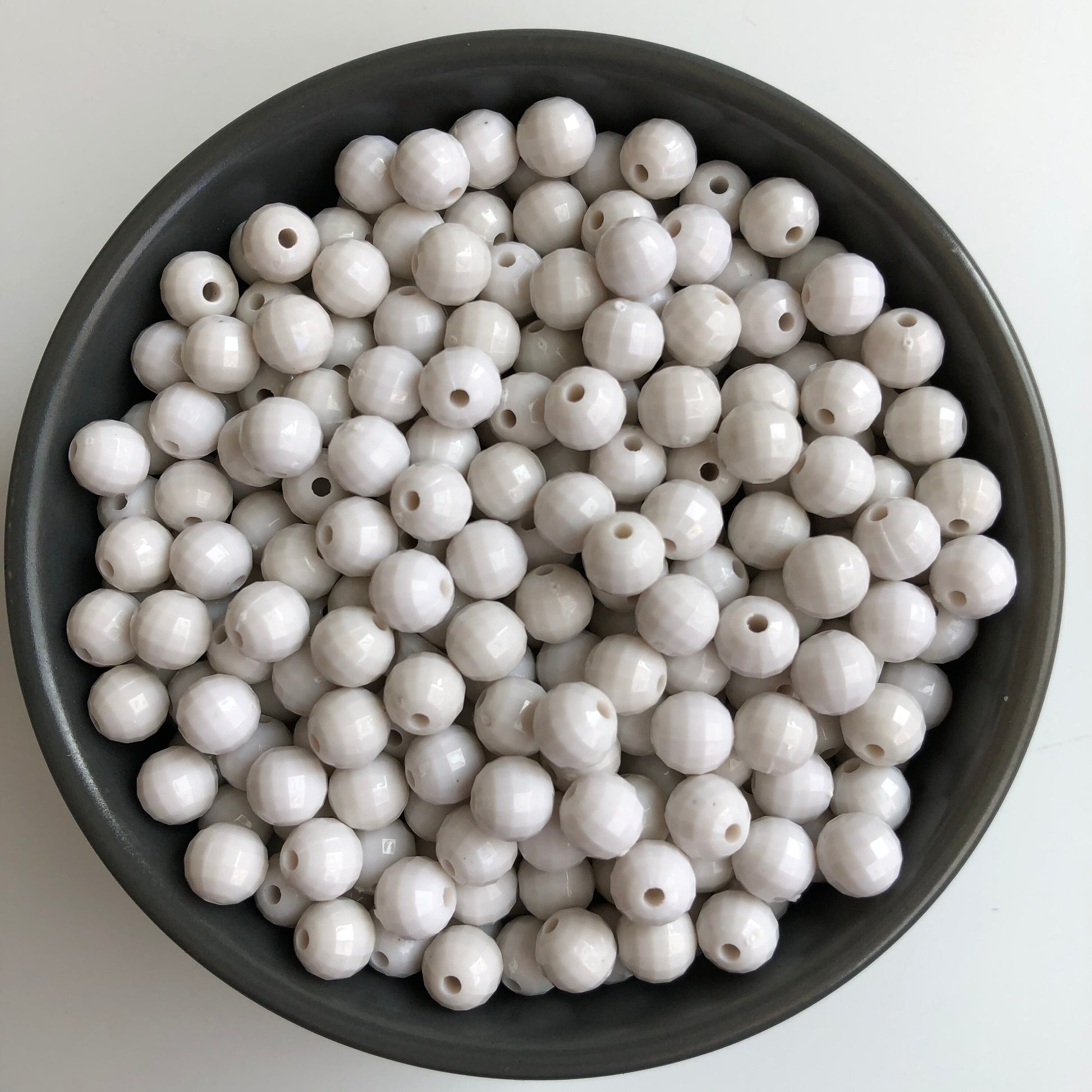 8mm Round Solid White Faceted Plastic Beads set of 50 pieces Disco Shape Ball Bead