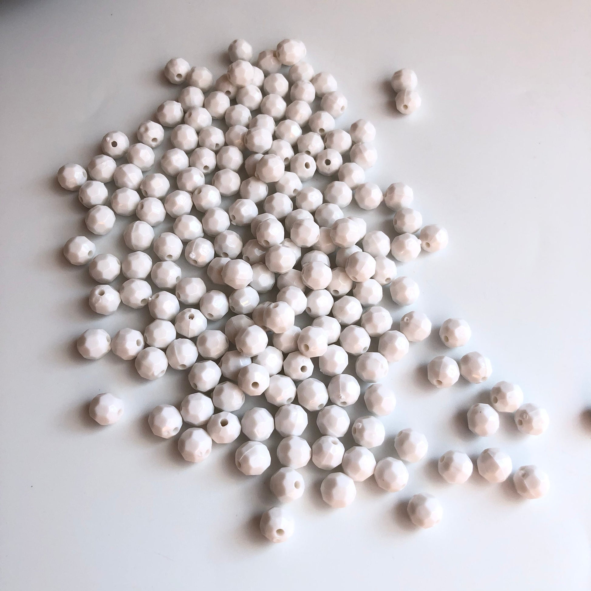8mm Round White Plastic Beads set of 50 pieces Octagon Shape Faceted Dimpled Bead