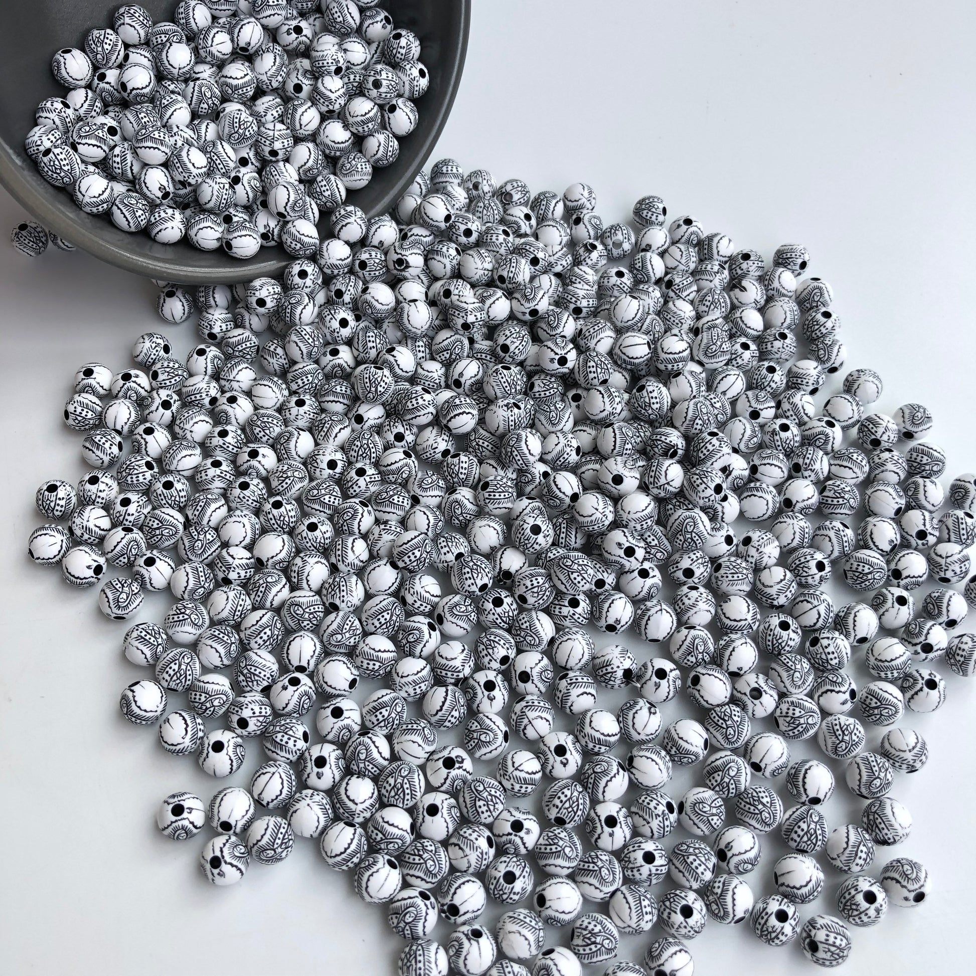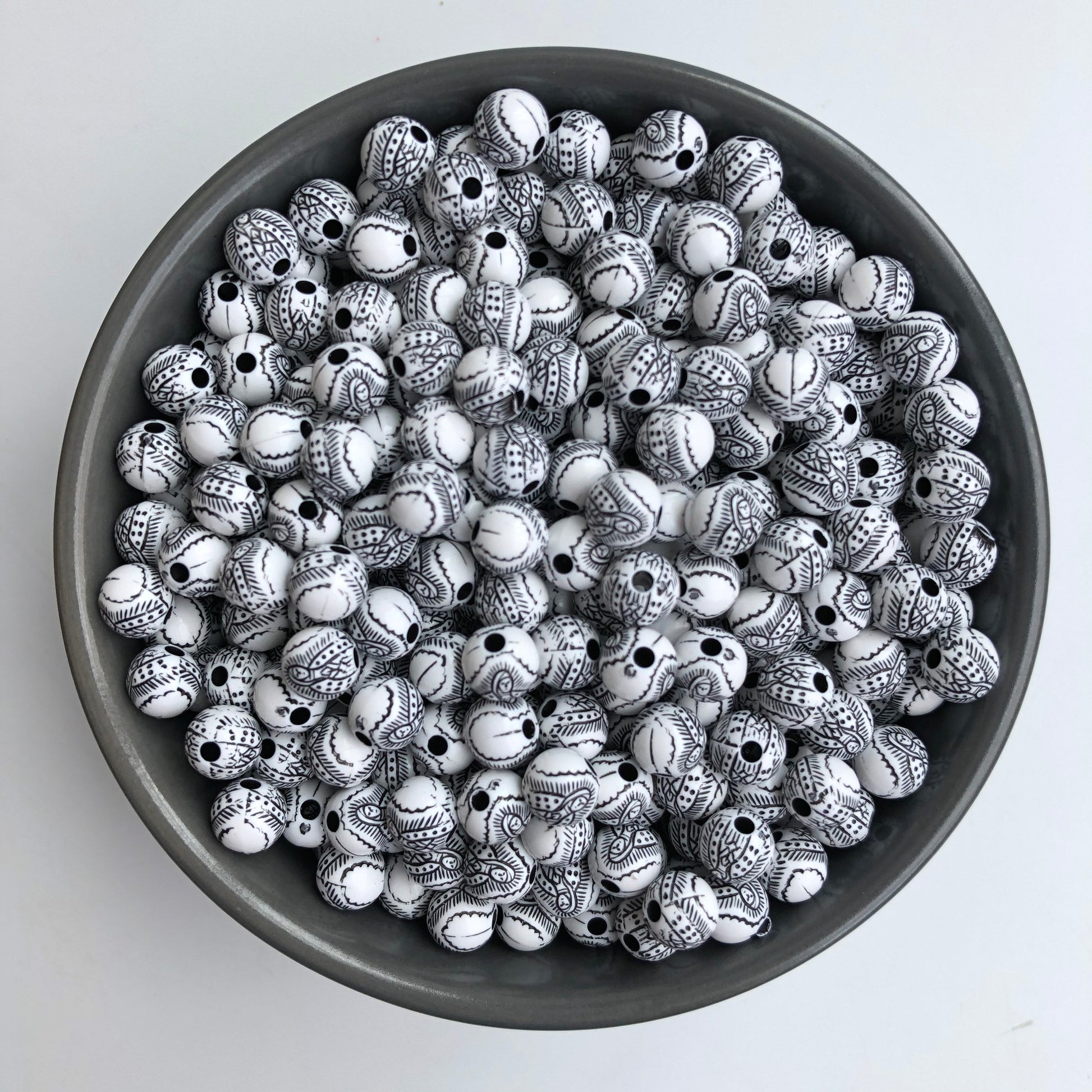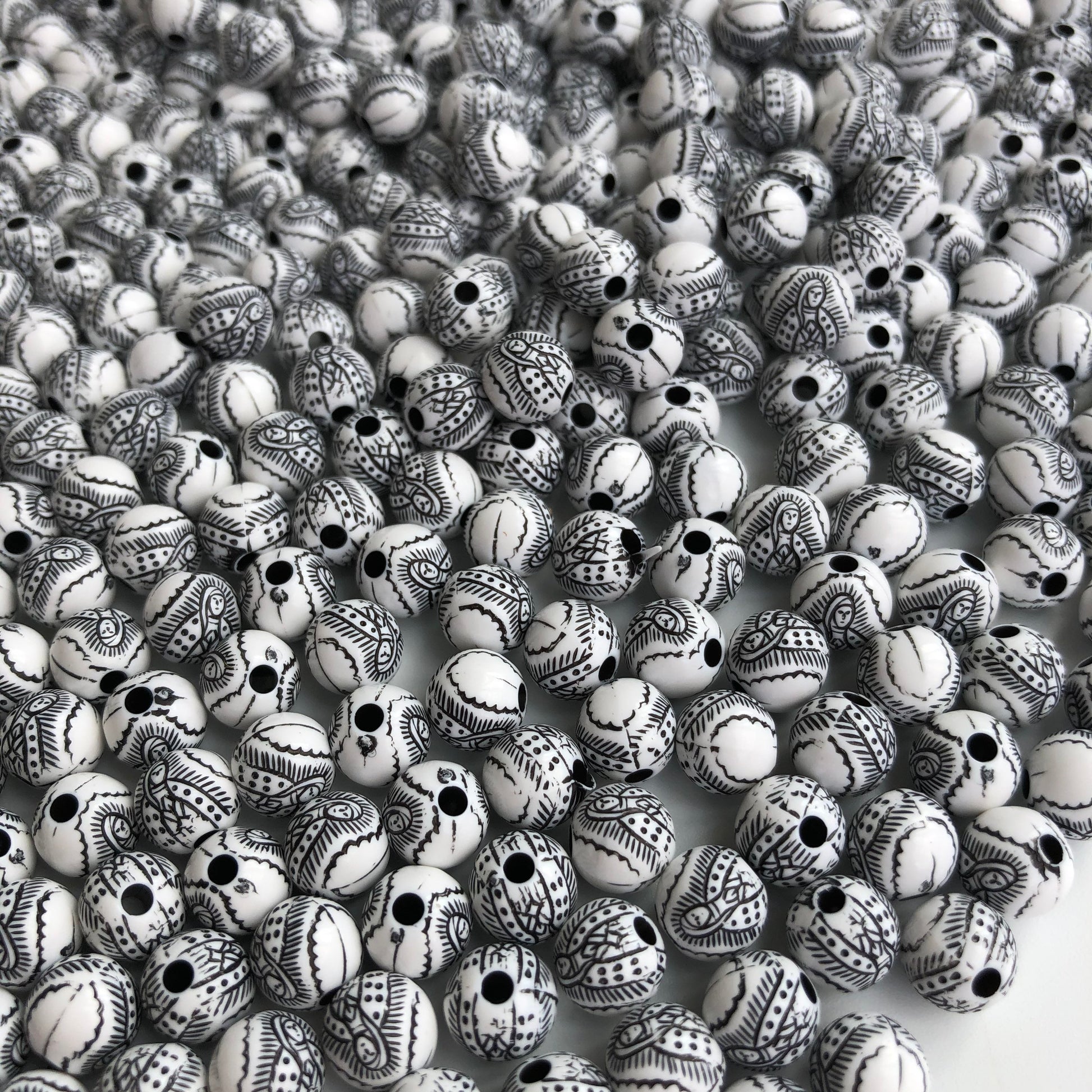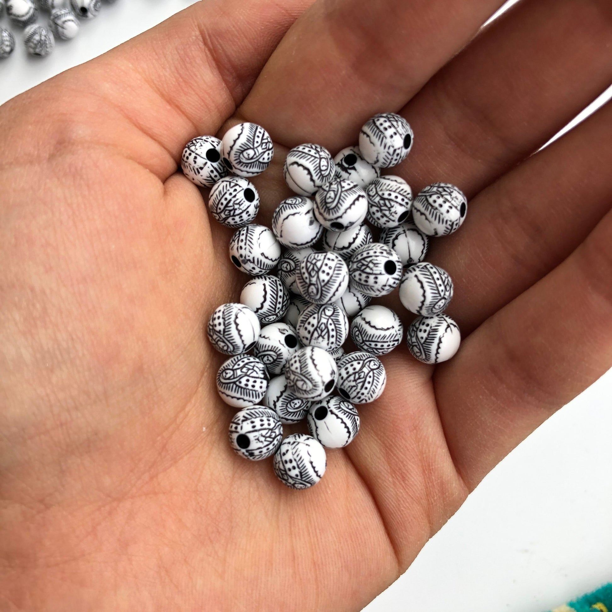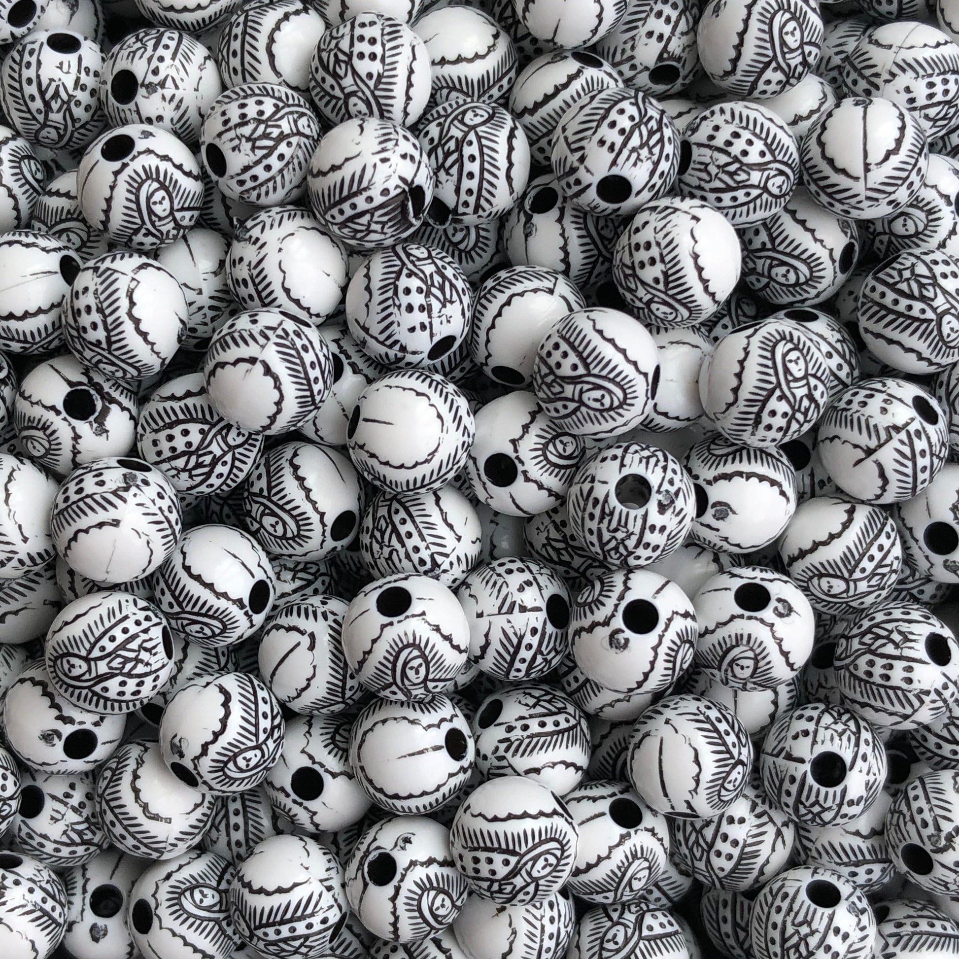8mm Virgin Mary Rosary Bead Black and White Round Acrylic Plastic Beads 75pcs