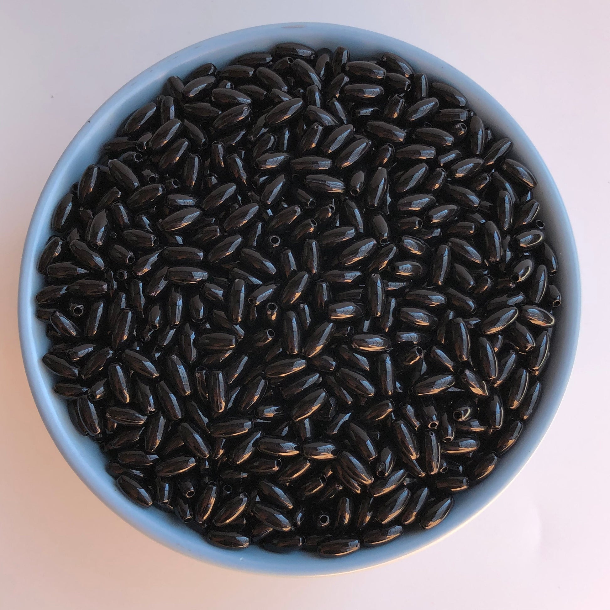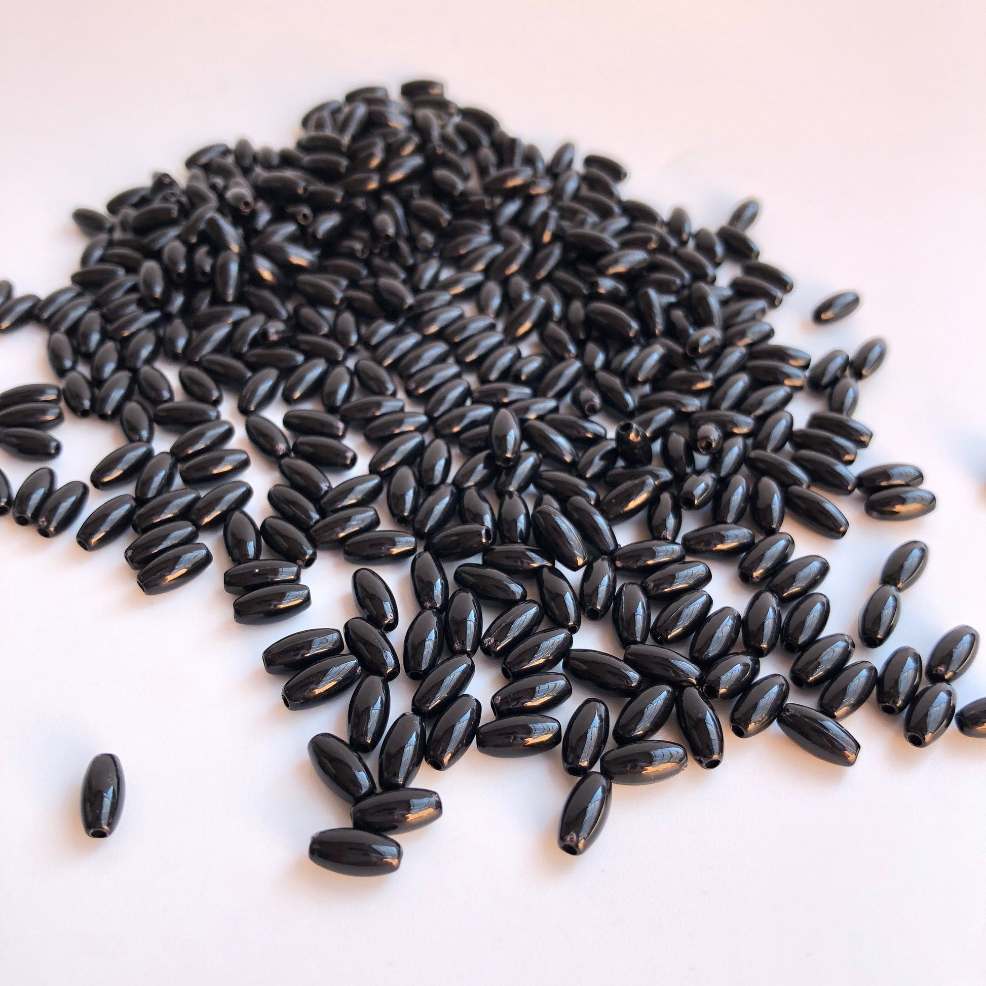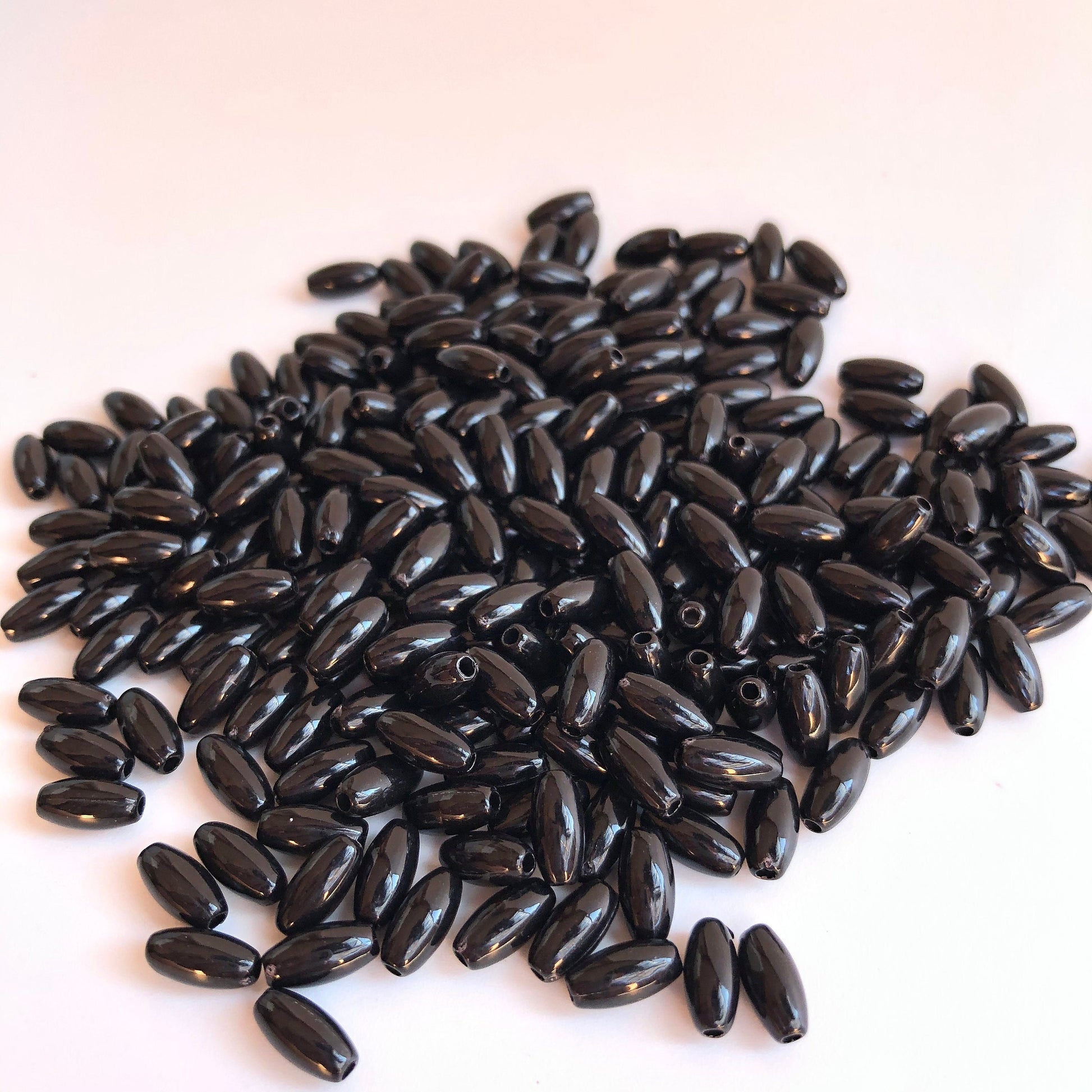 8x4mm Rice Beads Black Oval Plastic Resin Craft Bead 100 Pieces