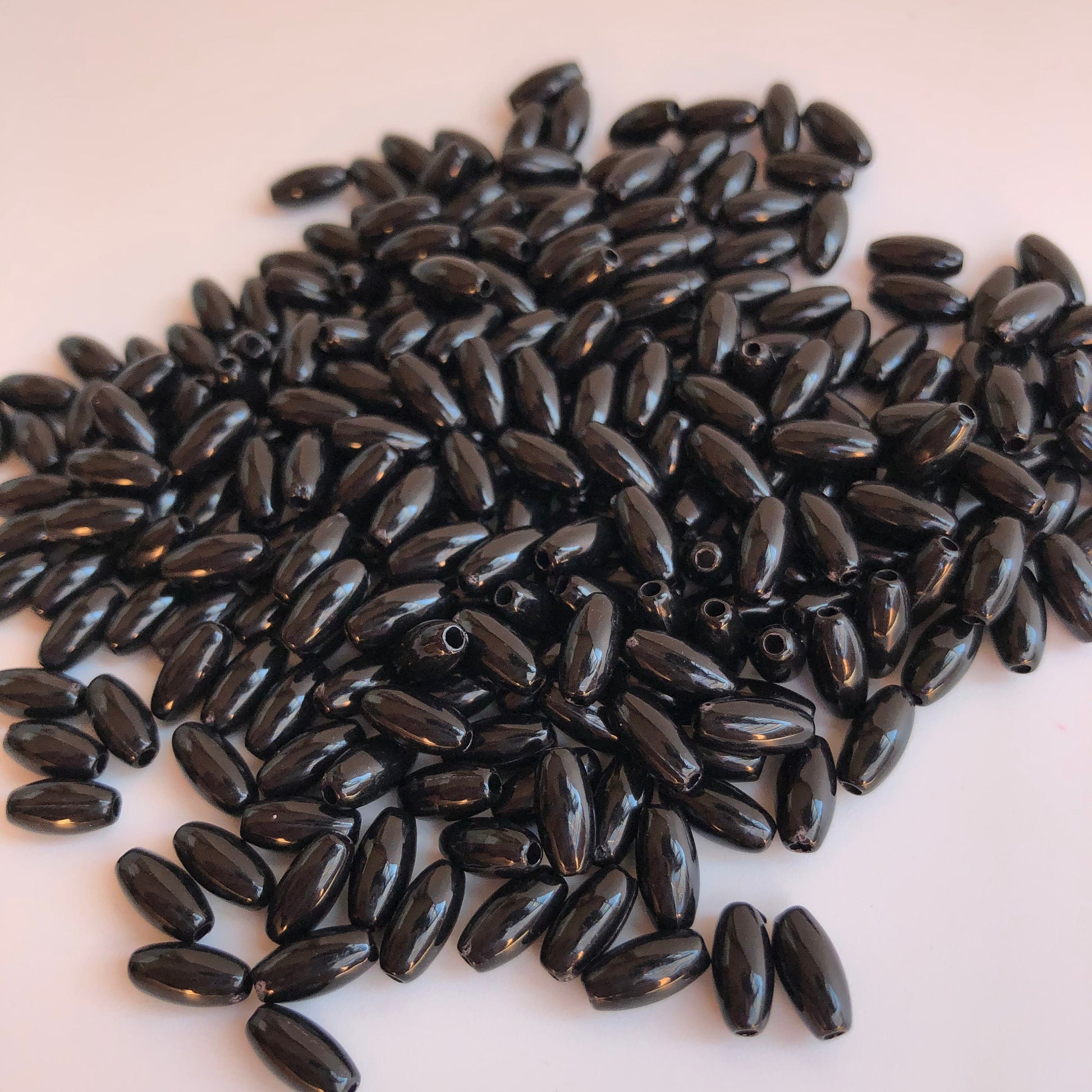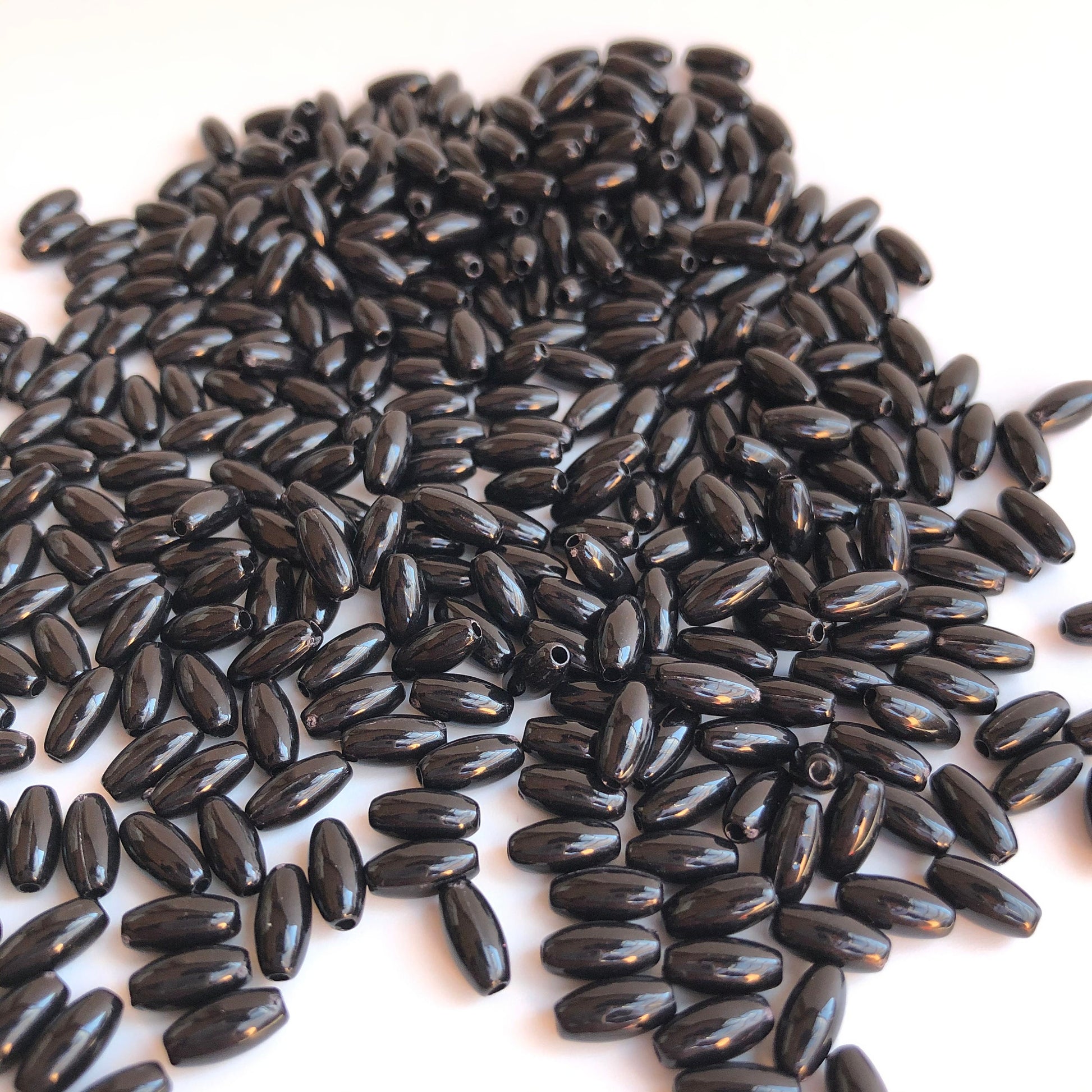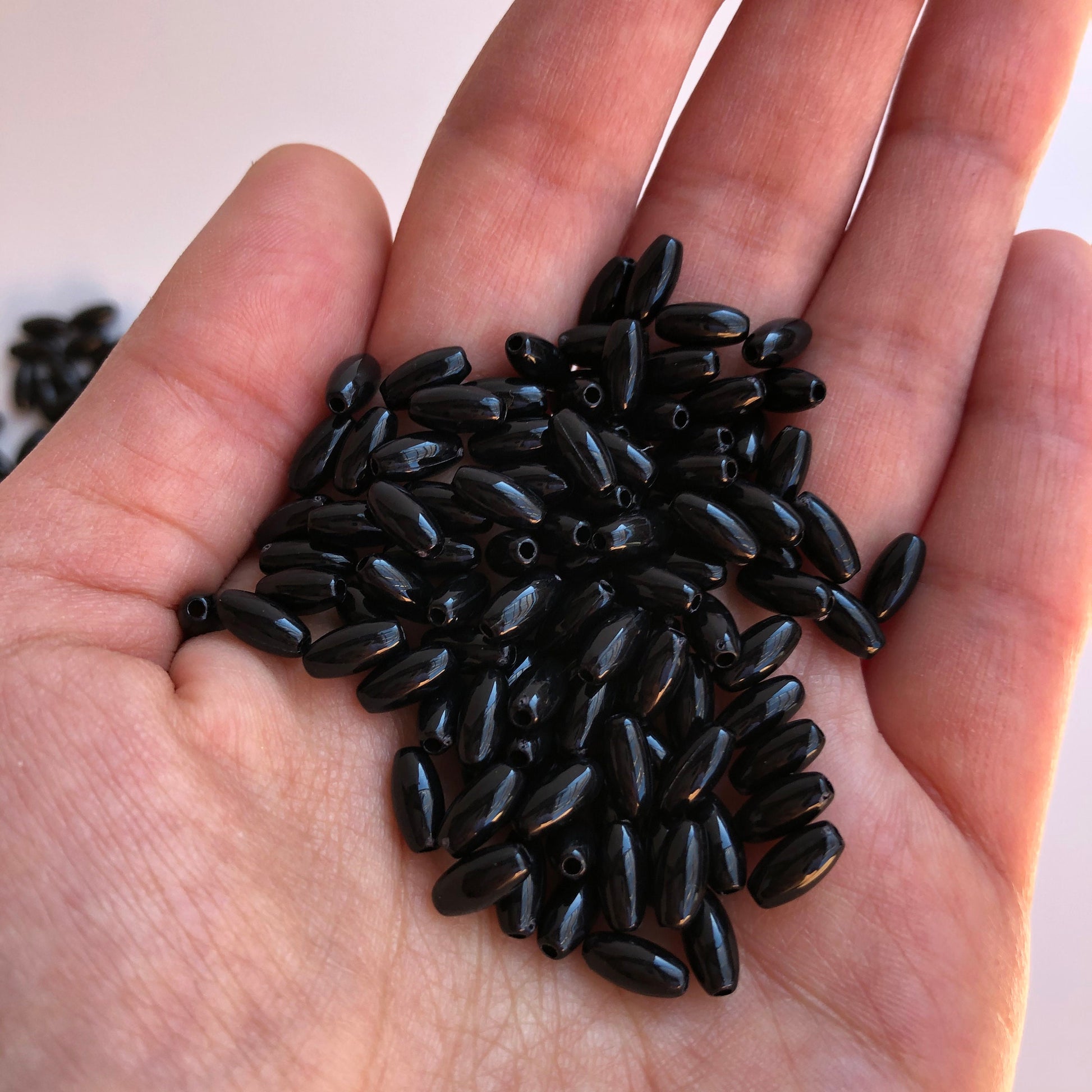 8x4mm Rice Beads Black Oval Plastic Resin Craft Bead 100 Pieces