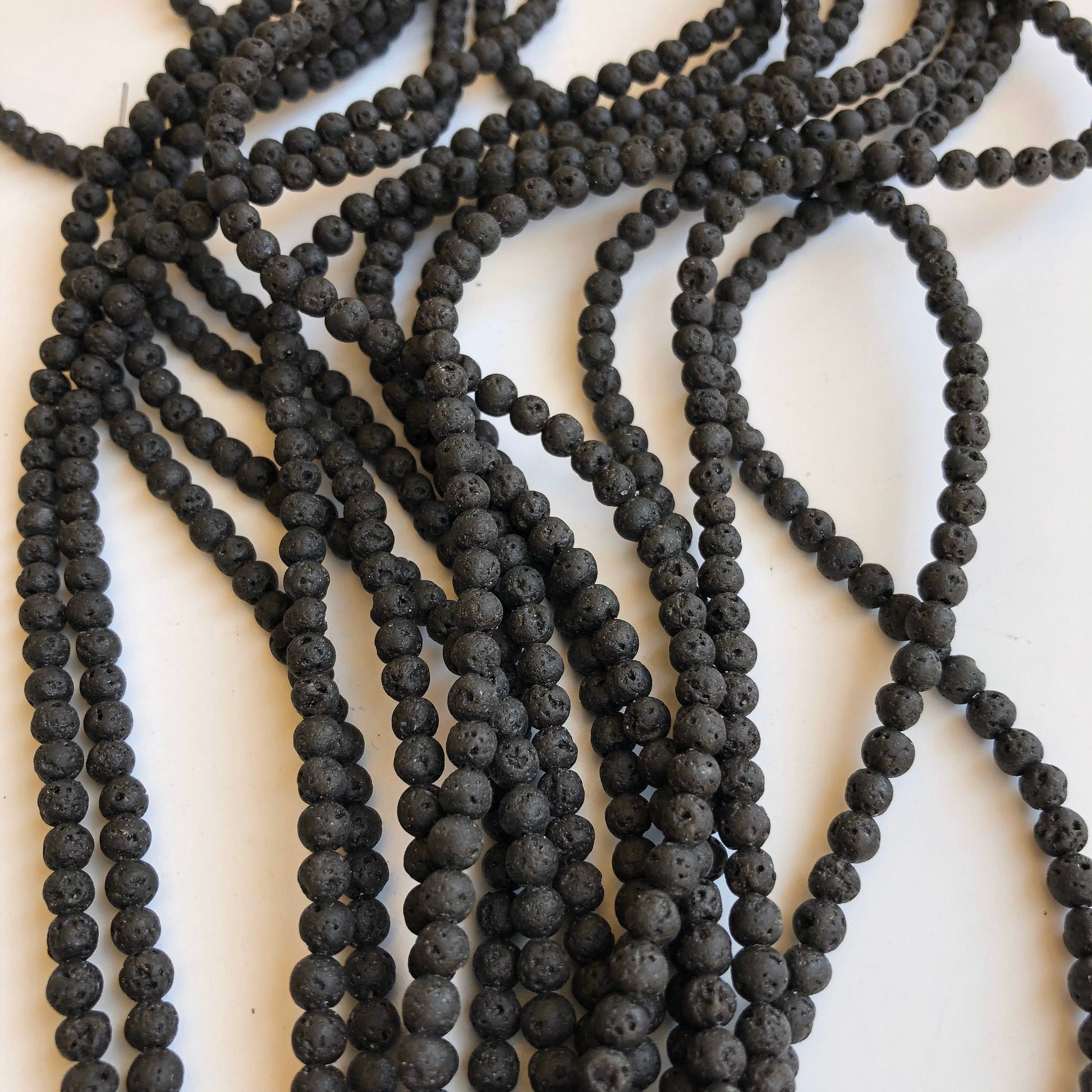 Black Lava Rock Beads 4mm Round Natural Mineral Gemstone Bead 90 Piece Strand