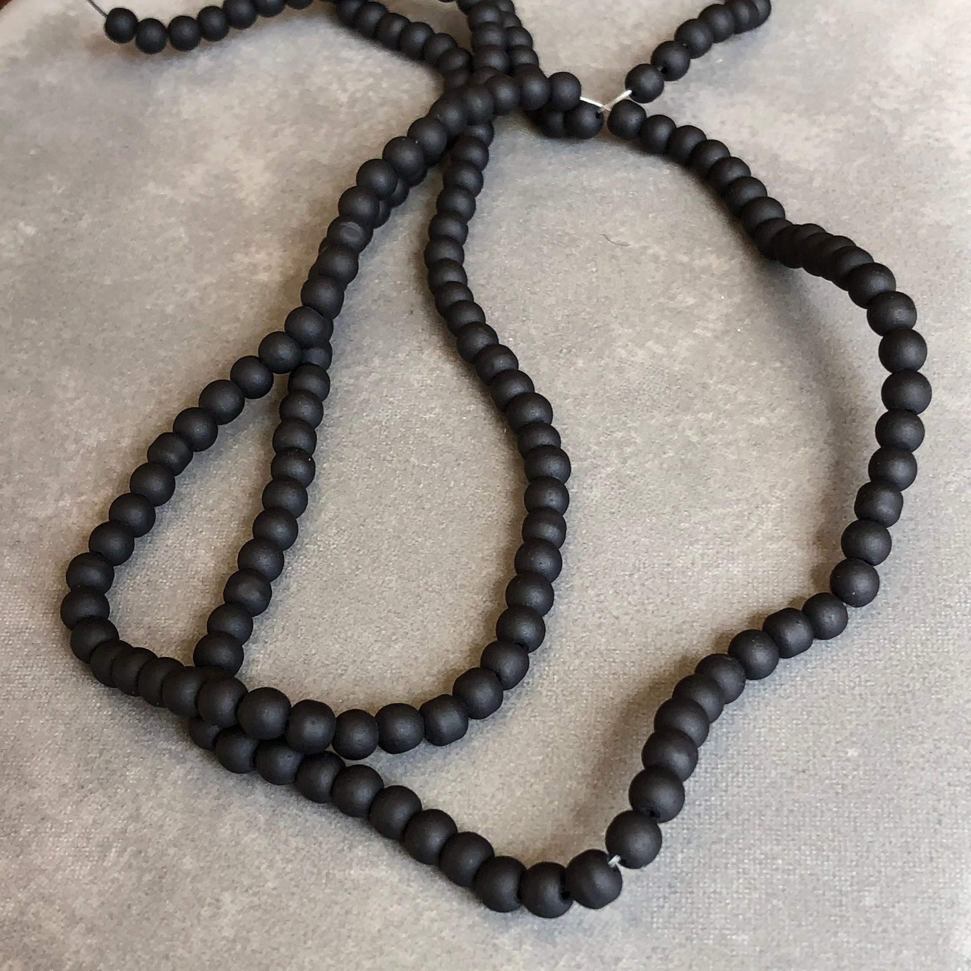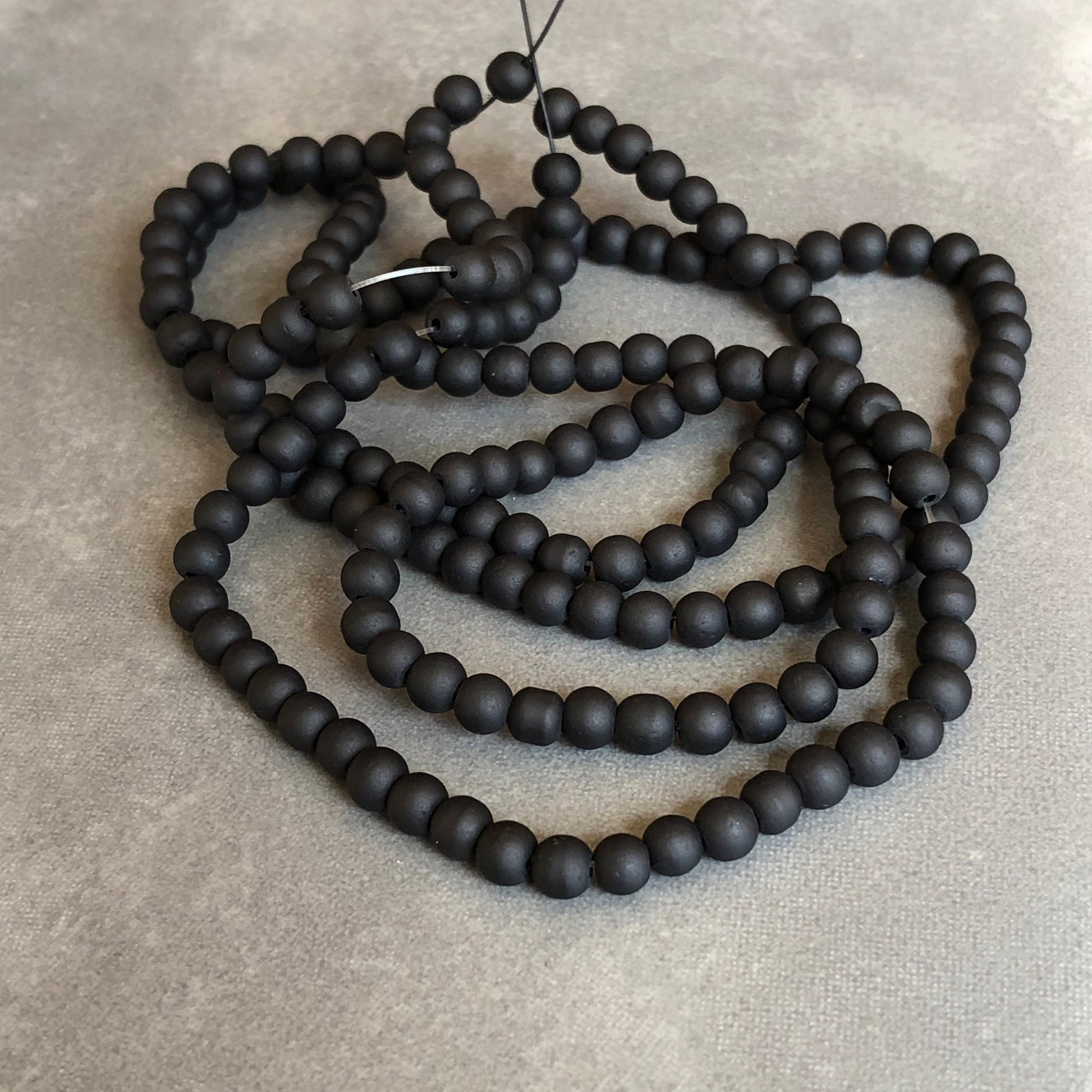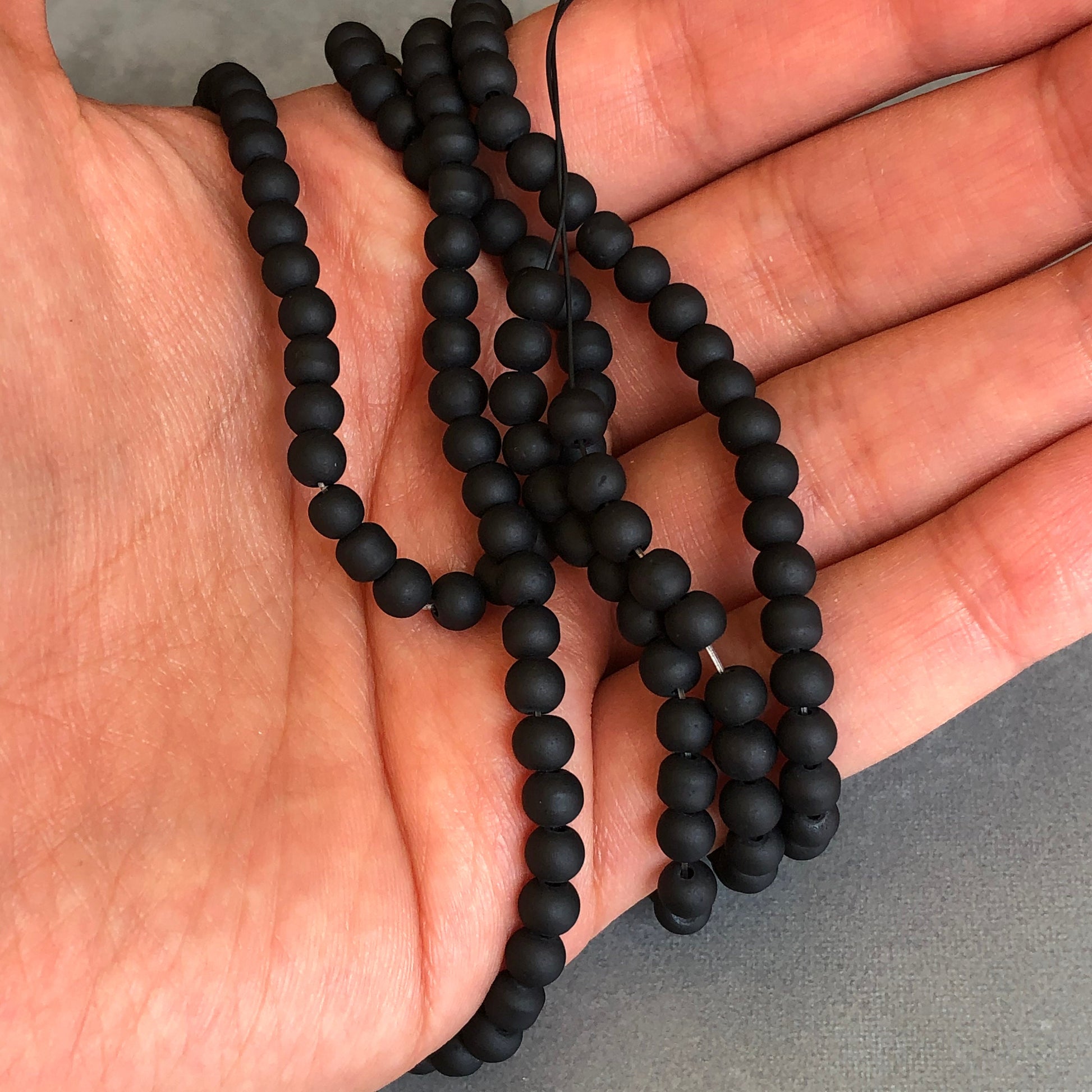 Bead Glass Black Frosted Beads 4mm for Necklace Making Round Bead for DIY Earing Craft Bead for Bracelet Making 75cm Strand