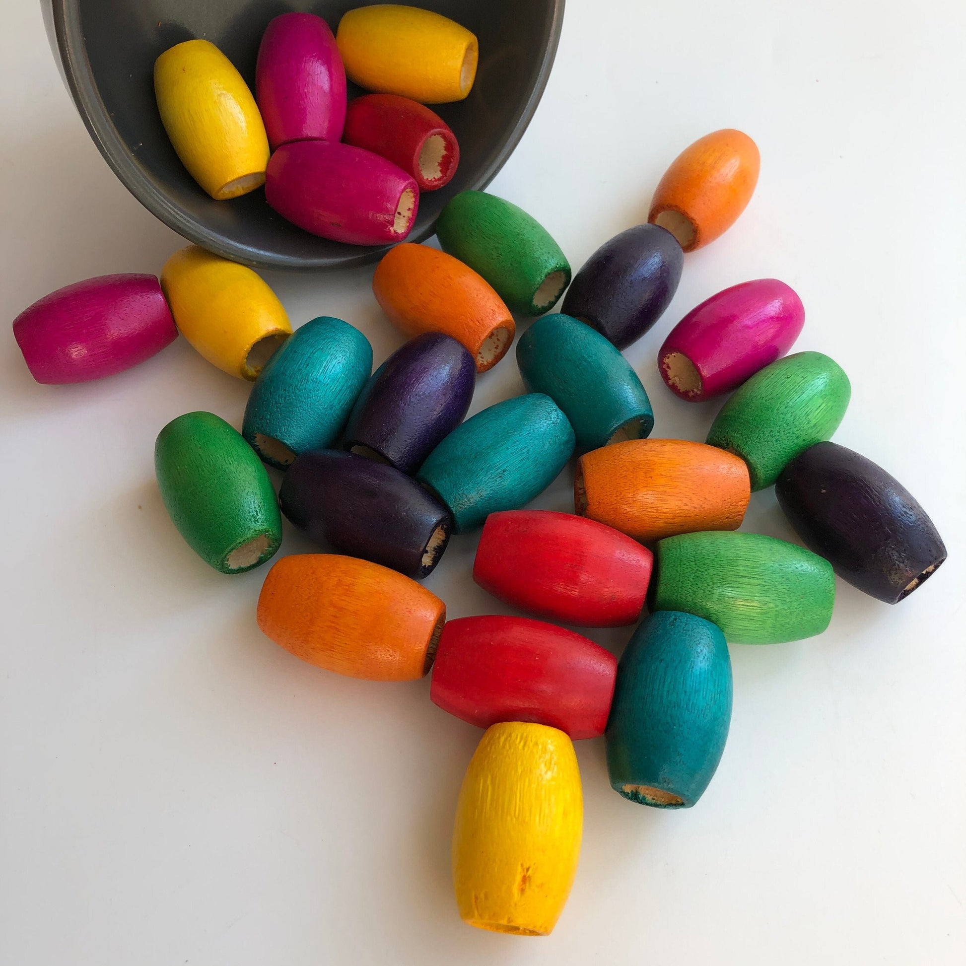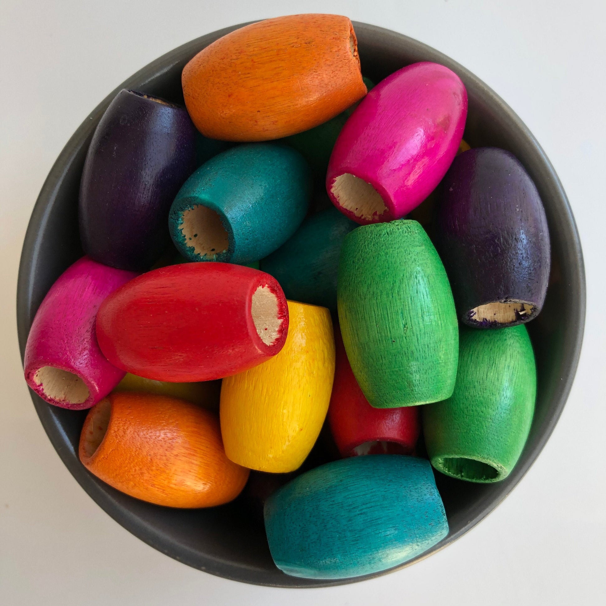 Big macrame beads, 30x20mm mixed rainbow colour large 10mm hole wood beads, big hole beads, Chunky oval drum shape macrame beads