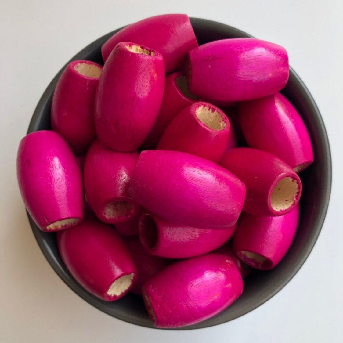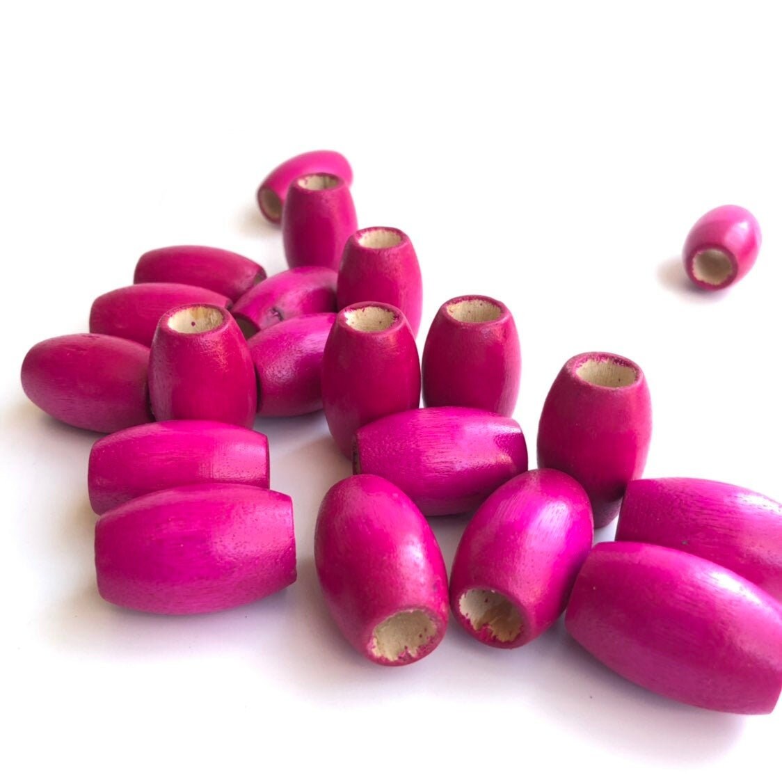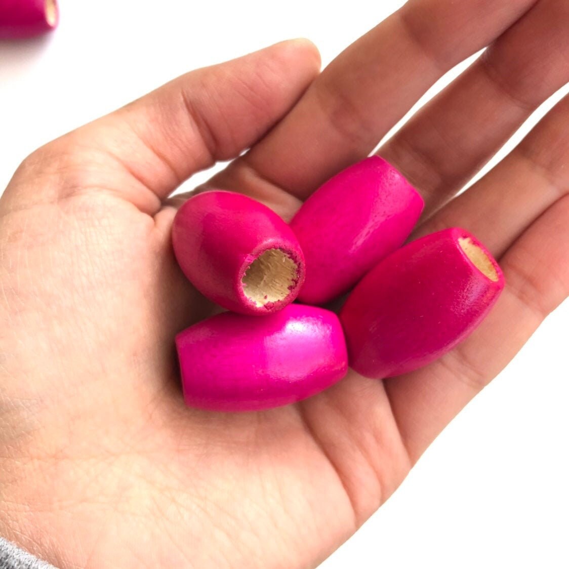 Big macrame beads, 30x20mm pink large 10mm hole wood beads, big hole beads, oval drum shape chunky macrame beads