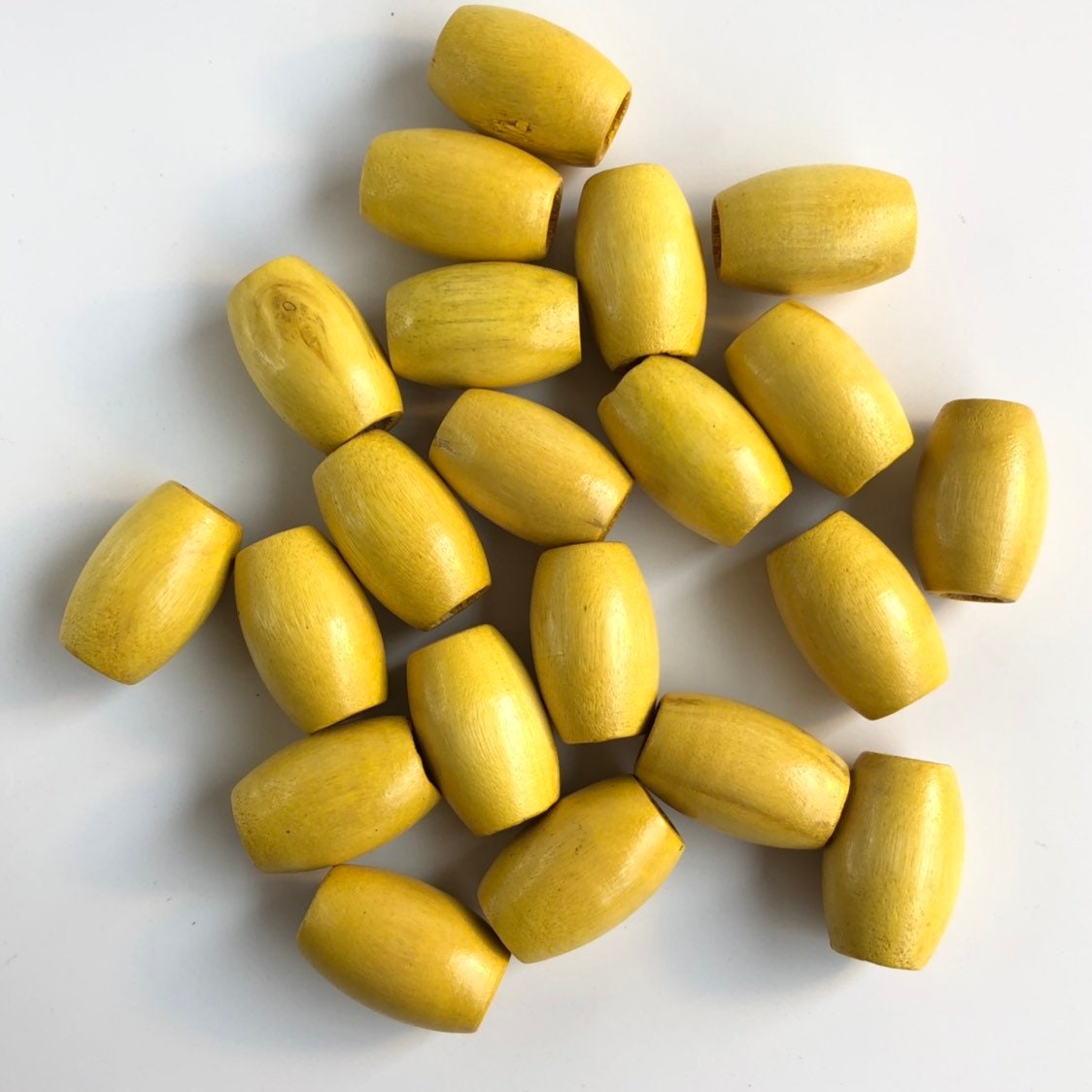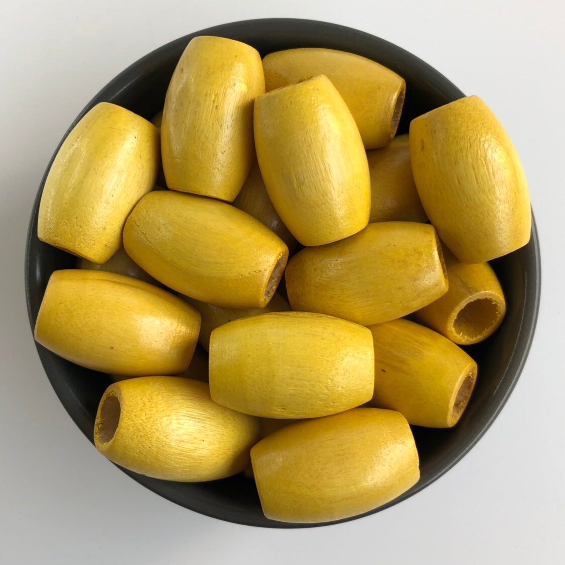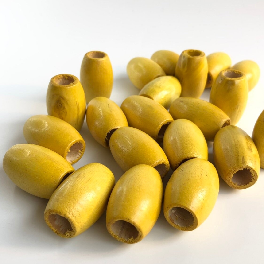 Big macrame beads, 30x20mm yellow large 10mm hole wood beads, big hole beads, oval drum shape macrame beads