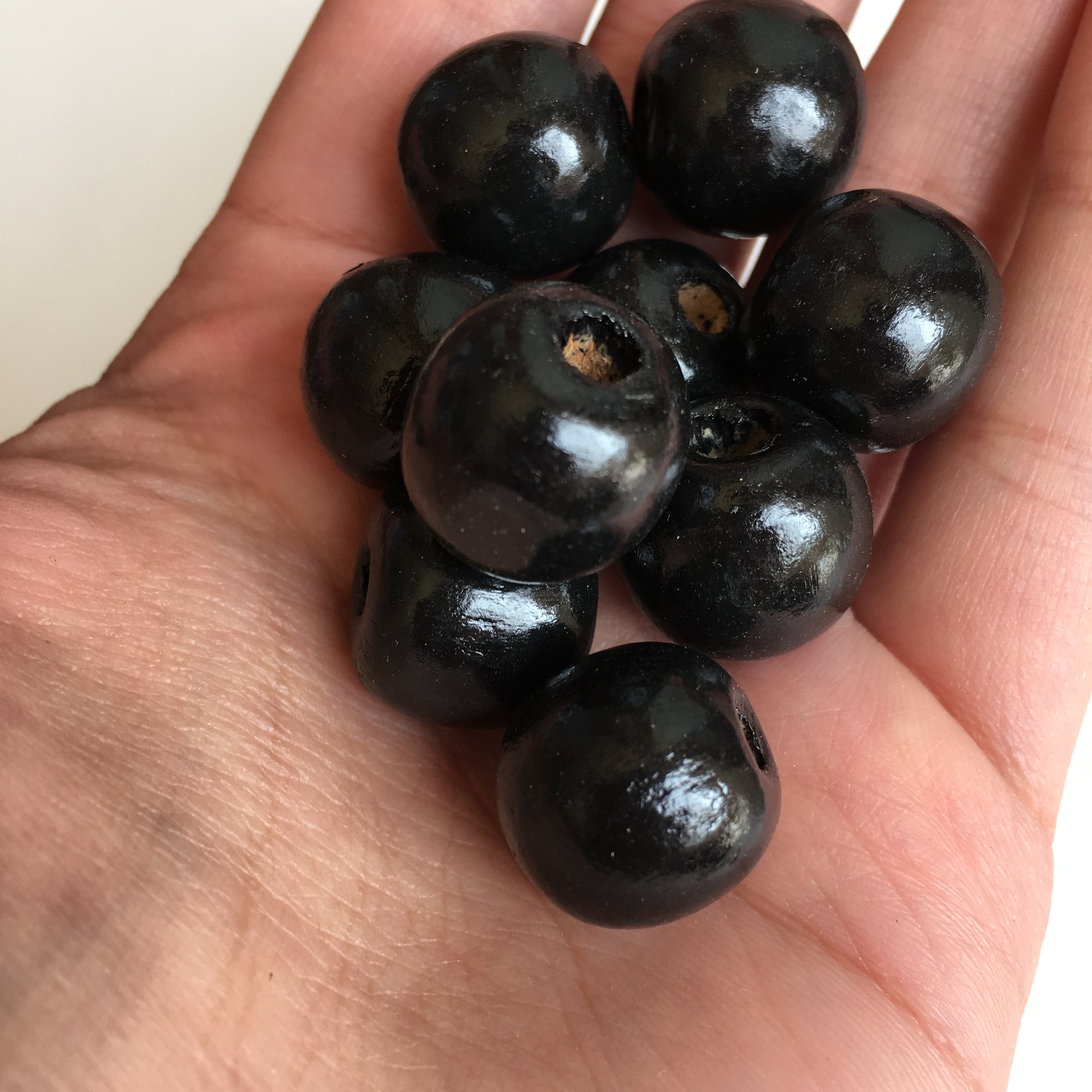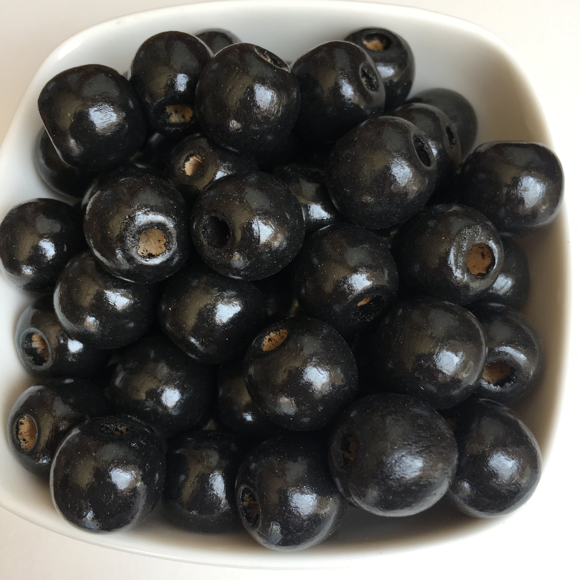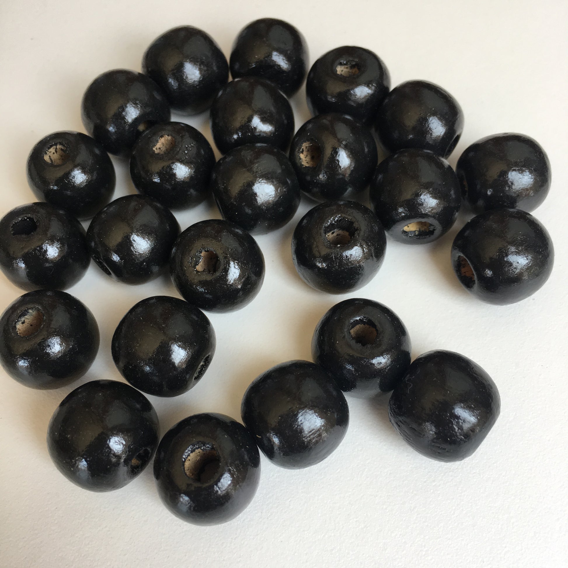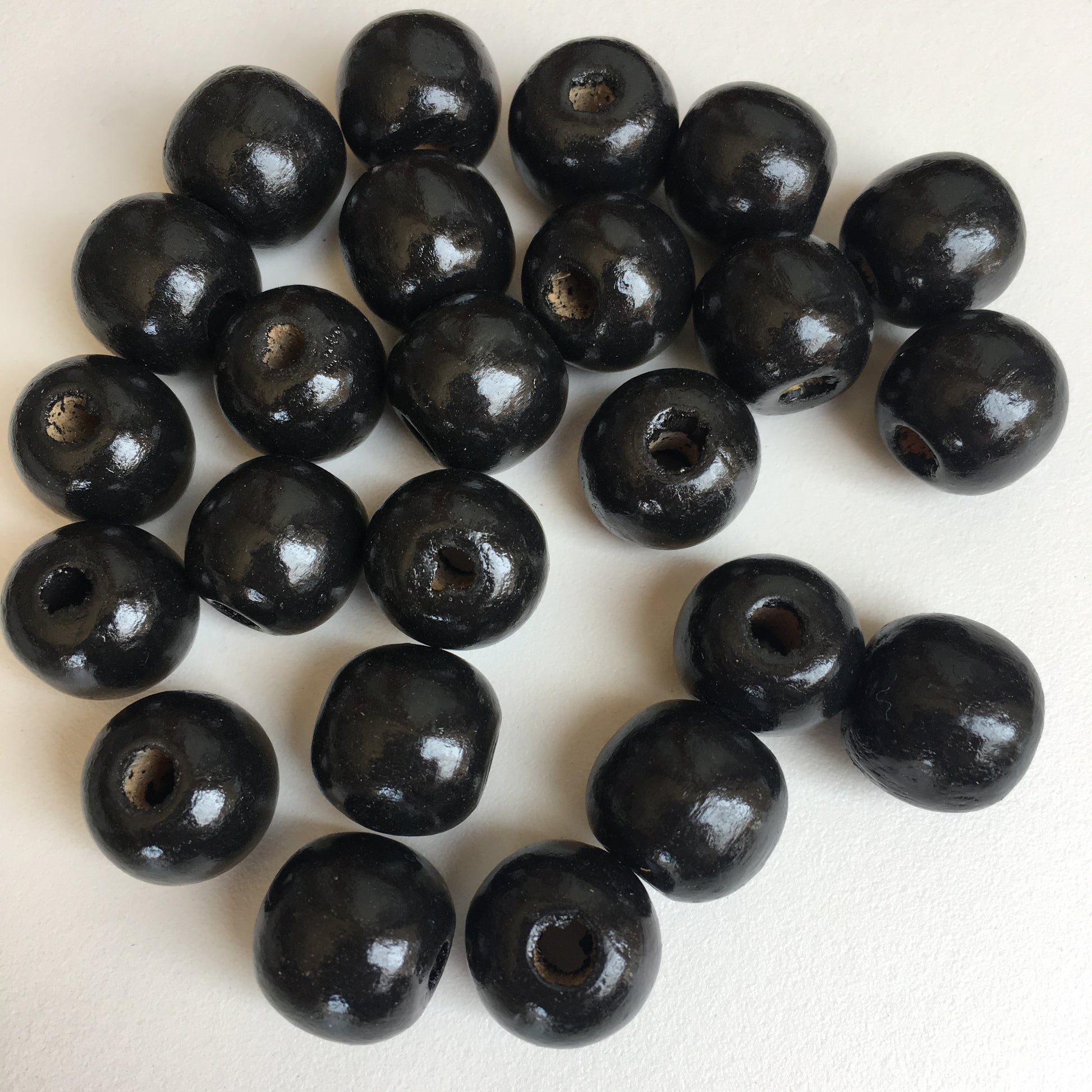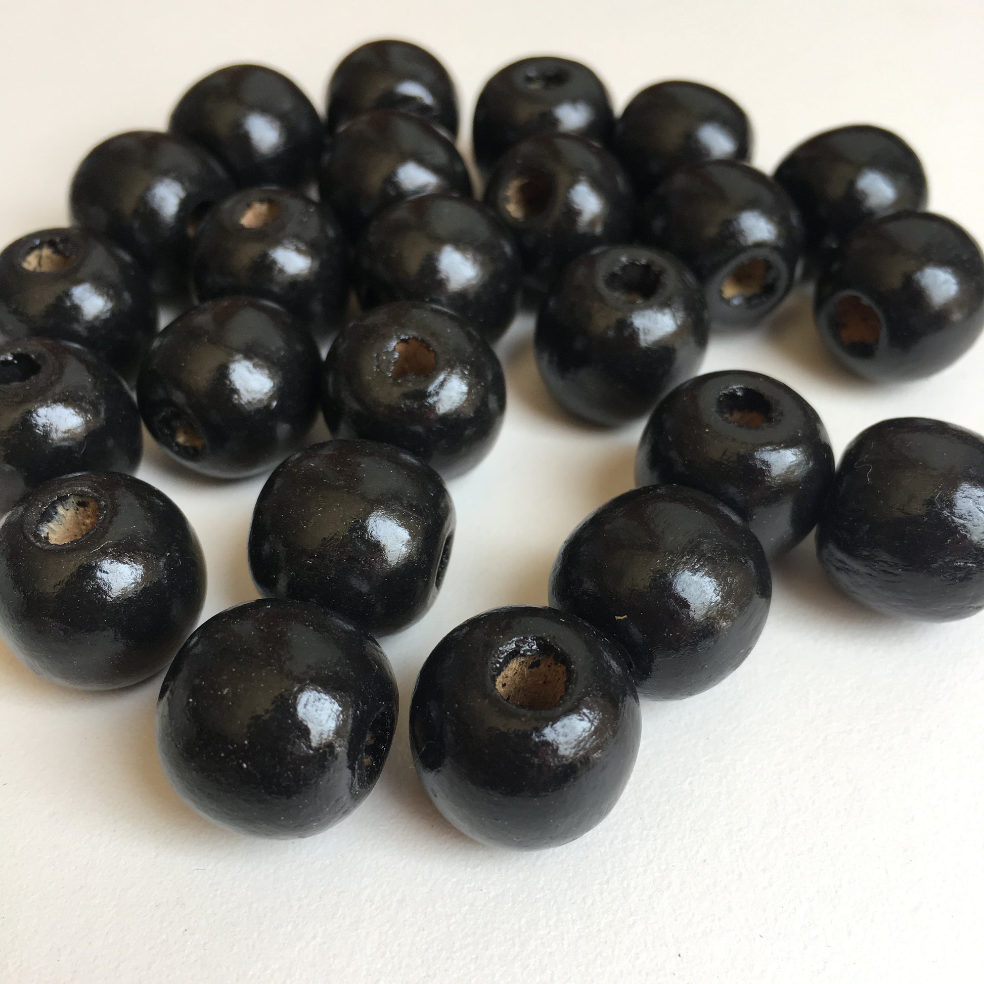 Black Macrame Wood Bead 16mm Round Chunky Wooden Craft Bead 25 Pieces