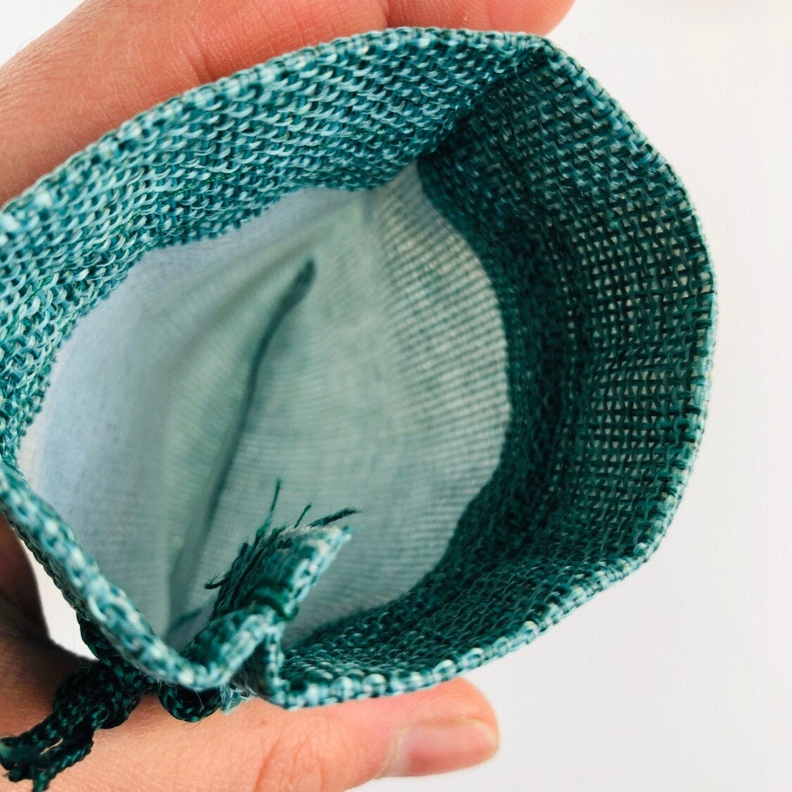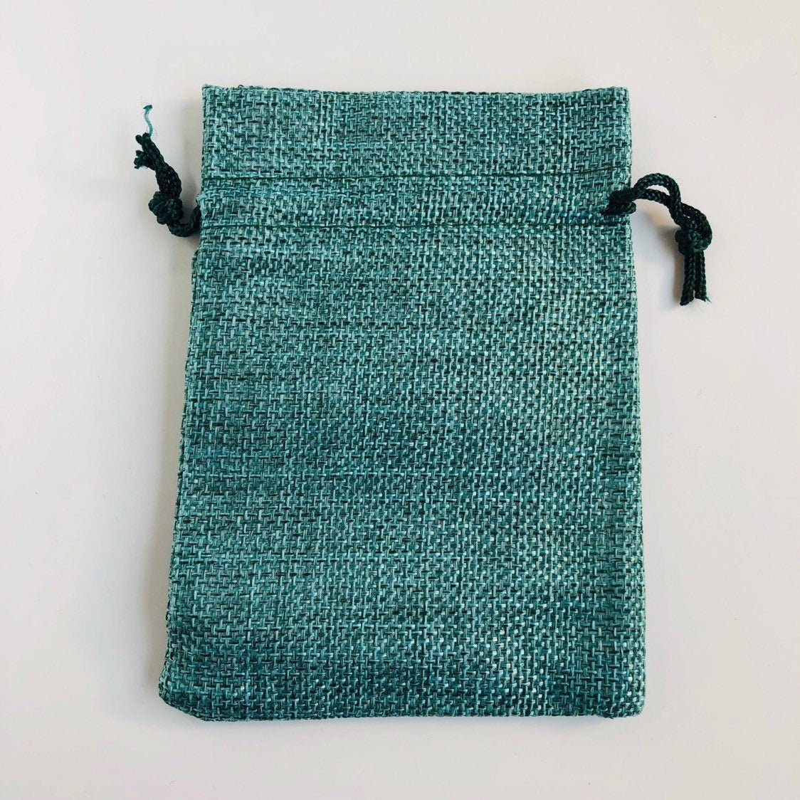Blue Draw String Pouch, Gift Bag Jute Linen Fabric 13x9cm, 5pcs