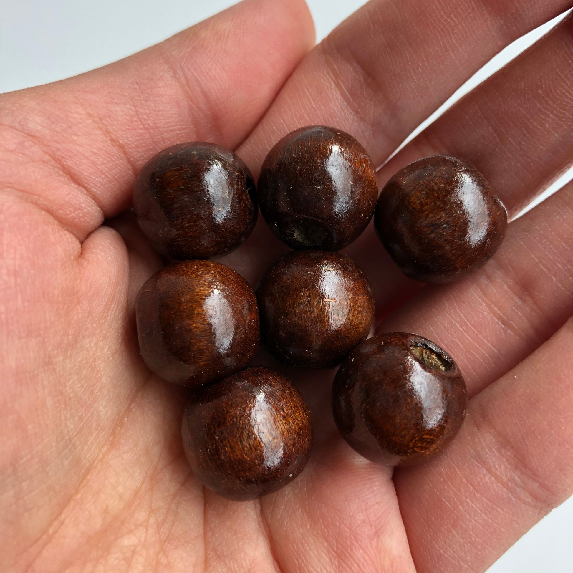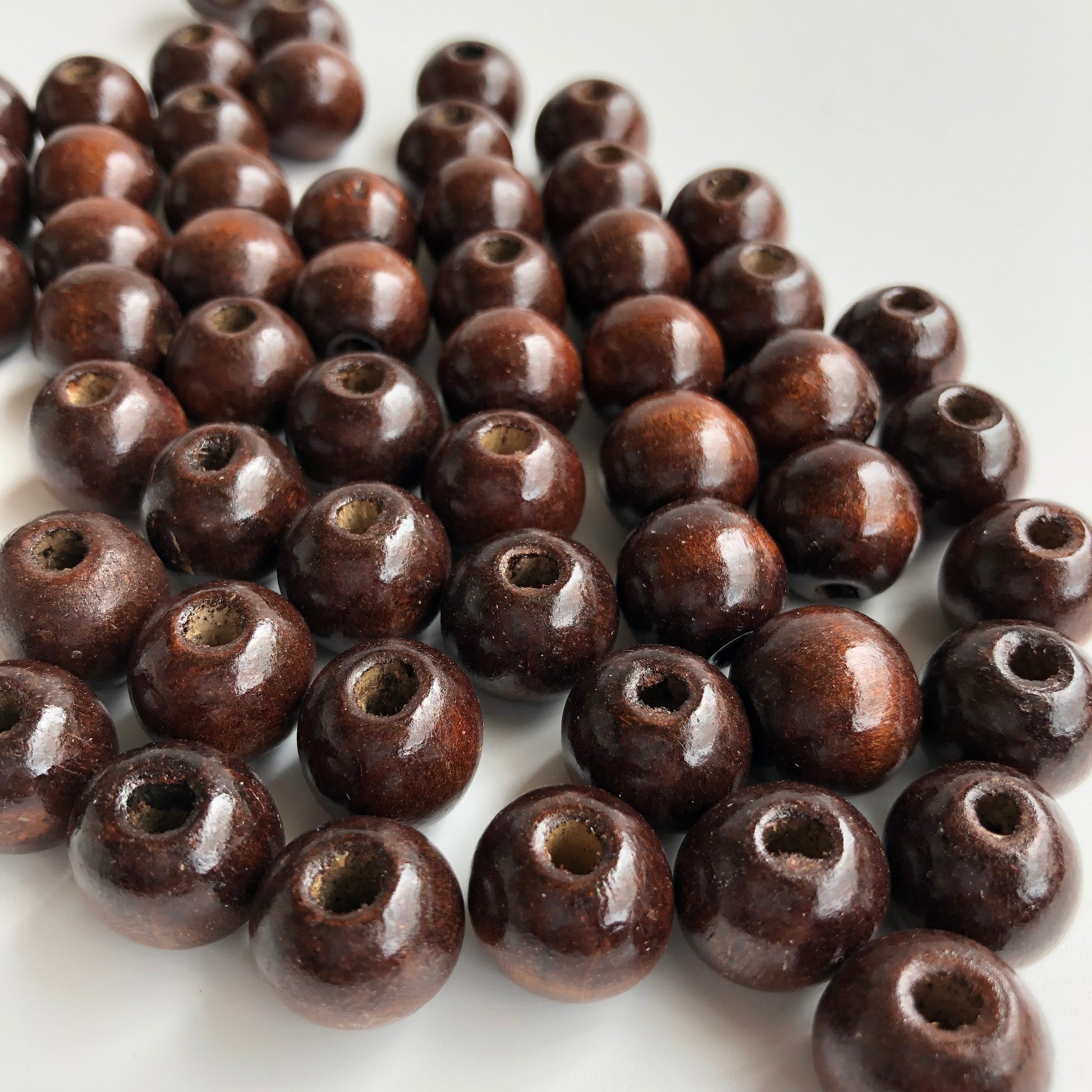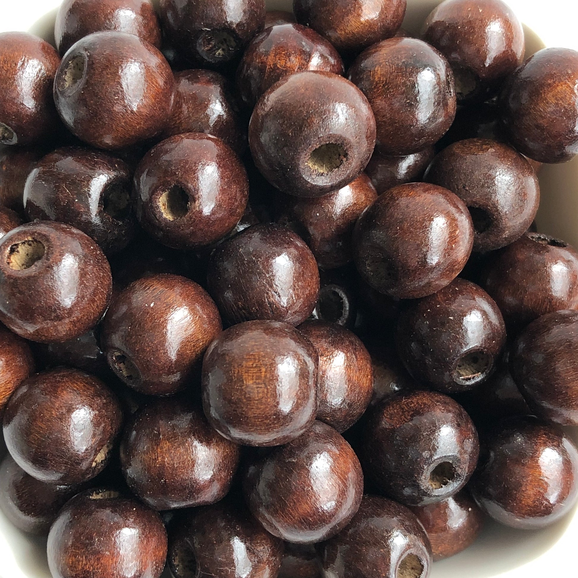 Brown wood beads with a 4mm threading hole, great to use in macrame projects and chucky jewellery crafts.