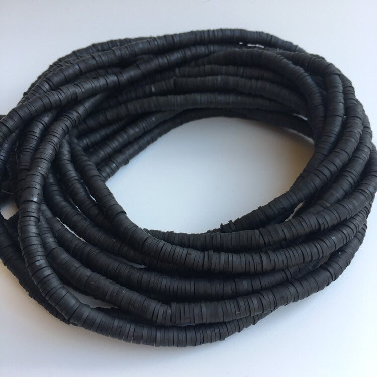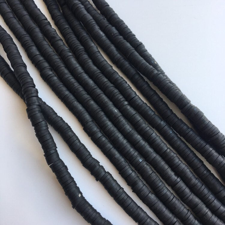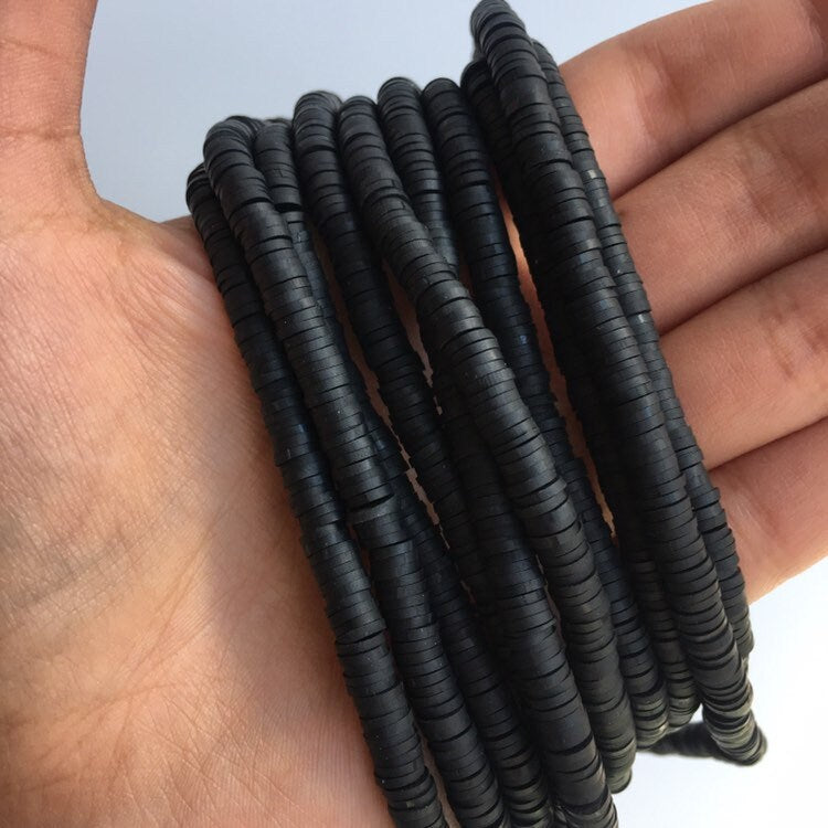 Clay Polymer Beads 6mm Black Disc Boho Jewellery Making Katsuki Beads 45cm Strand