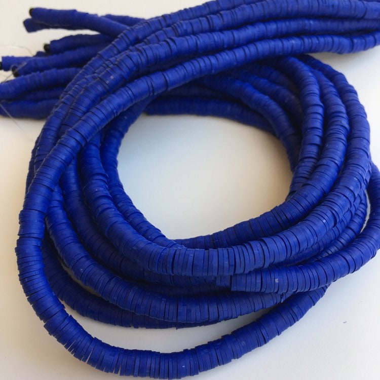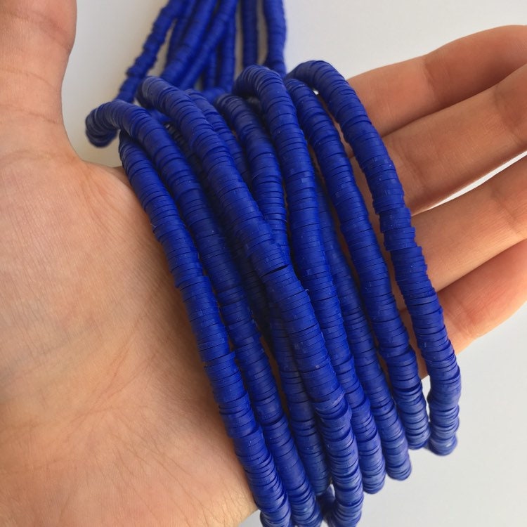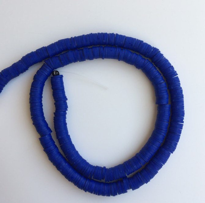 Electric Blue Polymer Clay Beads 6mm Round Disc Katsuki Jelly Bead 45cm Strand