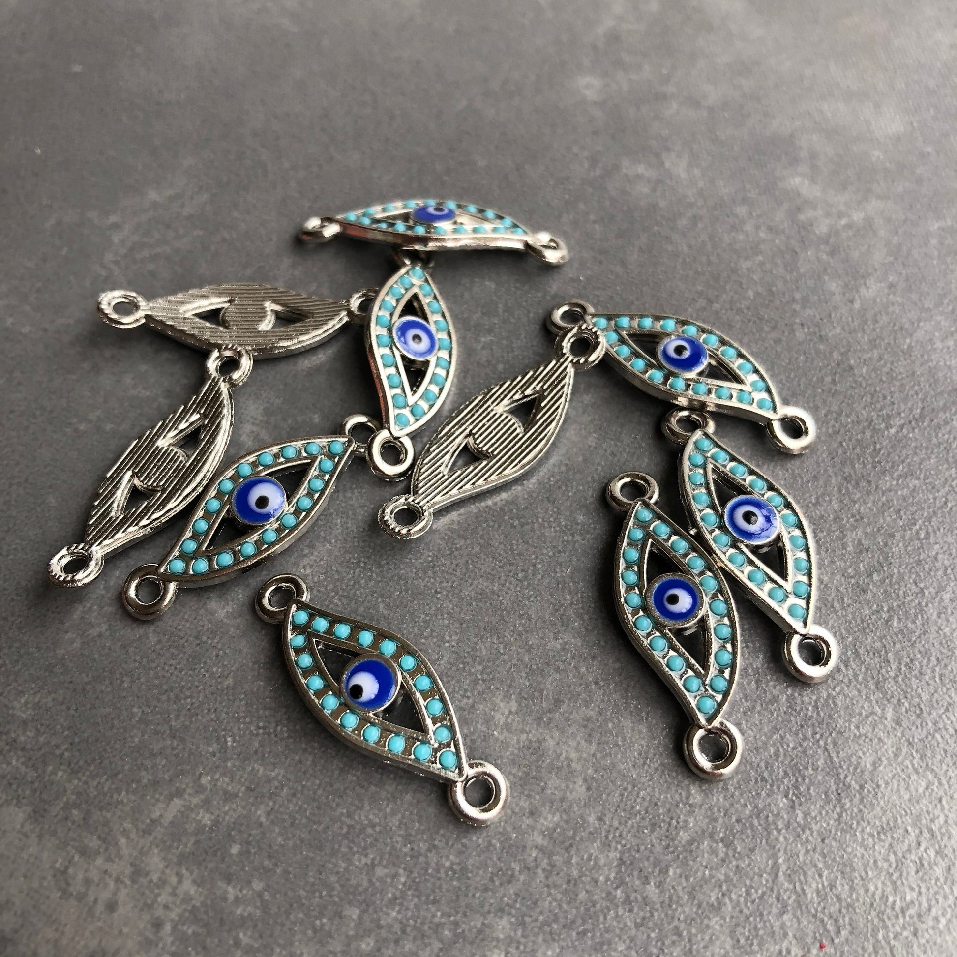 Evil Eye Link Charms 27x9mm Platinum Silver Metal Connector Blue Protection Connecting Charm