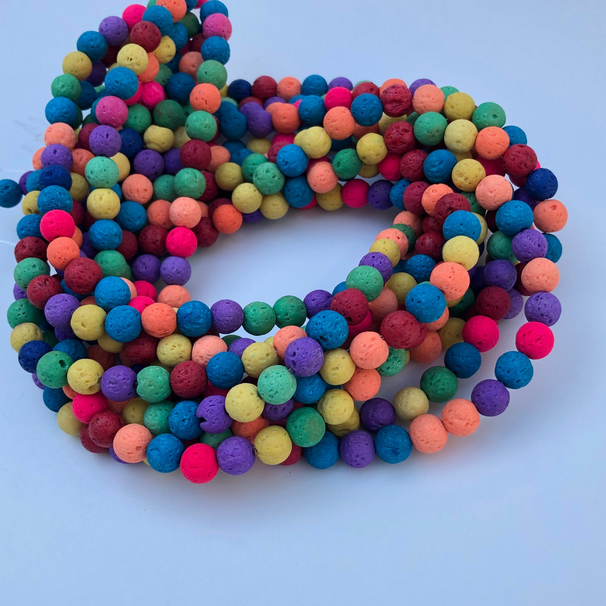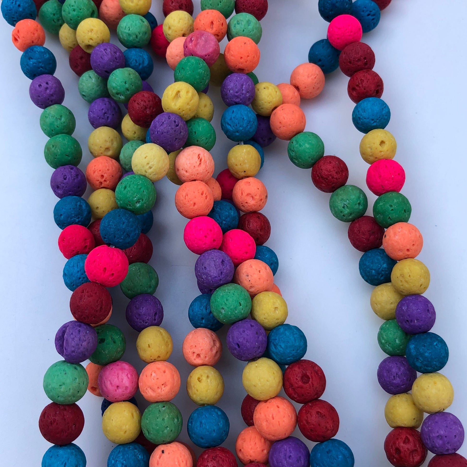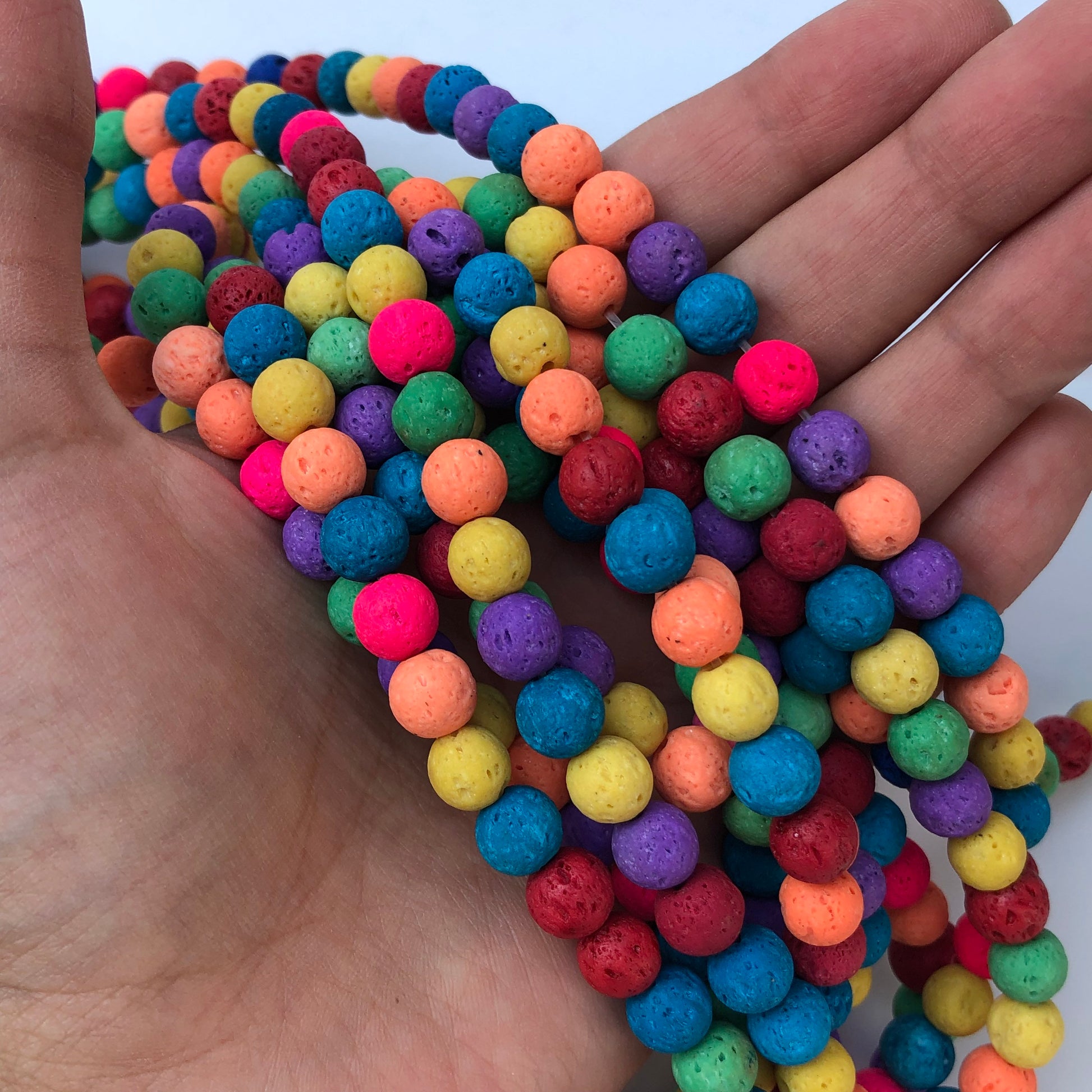 Mixed Colour Lava Rock Beads 8mm Round Matte Mineral Multi Rainbow Colours Bead 47pcs per 37cm Strand