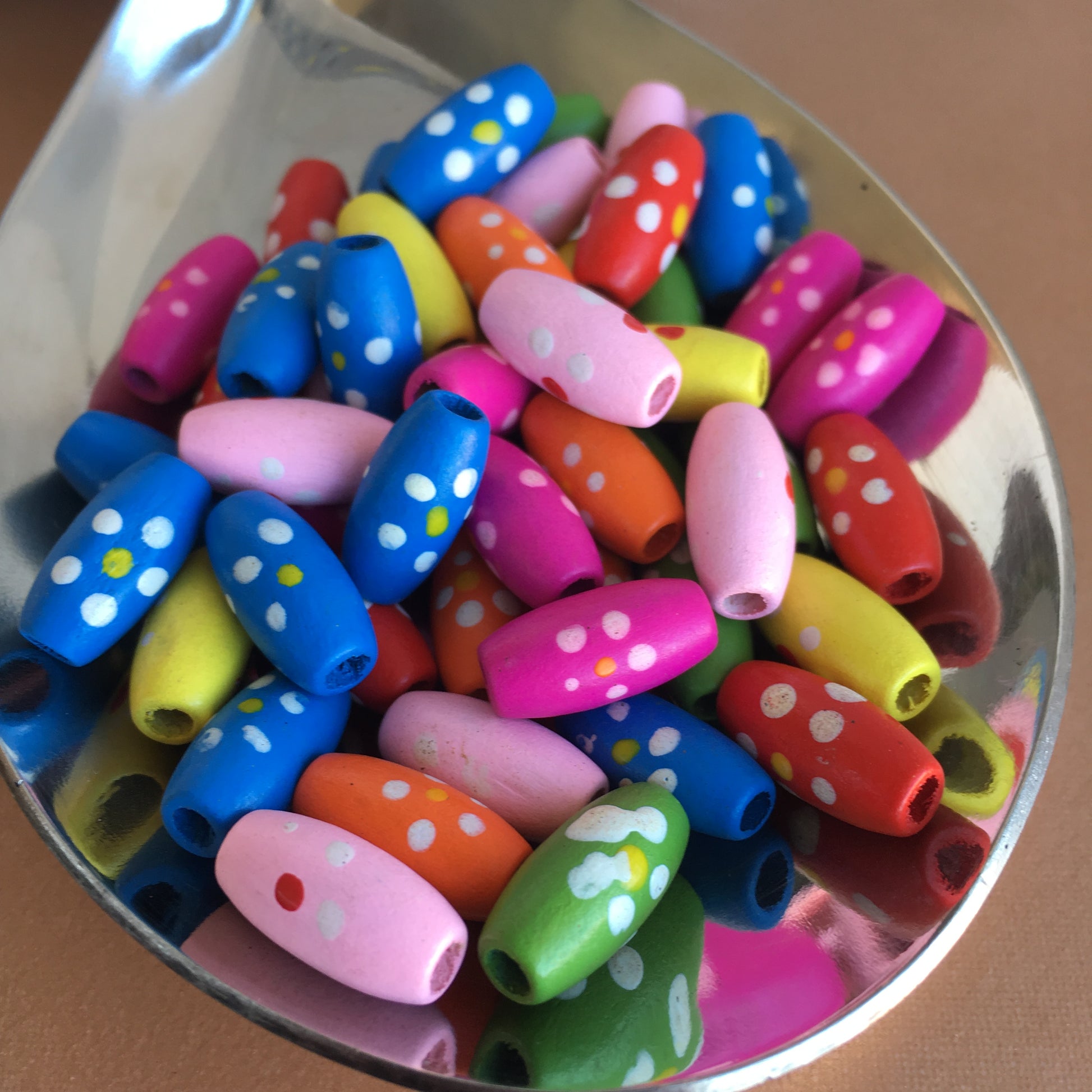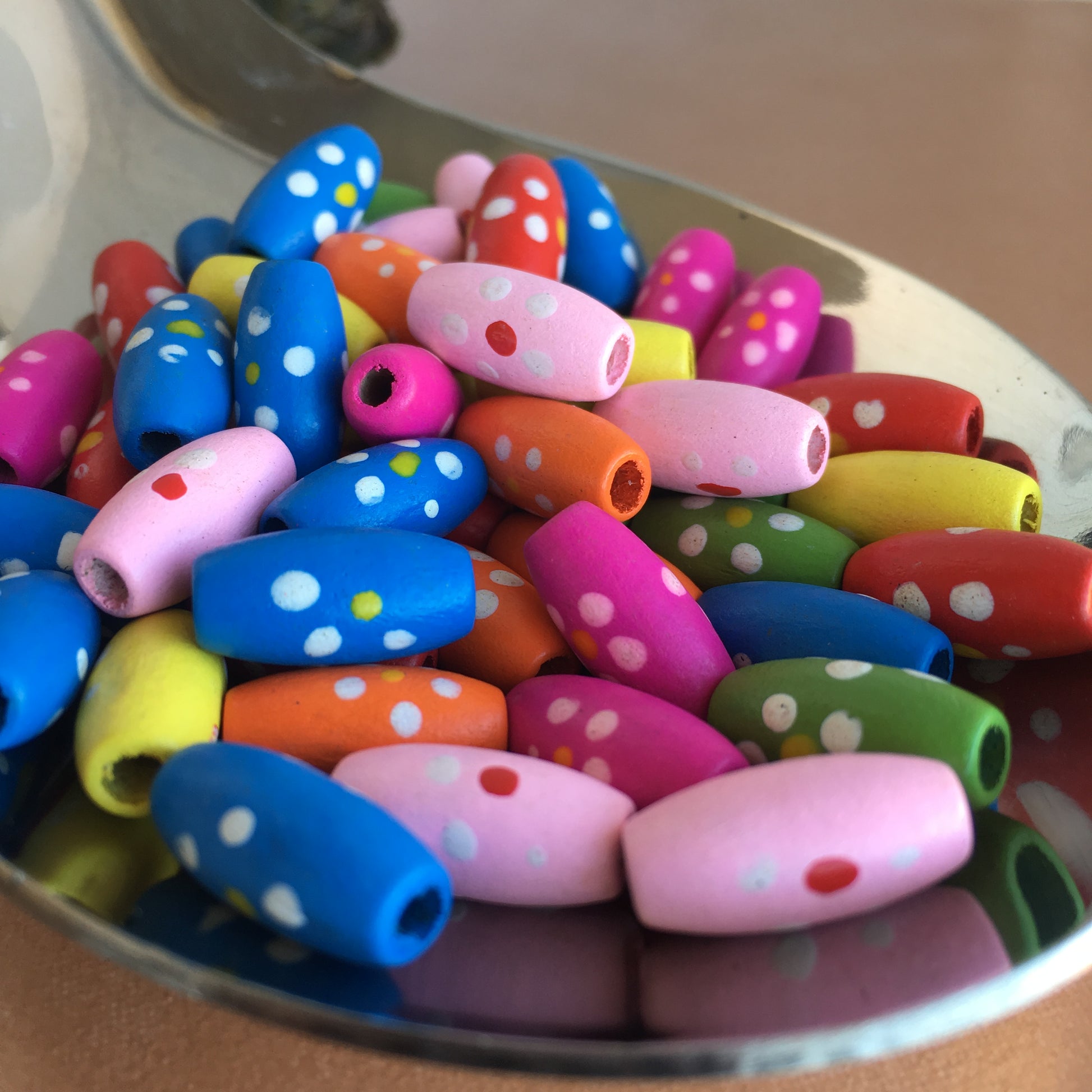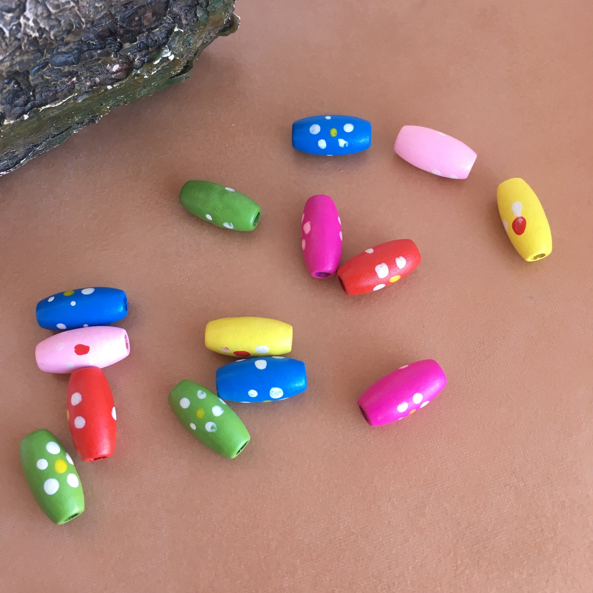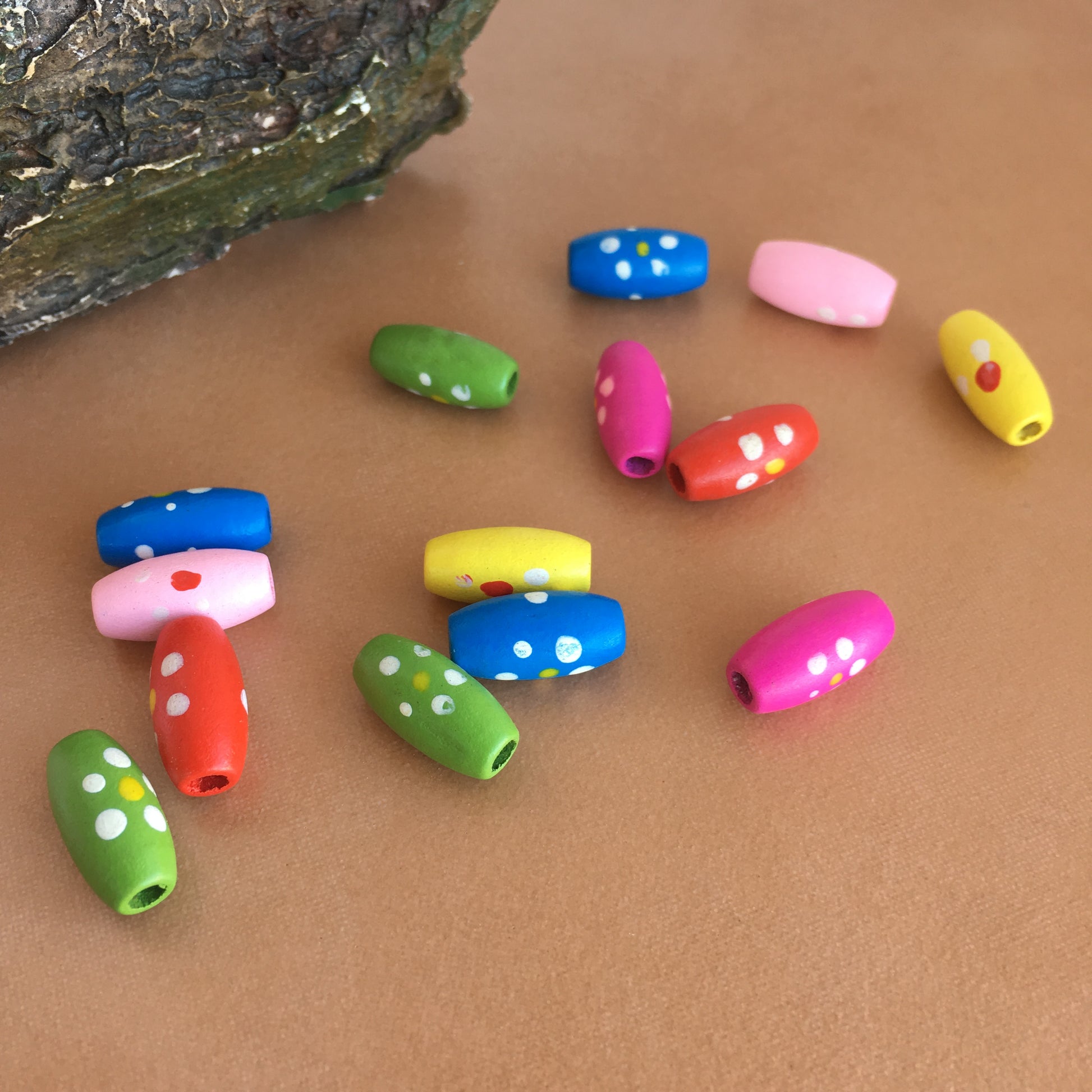 Mixed Floral Wooden Beads 15x7mm Oval Rice Wood Craft Bead 50 Pieces