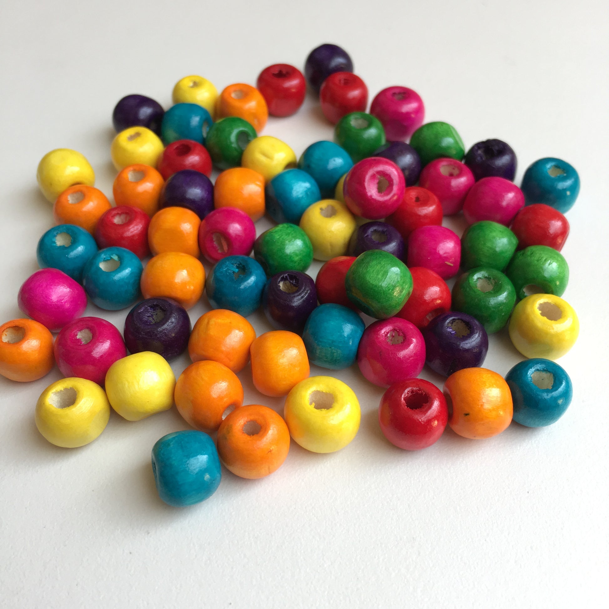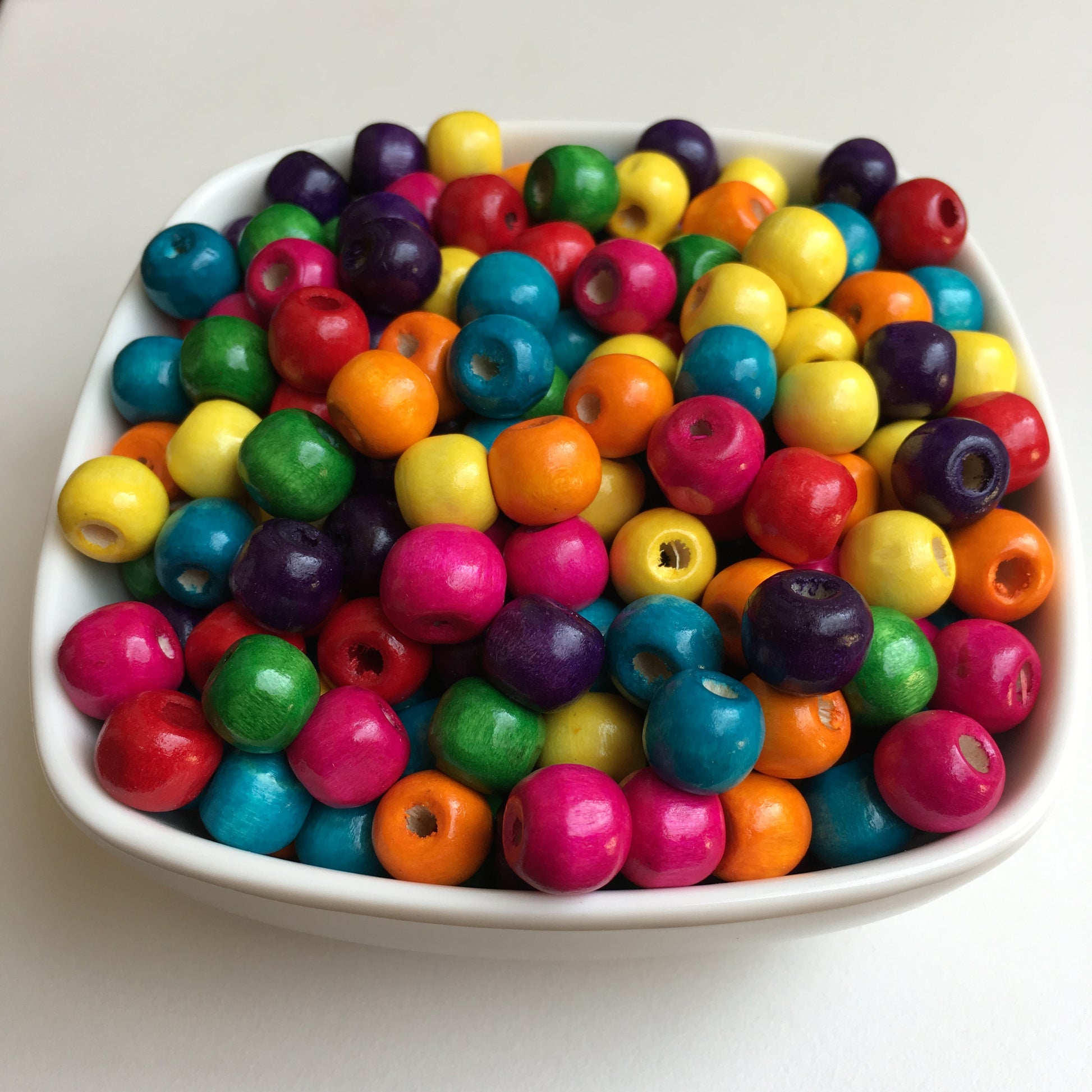 Mixed Rainbow Wood Beads 10mm Round DIY Necklace Bracelet Wooden Bead 100 Pieces