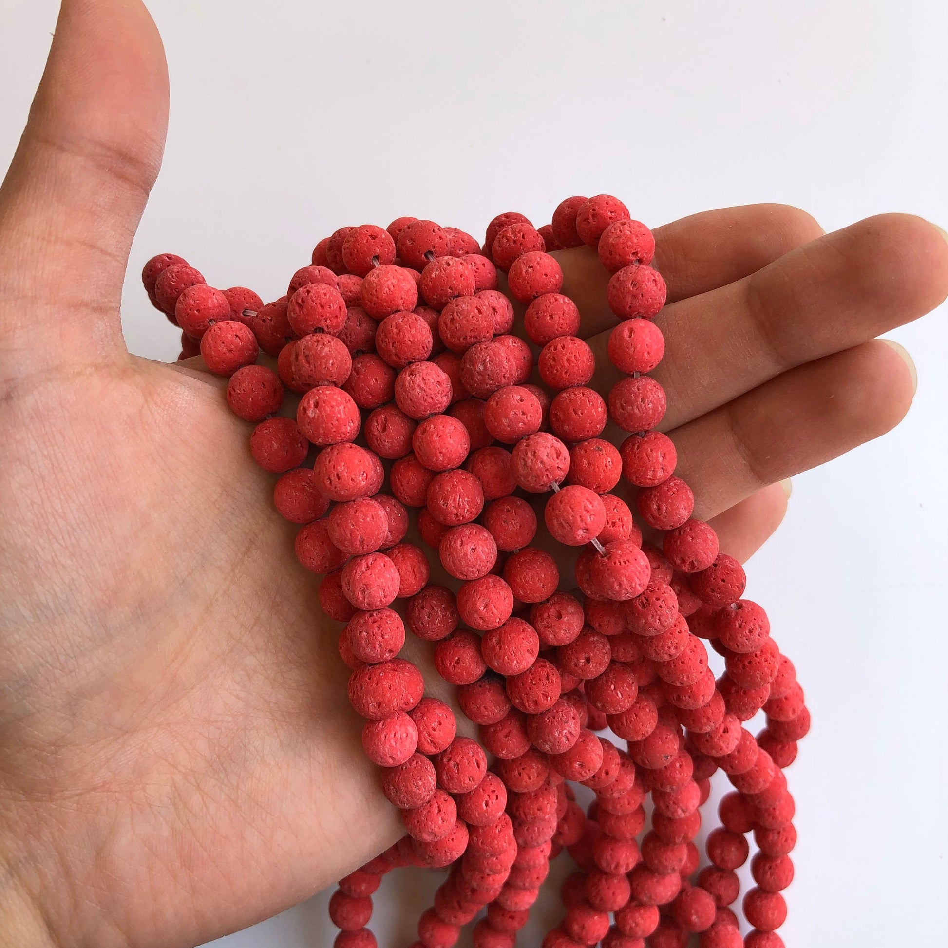 Natural Volcanic Red Lava Bead 39cm Strand 8-8.5mm Round Matte Mineral Beads 47pcs