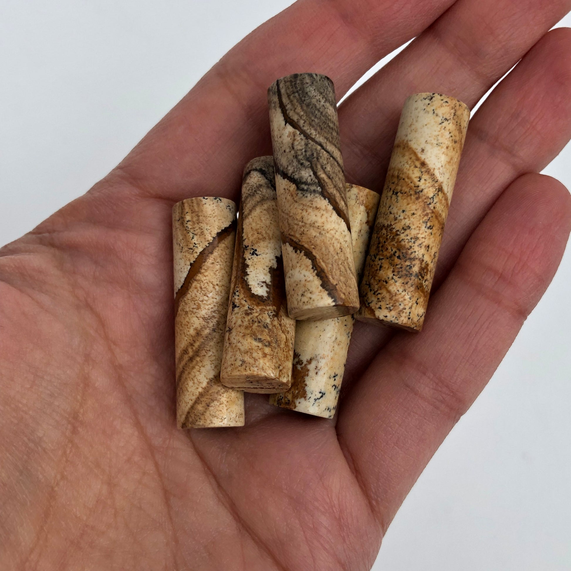Picture Jasper Gemstone Crystal Column Pendant Undrilled Charm 35x10mm - 1 piece