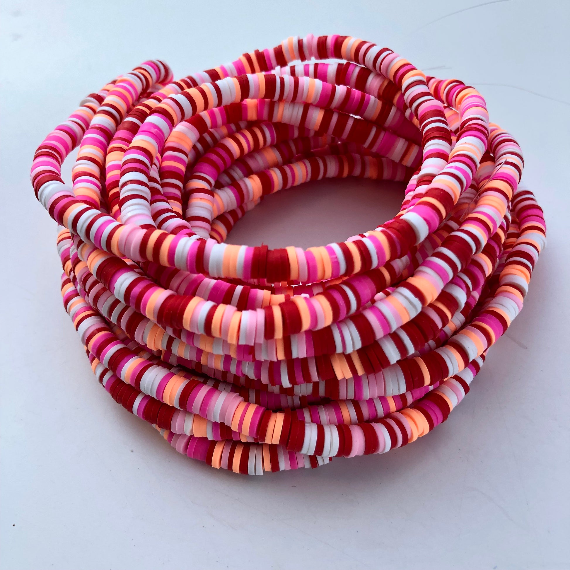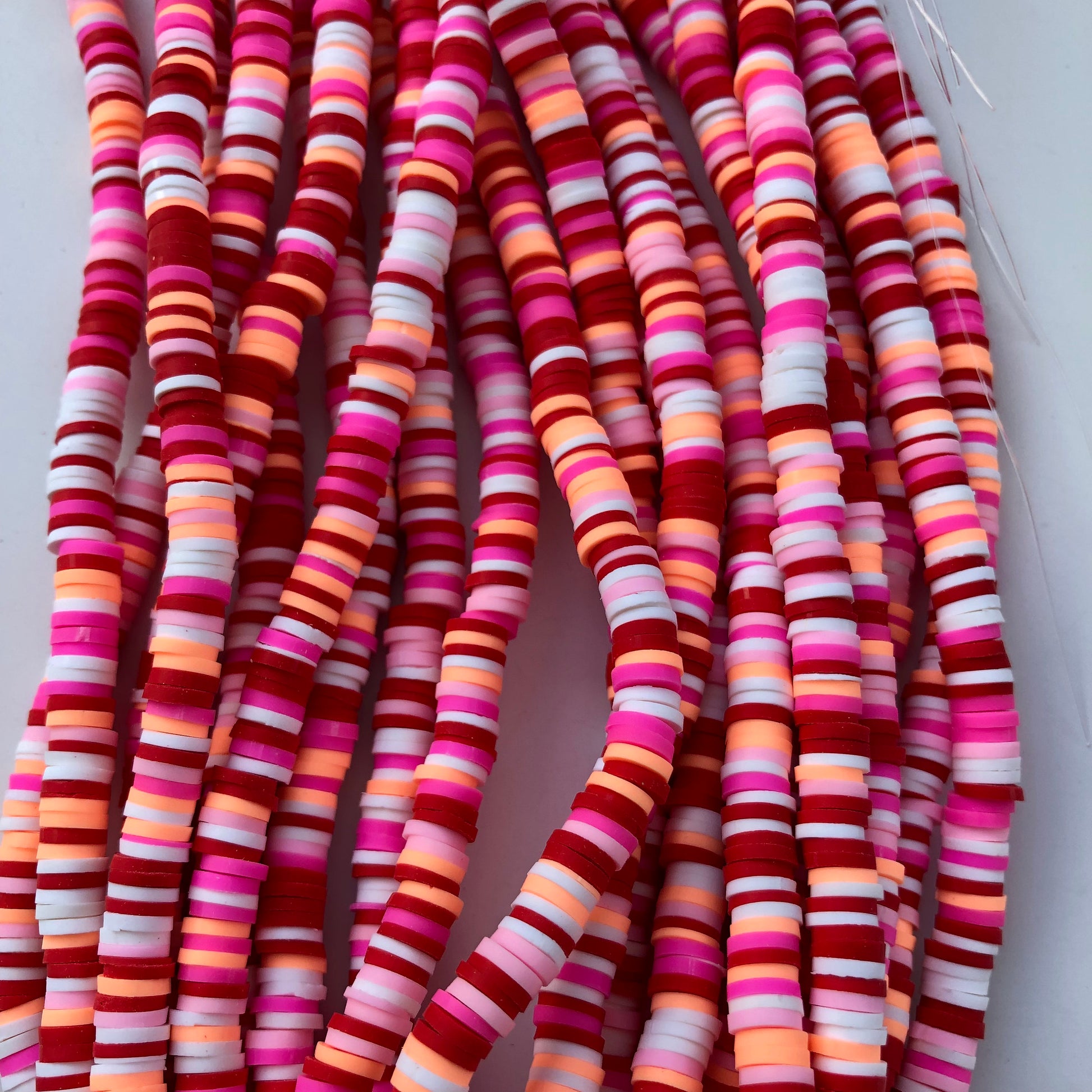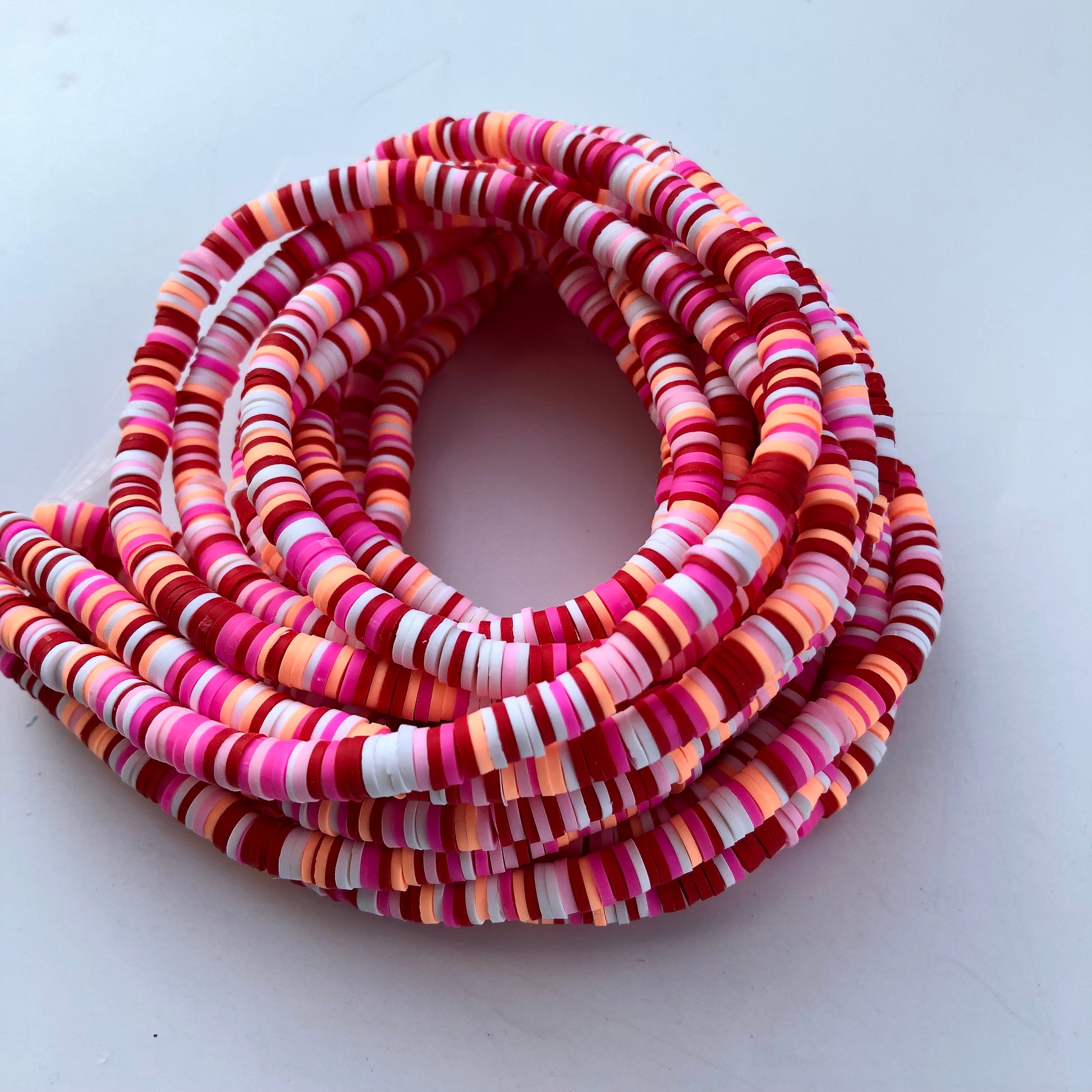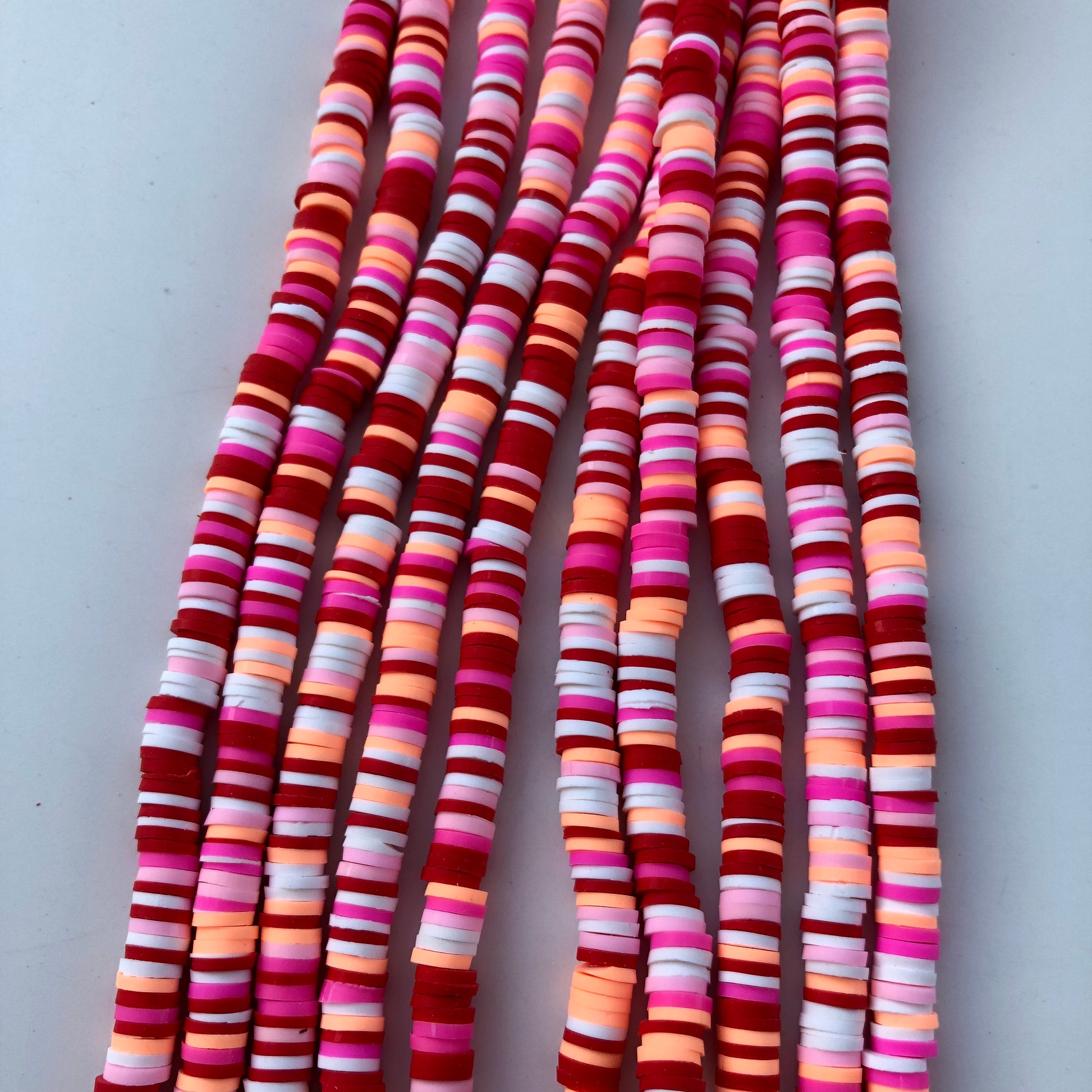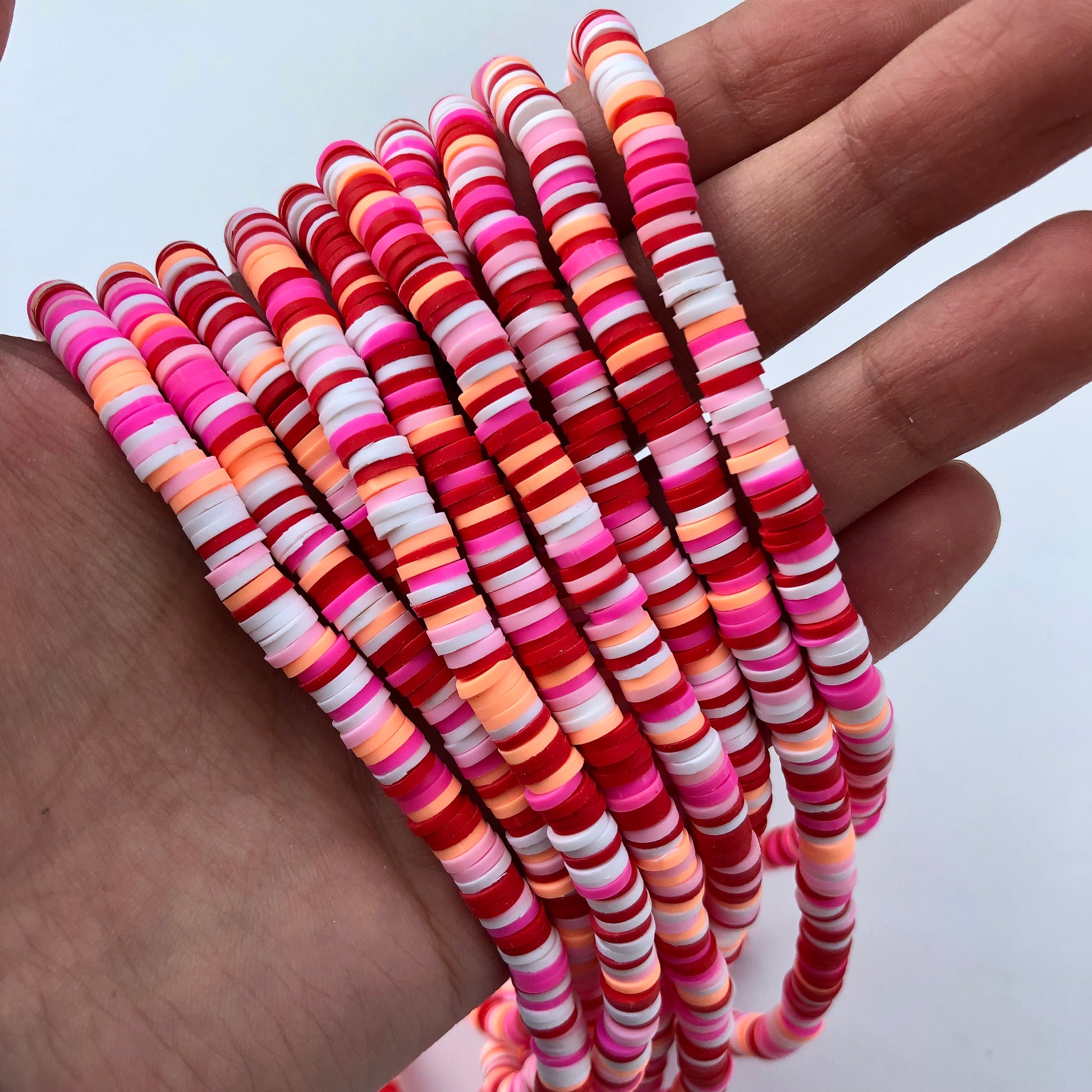 Polymer Clay Beads 6mm Mixed Round Donut Disc Bead Red Jewellery Making Beads 40cm Strand Bead